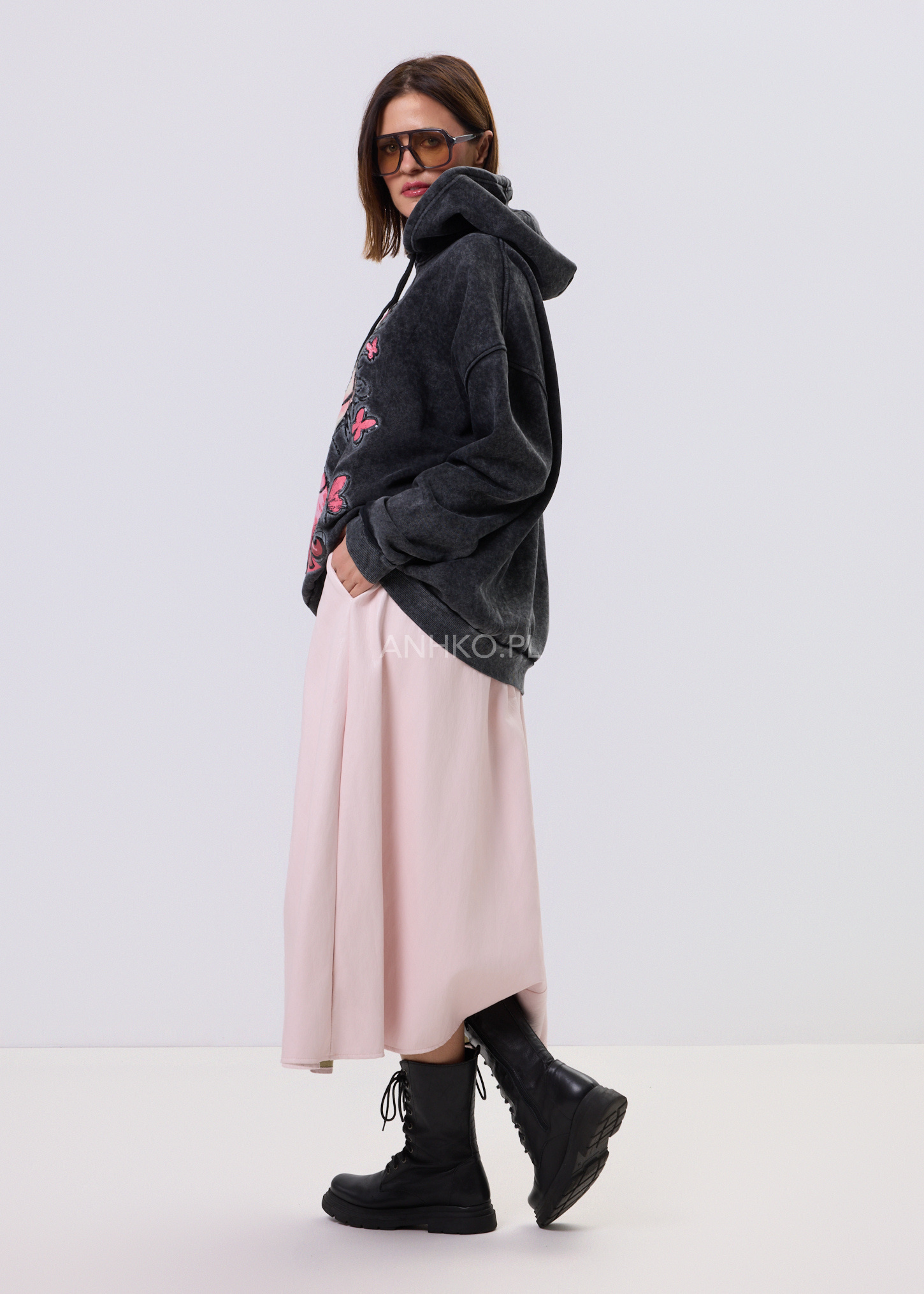 - Luźny, oversize’owy krój