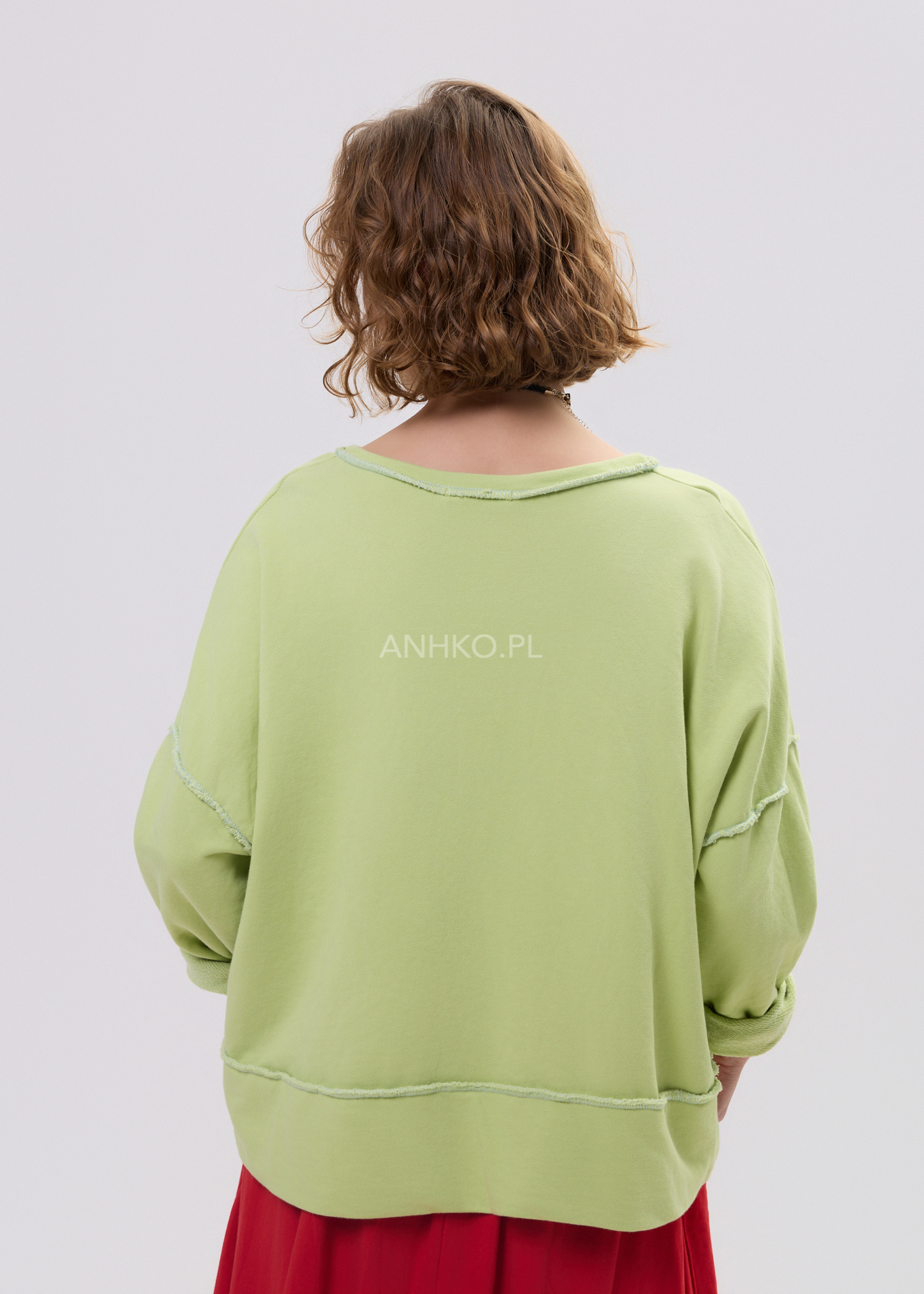 Model wyróżnia się surowym wykończeniem w stylu raw, które podkreśla modowy, lekko vintage charakter. Miękka dzianina sprawia, że bluza jest przyjemna w noszeniu, a luźny krój oversize pozwala łatwo dopasować ją do wielu stylizacji — od klasycznych jeansów po wygodne legginsy lub spódnicę w miejskim stylu.