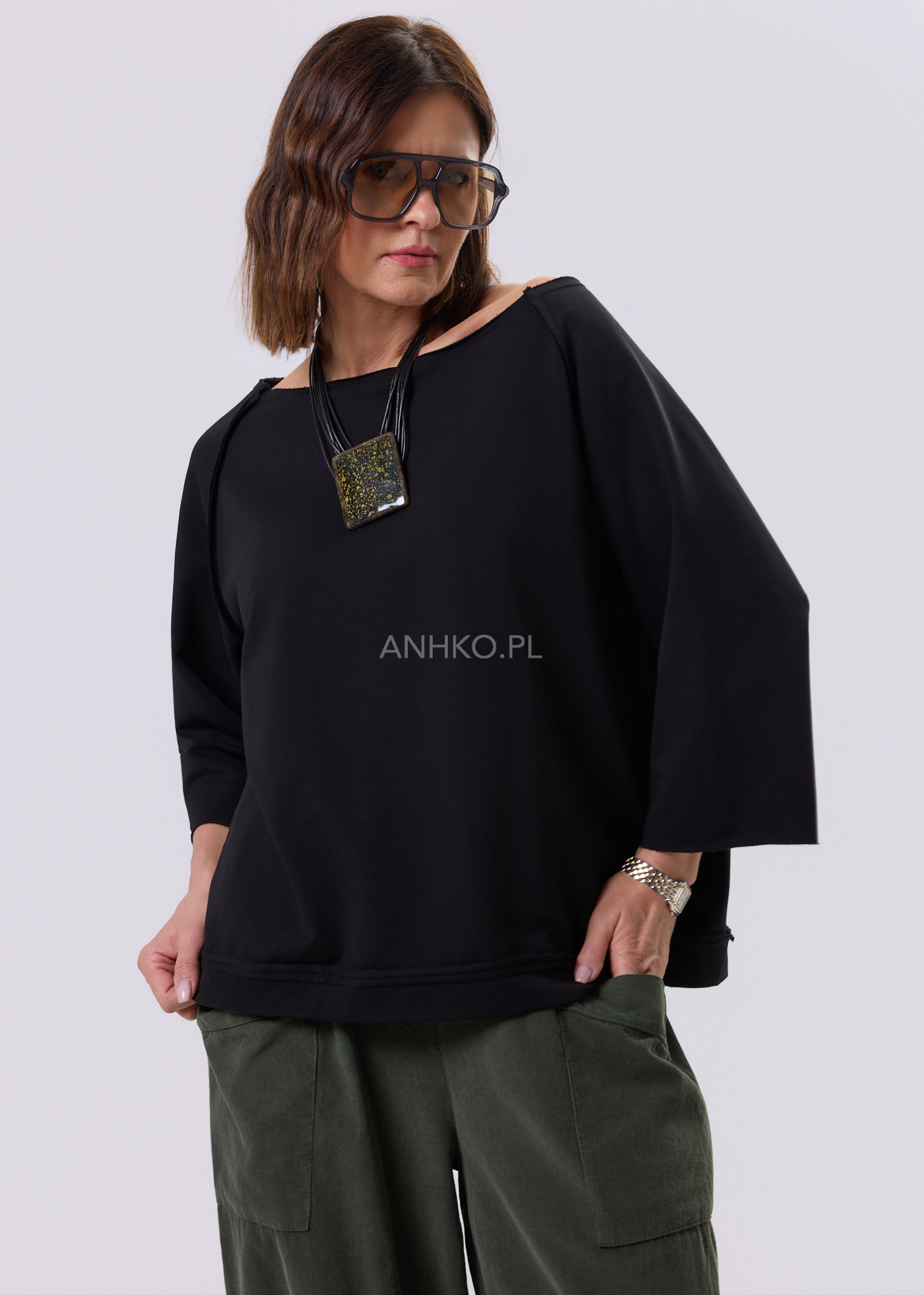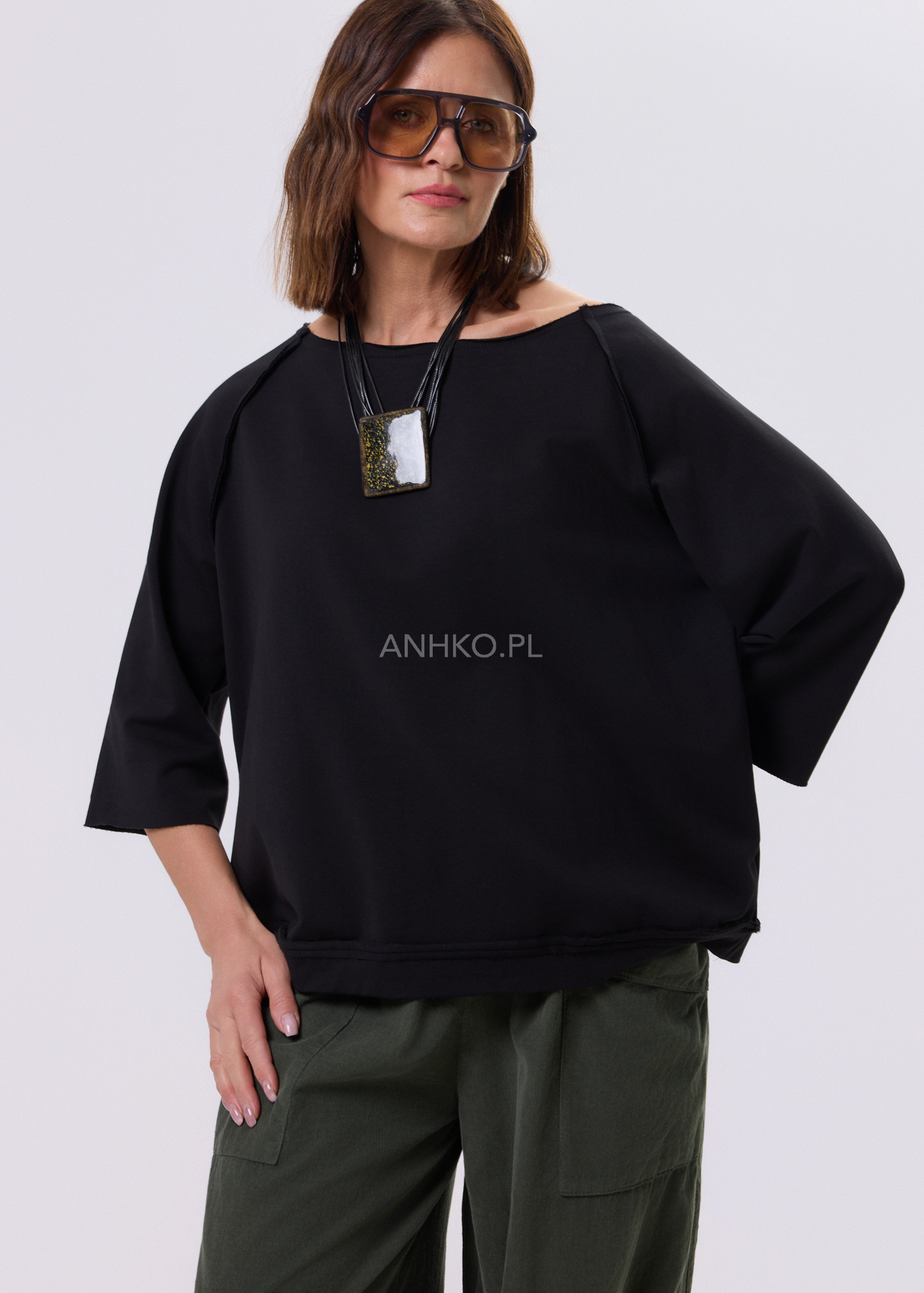 Ta bluza to połączenie wygody i świadomego designu. Luźny, lekko oversize’owy fason zapewnia swobodę ruchów, a raglanowe rękawy subtelnie podkreślają linię ramion, nadając sylwetce nowoczesny charakter. Model nie posiada kaptura, kieszeni, co czyni go lekkim i idealnym do noszenia przez cały dzień. Doskonale sprawdzi się w stylizacjach casualowych – z jeansami, spodniami z wysokim stanem lub spódnicą – jak i w bardziej minimalistycznych, miejskich zestawach. To świetny wybór na co dzień, do pracy w trybie smart casual, na podróż czy weekendowe wyjścia.