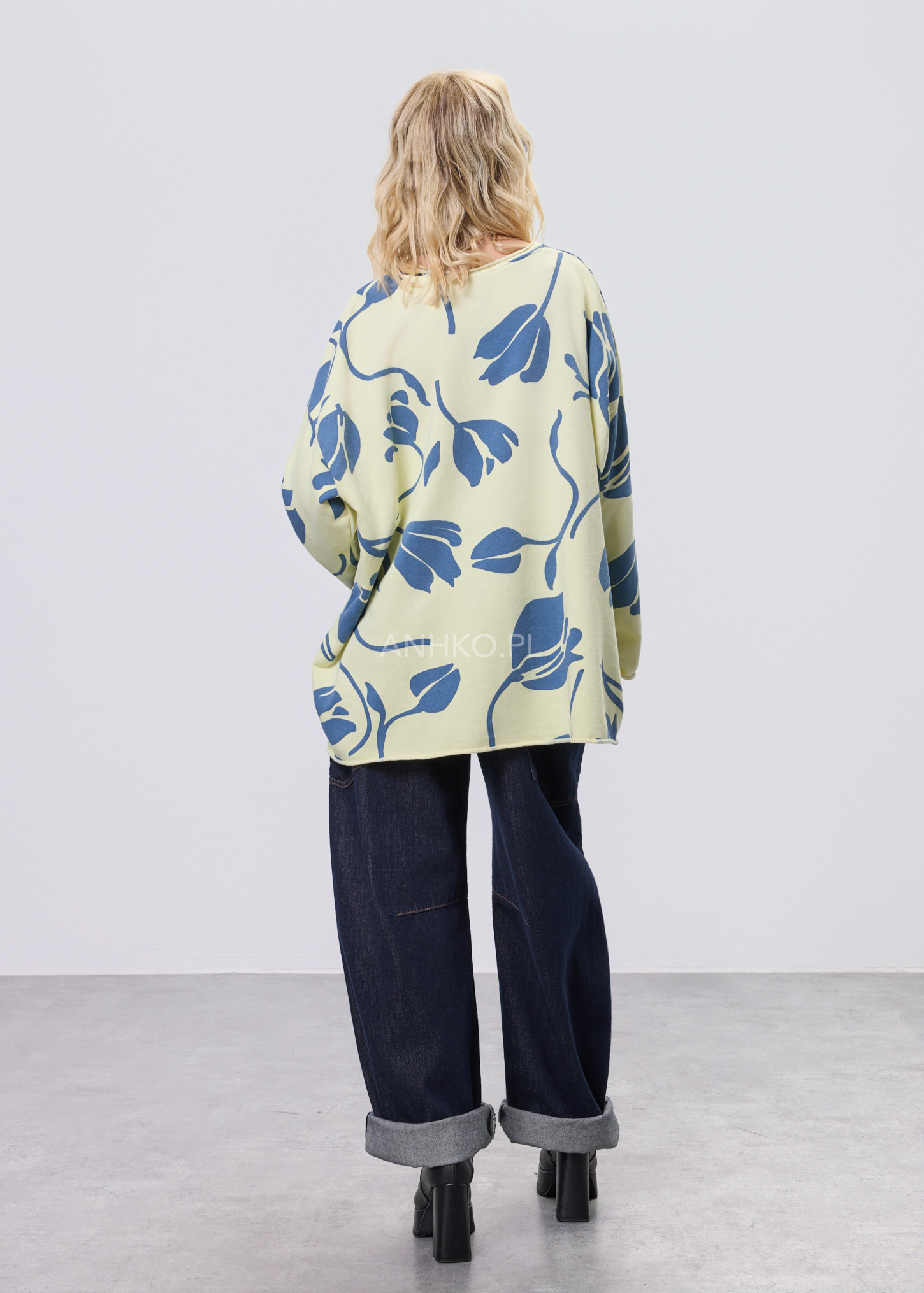 Bluza w luźnym, oversize’owym fasonie, która łączy komfort noszenia z wyrazistym, nowoczesnym designem. Model posiada klasyczny, okrągły dekolt oraz długie rękawy zakończone możliwością podwinięcia, co pozwala regulować styl w zależności od okazji. Całość uzupełnia kontrastowy, graficzny wzór nadający bluzie artystycznego charakteru. Bluza nie posiada kieszeni ani kaptura, co podkreśla jej minimalistyczną formę. Brak podszewki sprawia, że model jest lekki i idealny do noszenia przez cały rok. Świetnie komponuje się z jeansami, spodniami materiałowymi lub spódnicą, sprawdzi się zarówno na co dzień, do pracy w stylu casual, jak i na niezobowiązujące spotkania.