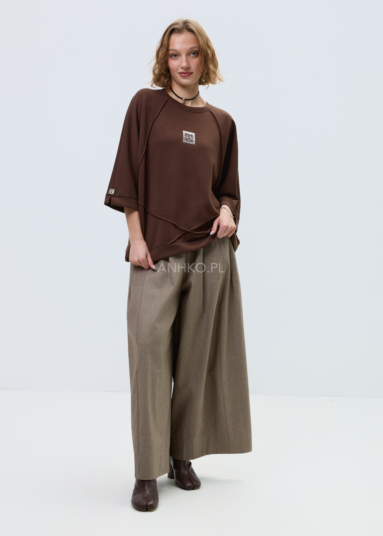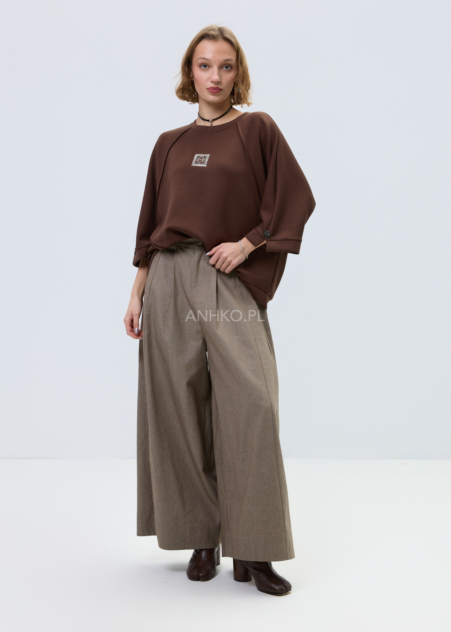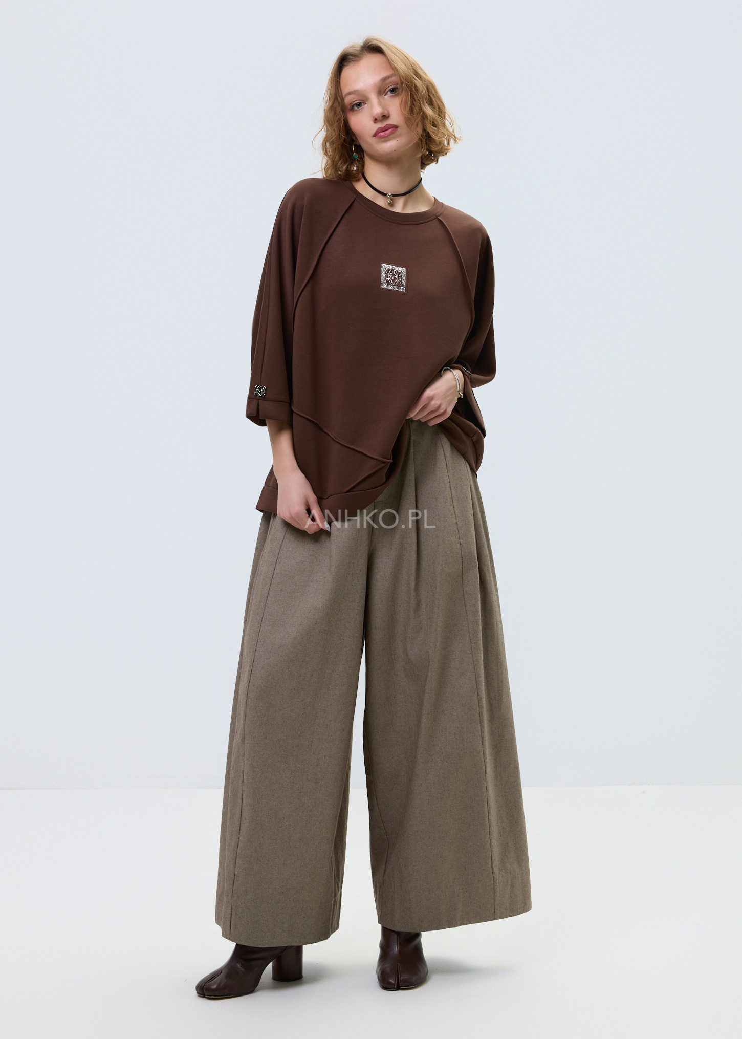 - Melanżowa dzianina: Miękki materiał w brązowym odcieniu zapewnia komfort i uniwersalność stylizacji.