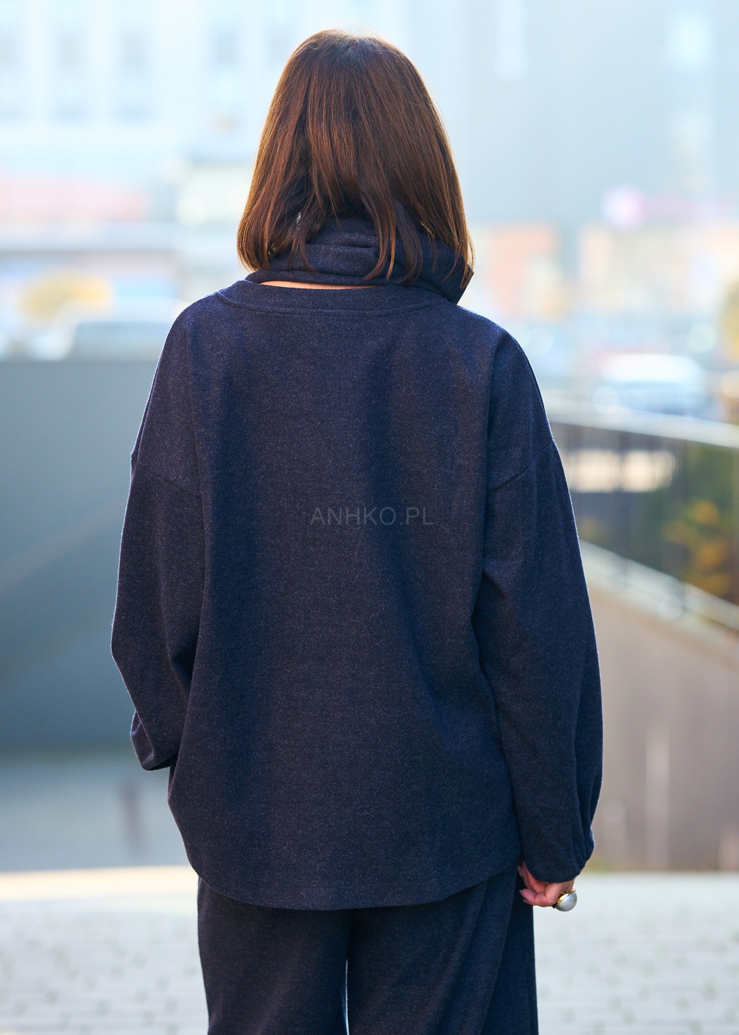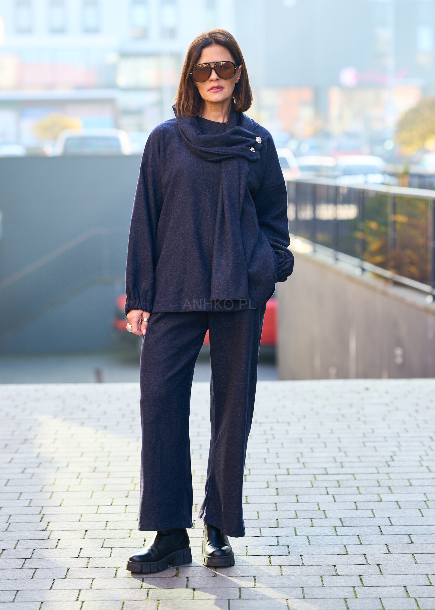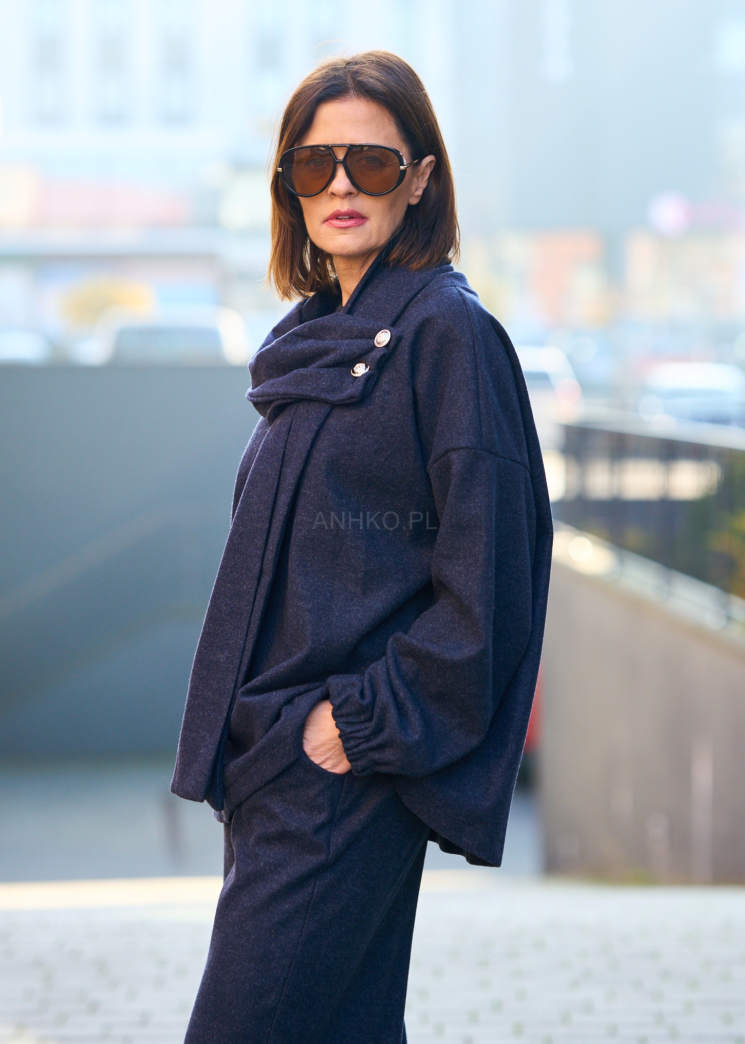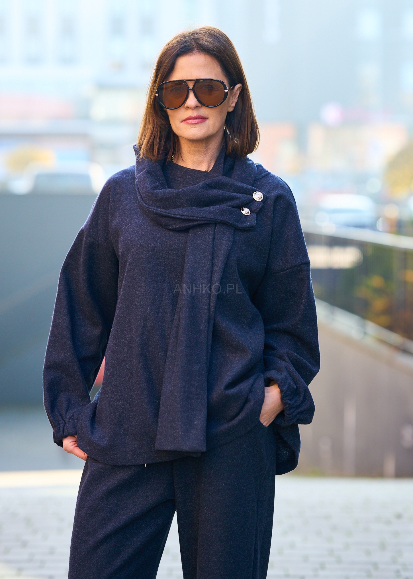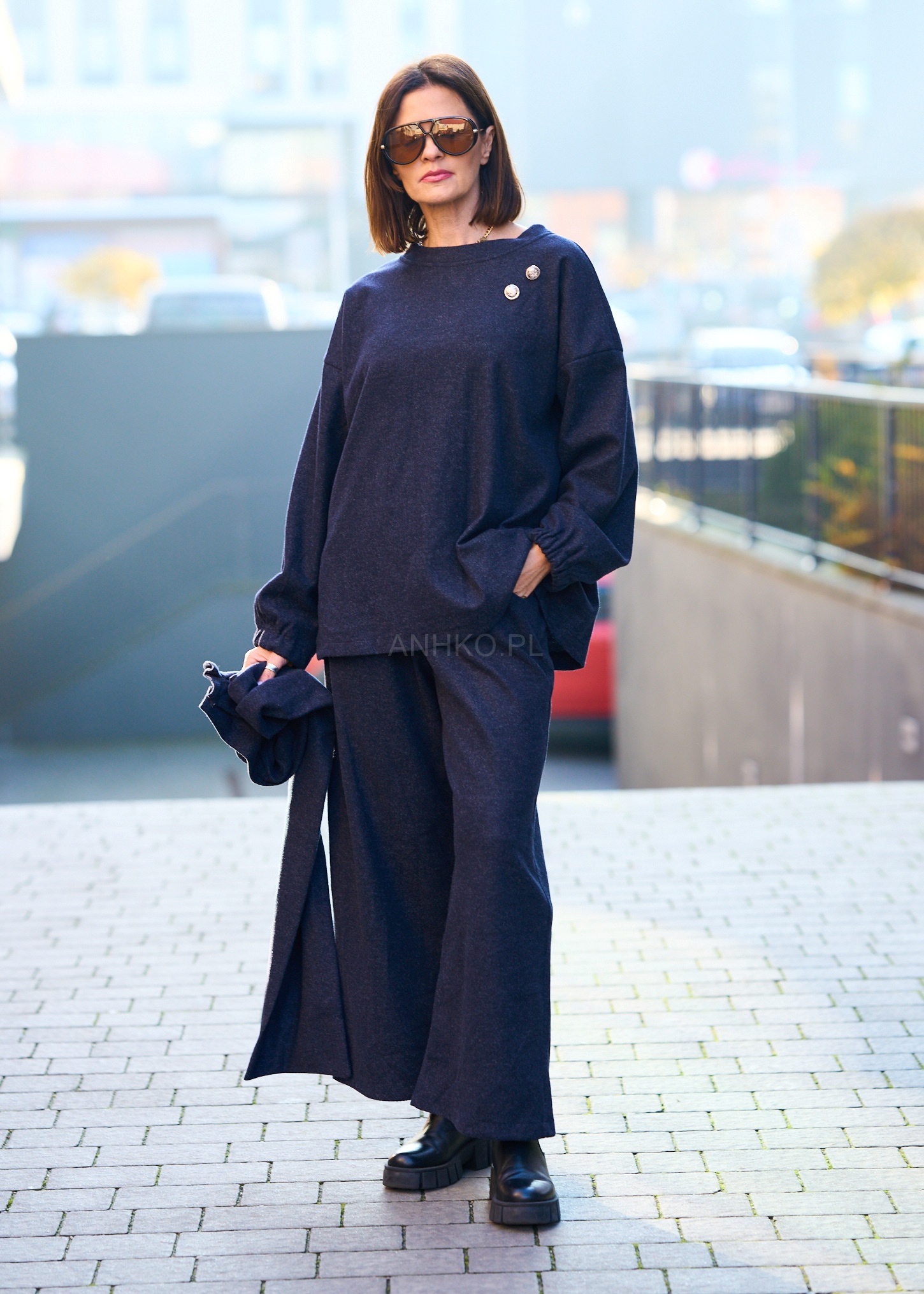 To propozycja dla kobiet ceniących wygodę w eleganckiej formie. Wykonany z miękkiej, przyjemnej dzianiny układa się lekko na sylwetce, zapewniając komfort przez cały dzień. Charakterystyczne marszczenie na ramieniu, ozdobione dwoma złotymi guzikami, tworzy wyjątkowy detal, który dodaje mu klasy i subtelnej biżuteryjności. Brak podszewki sprawia, że bluza jest lekka, a jednocześnie otulająca. Idealny na co dzień, do pracy, na spotkania lub weekendowe wyjścia. Doskonale komponuje się z jeansami, eleganckimi spodniami lub spódnicą, tworząc stylizacje zarówno casualowe, jak i bardziej dopracowane.