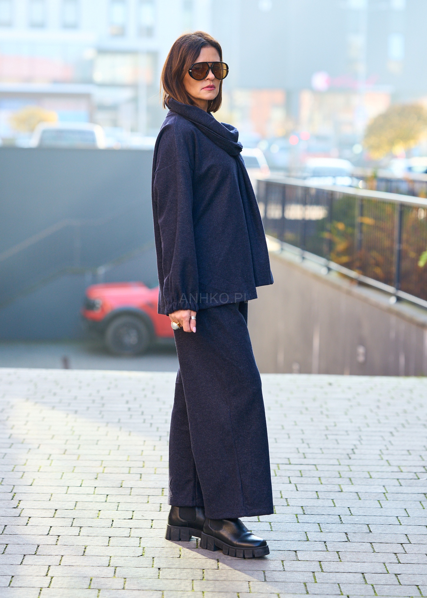 Spodnie Miralune Grafitowe - Komfortowe spodnie o luźnym kroju z elastyczną talią i praktycznymi kieszeniami. Idealne na co dzień, zapewniają wygodę i swobodę ruchu. Wykonane z miękkiej, przyjemnej w dotyku mieszanki materiałów