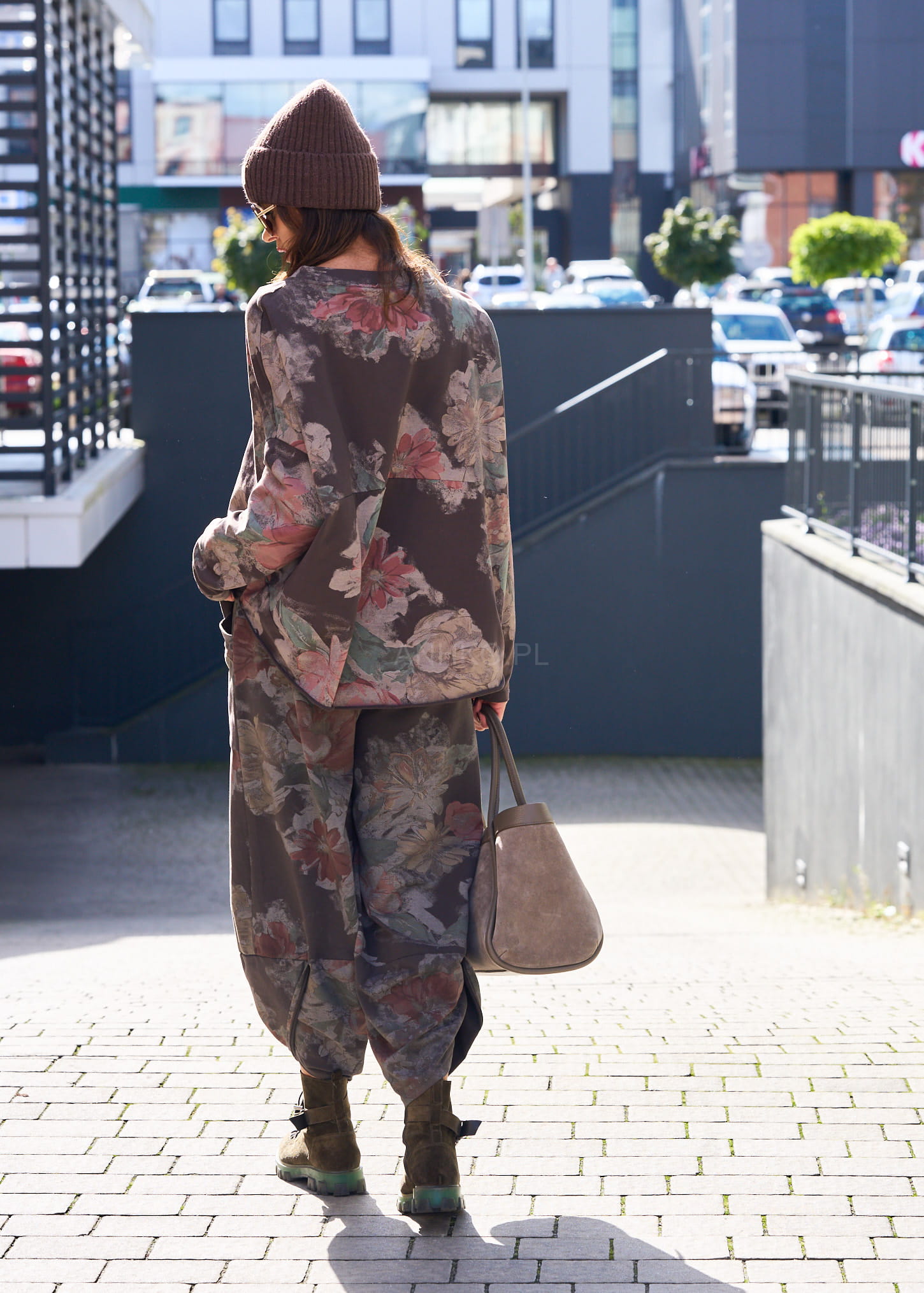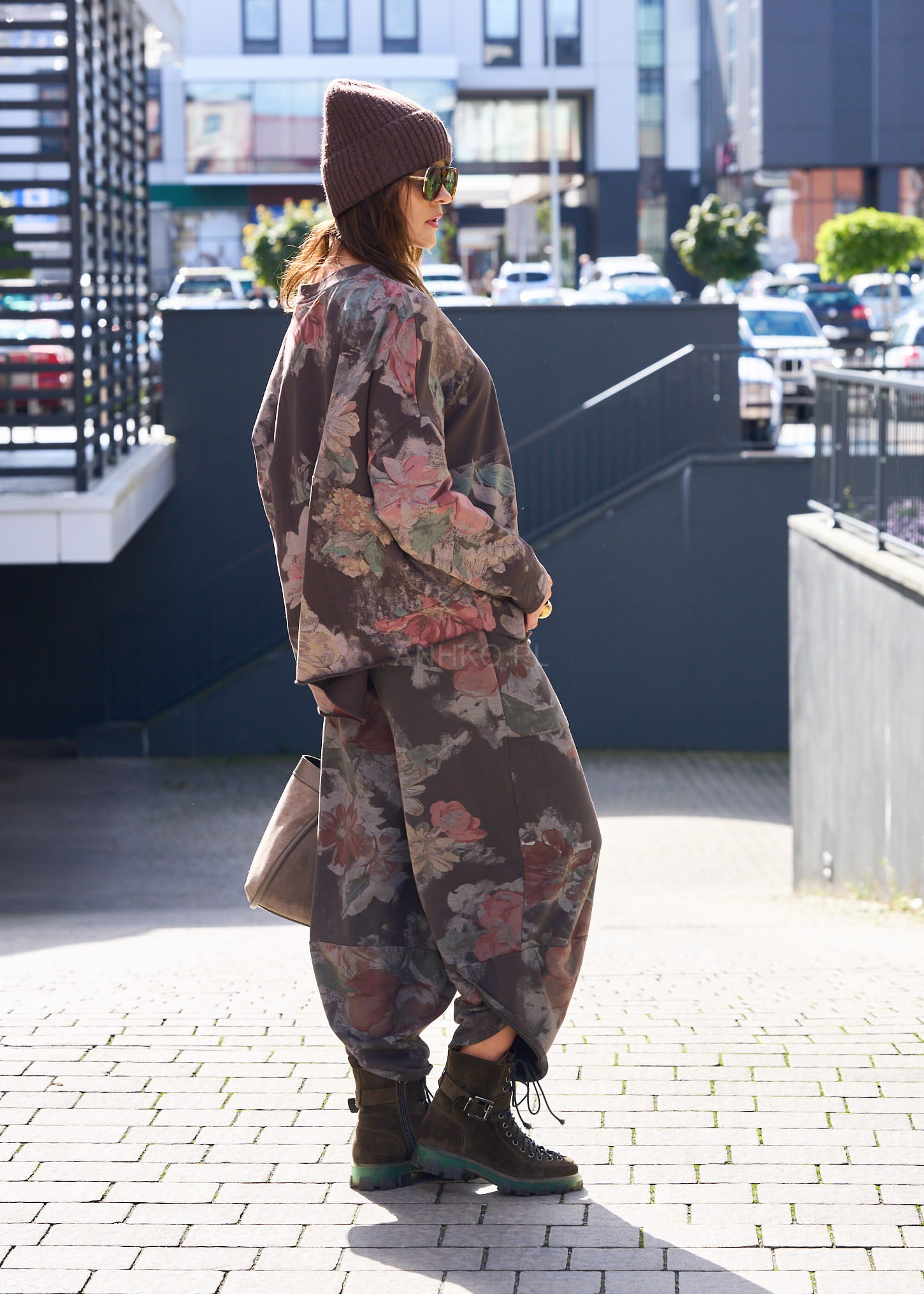 To wyjątkowa bluza oversize, która łączy komfort bawełny z subtelnym, kobiecym stylem. Kwiatowy wzór w odcieniach różu, beżu i zieleni na ciemnym tle nadaje jej romantycznego charakteru, a jednocześnie sprawia, że pasuje do wielu stylizacji. Wykonana z wysokiej jakości mieszanki bawełny i elastanu, jest przyjemna w dotyku, przewiewna i elastyczna. Luźny krój zapewnia swobodę ruchów, a długie rękawy czynią ją idealną na chłodniejsze dni. Świetnie prezentuje się zarówno w codziennych zestawach z jeansami i sneakersami, jak i w bardziej kobiecych stylizacjach ze spódnicą i botkami. To ponadczasowa propozycja na każdą okazję.