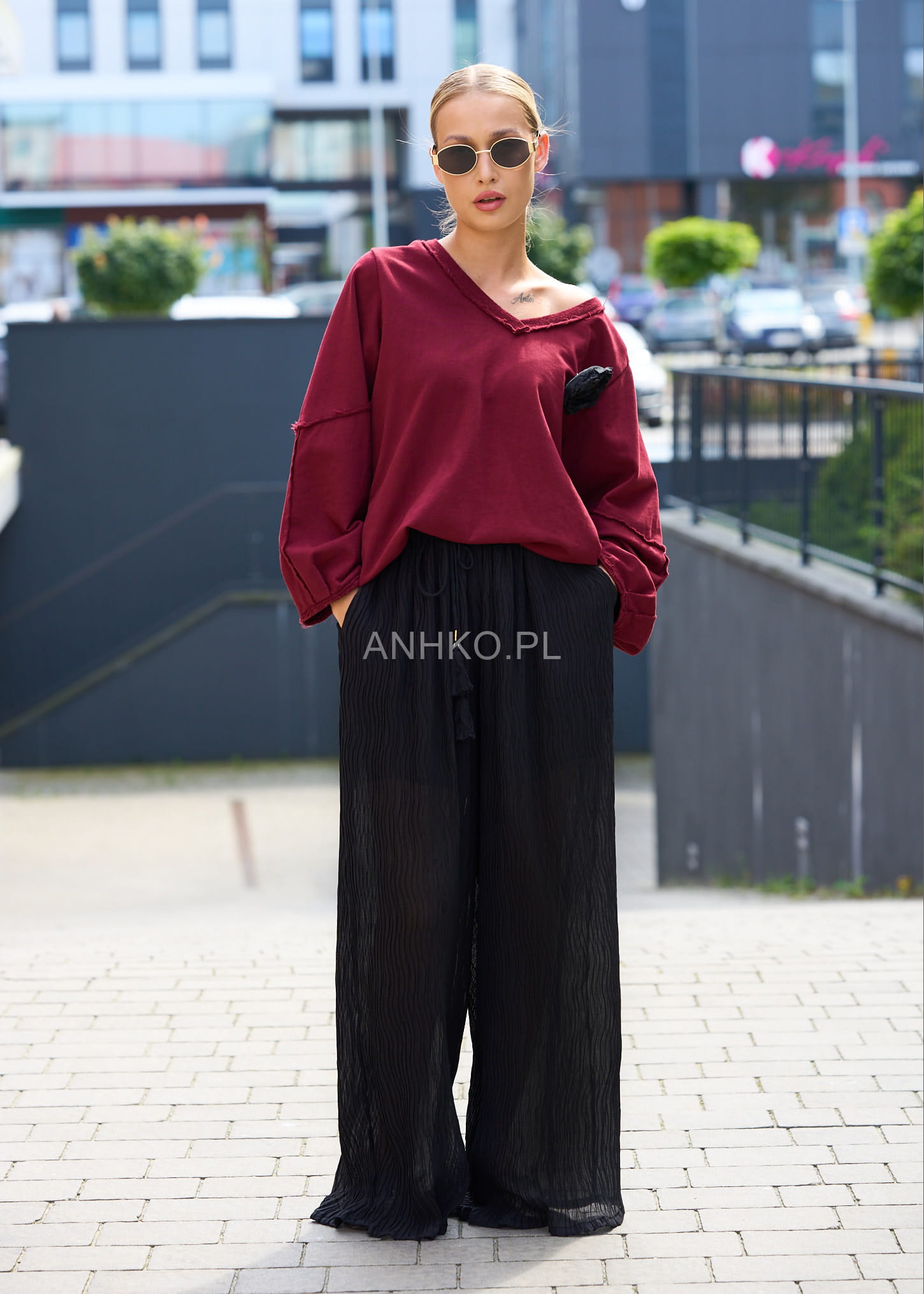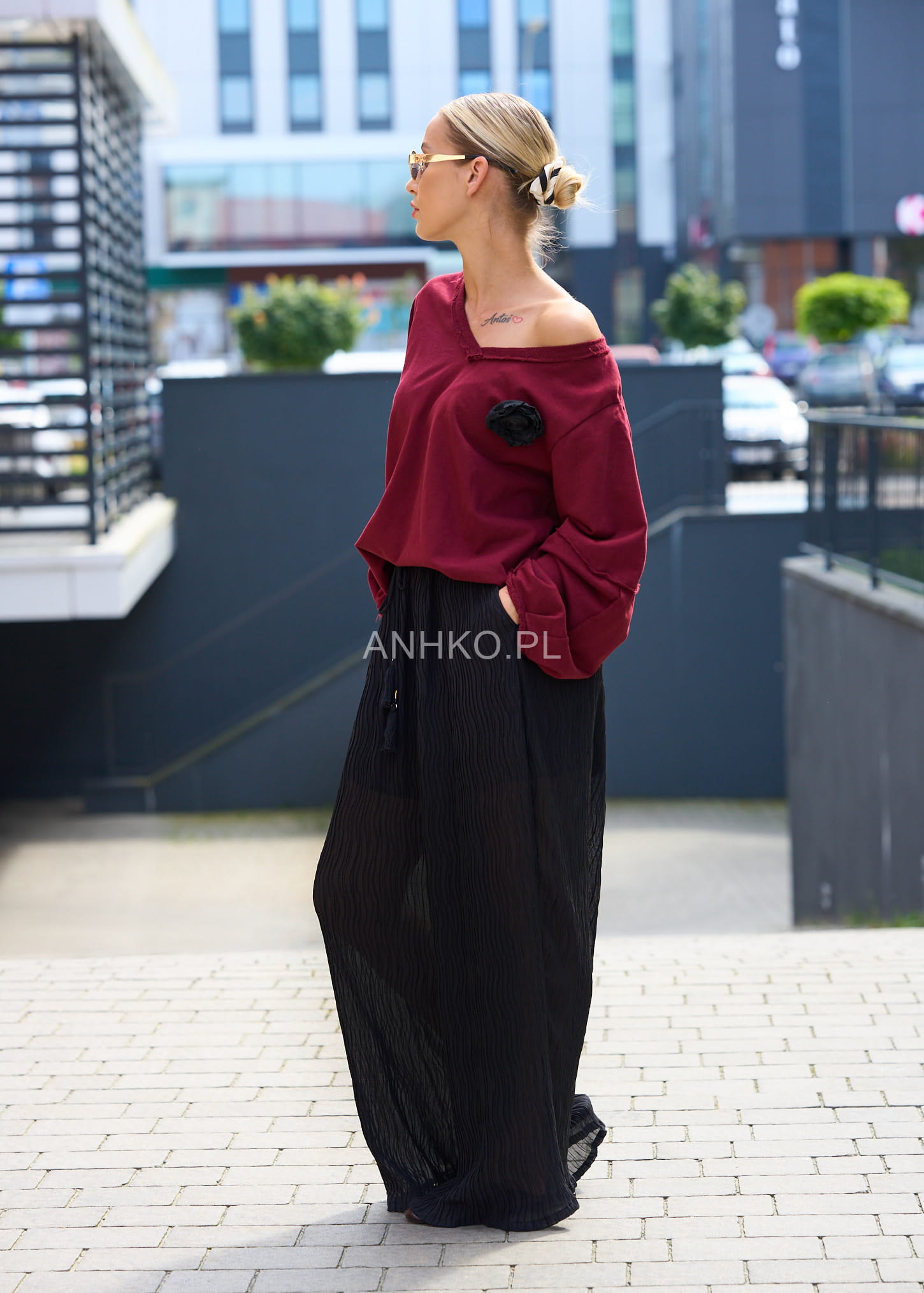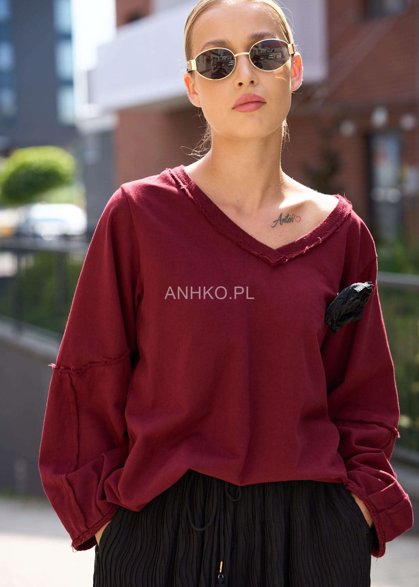 To wyjątkowe połączenie komfortu i subtelnej elegancji. Wykonana w 100% z naturalnej bawełny, jest miękka, oddychająca i przyjemna w noszeniu przez cały dzień. Minimalistyczny fason z długim rękawem urozmaicono kwiatową aplikacją, która dodaje jej oryginalności i kobiecego charakteru. Surowe wykończenia nadają całości lekko artystyczny, casualowy klimat. Bluza świetnie sprawdzi się w codziennych stylizacjach – zestawisz ją z jeansami, spódnicą lub lnianymi spodniami. To doskonały wybór na spotkania, spacery czy swobodny look do pracy. Model idealny dla kobiet, które cenią modę z charakterem i wygodę w jednym.