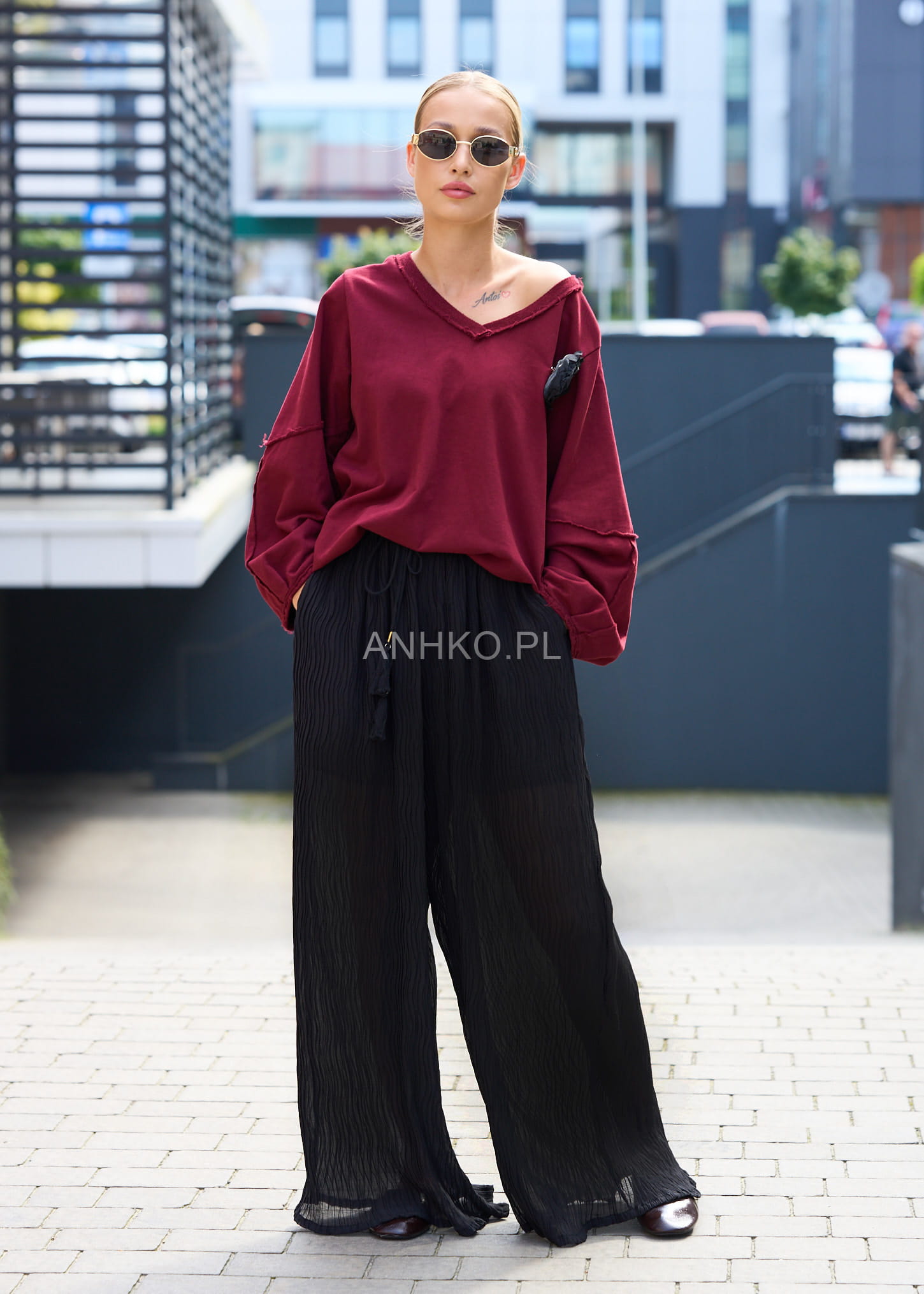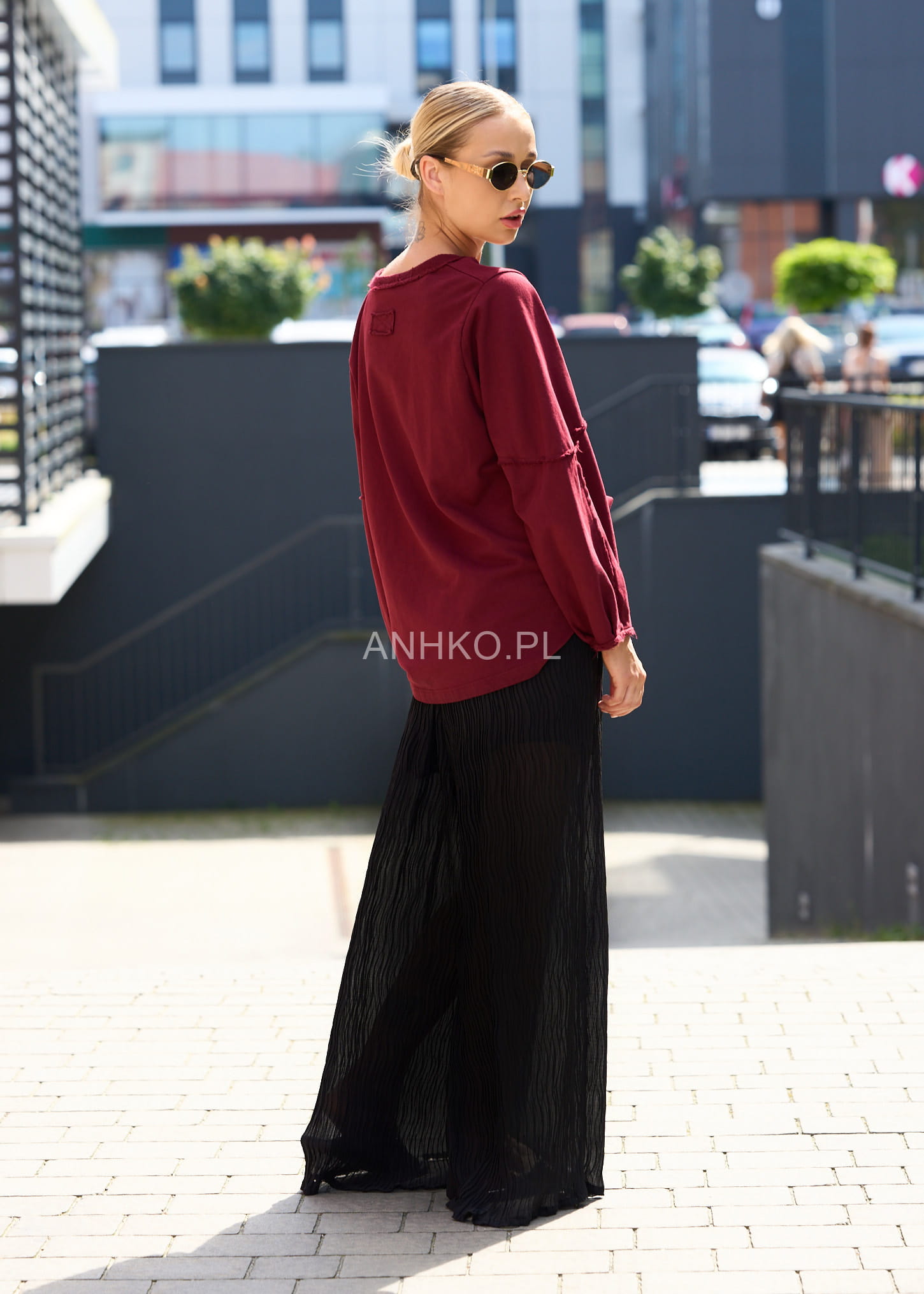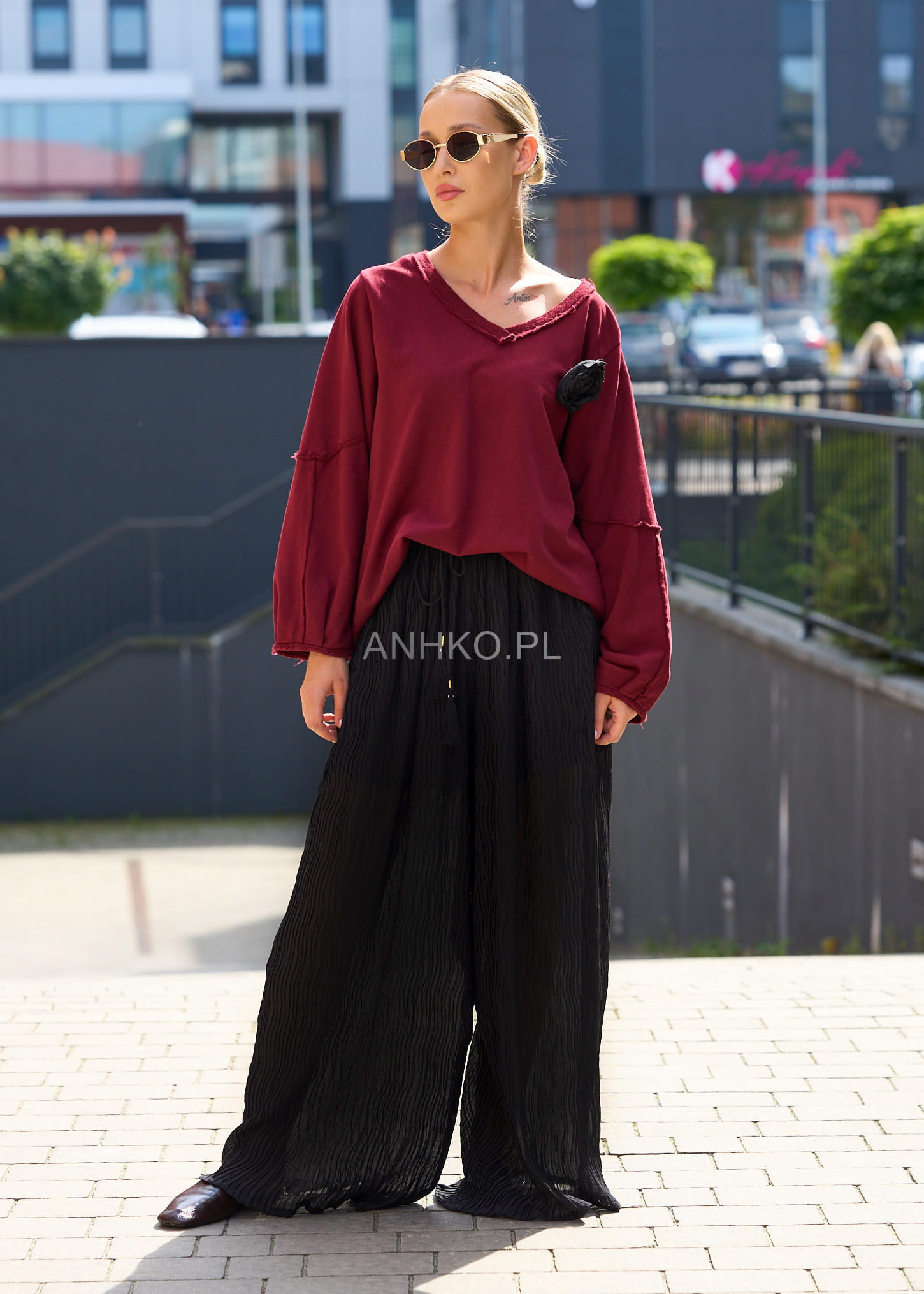 To wyjątkowe połączenie komfortu i subtelnej elegancji. Wykonana w 100% z naturalnej bawełny, jest miękka, oddychająca i przyjemna w noszeniu przez cały dzień. Minimalistyczny fason z długim rękawem urozmaicono kwiatową aplikacją, która dodaje jej oryginalności i kobiecego charakteru. Surowe wykończenia nadają całości lekko artystyczny, casualowy klimat. Bluza świetnie sprawdzi się w codziennych stylizacjach – zestawisz ją z jeansami, spódnicą lub lnianymi spodniami. To doskonały wybór na spotkania, spacery czy swobodny look do pracy. Model idealny dla kobiet, które cenią modę z charakterem i wygodę w jednym.