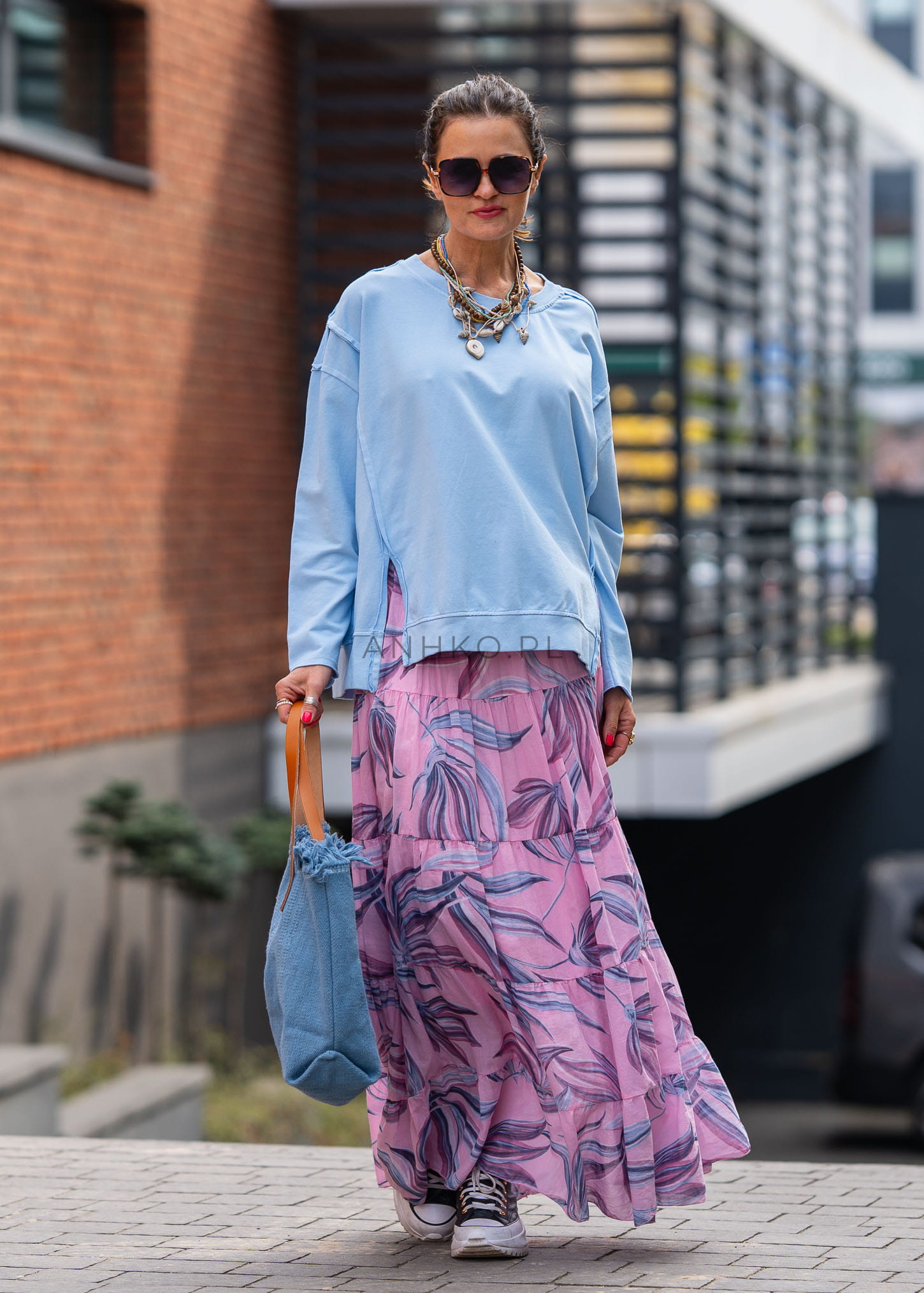 Ta bluza damska w subtelnym odcieniu błękitu to idealna baza codziennych stylizacji. Luźny fason miękko układa się na sylwetce, zapewniając wygodę i naturalny, miejski charakter stylizacji. Delikatnie opuszczona linia ramion nadaje całości nowoczesnego wyglądu, a prosty krój sprawia, że model świetnie komponuje się zarówno z jeansami, jak i spódnicami czy spodniami o swobodnym kroju.