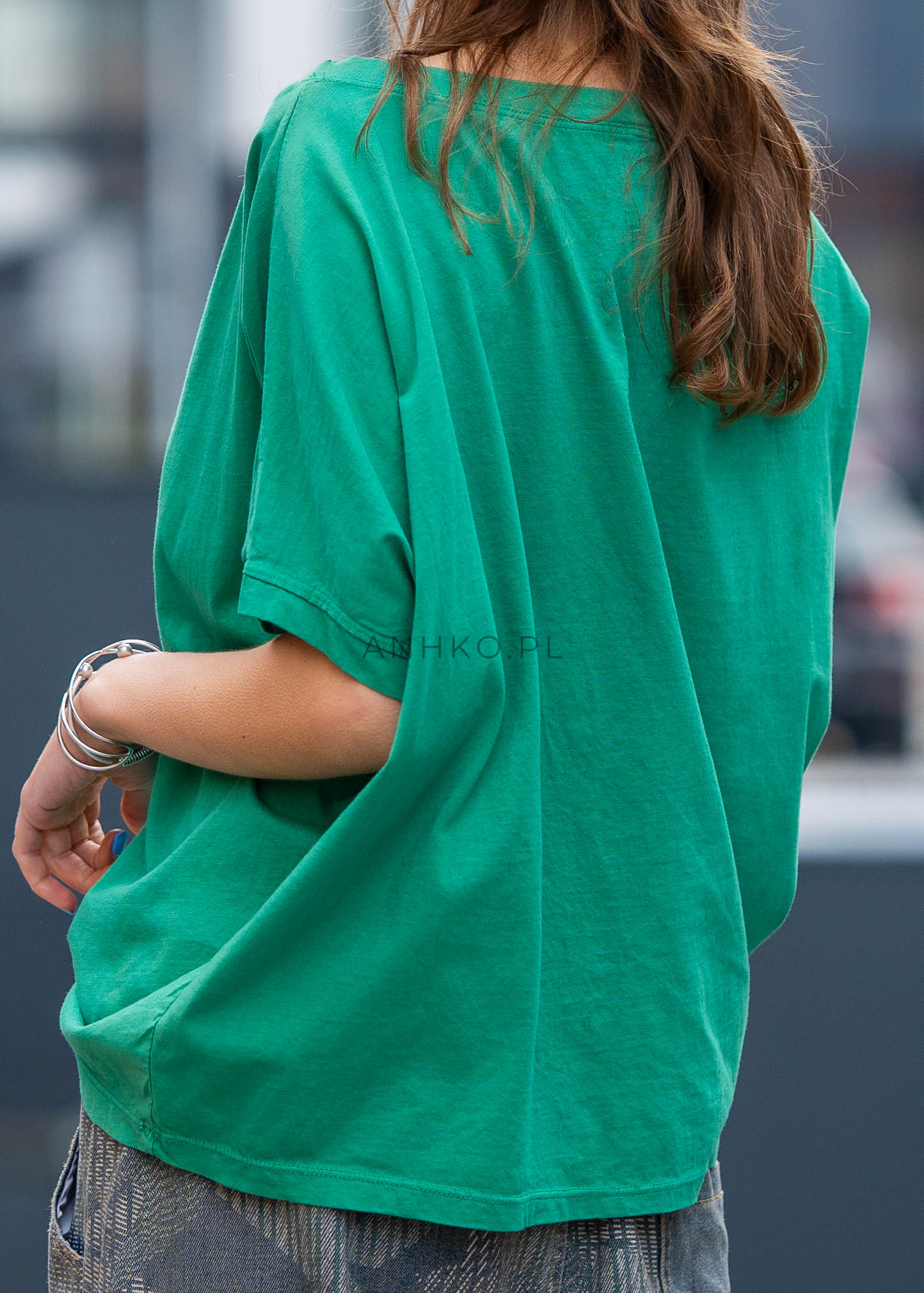 Szerszy dekolt subtelnie eksponuje linię szyi i pozwala stylizować bluzkę klasycznie lub z lekkim przesunięciem na ramię. Krótki rękaw z obszyciem oraz luźny fason oversize zapewniają swobodę ruchu i sprawiają, że model świetnie komponuje się zarówno z jeansami, jak i spódnicą czy szerokimi spodniami. To uniwersalna baza, która ożywi każdą stylizację.