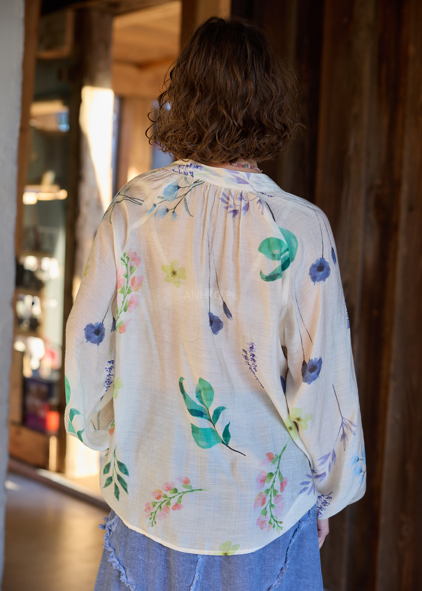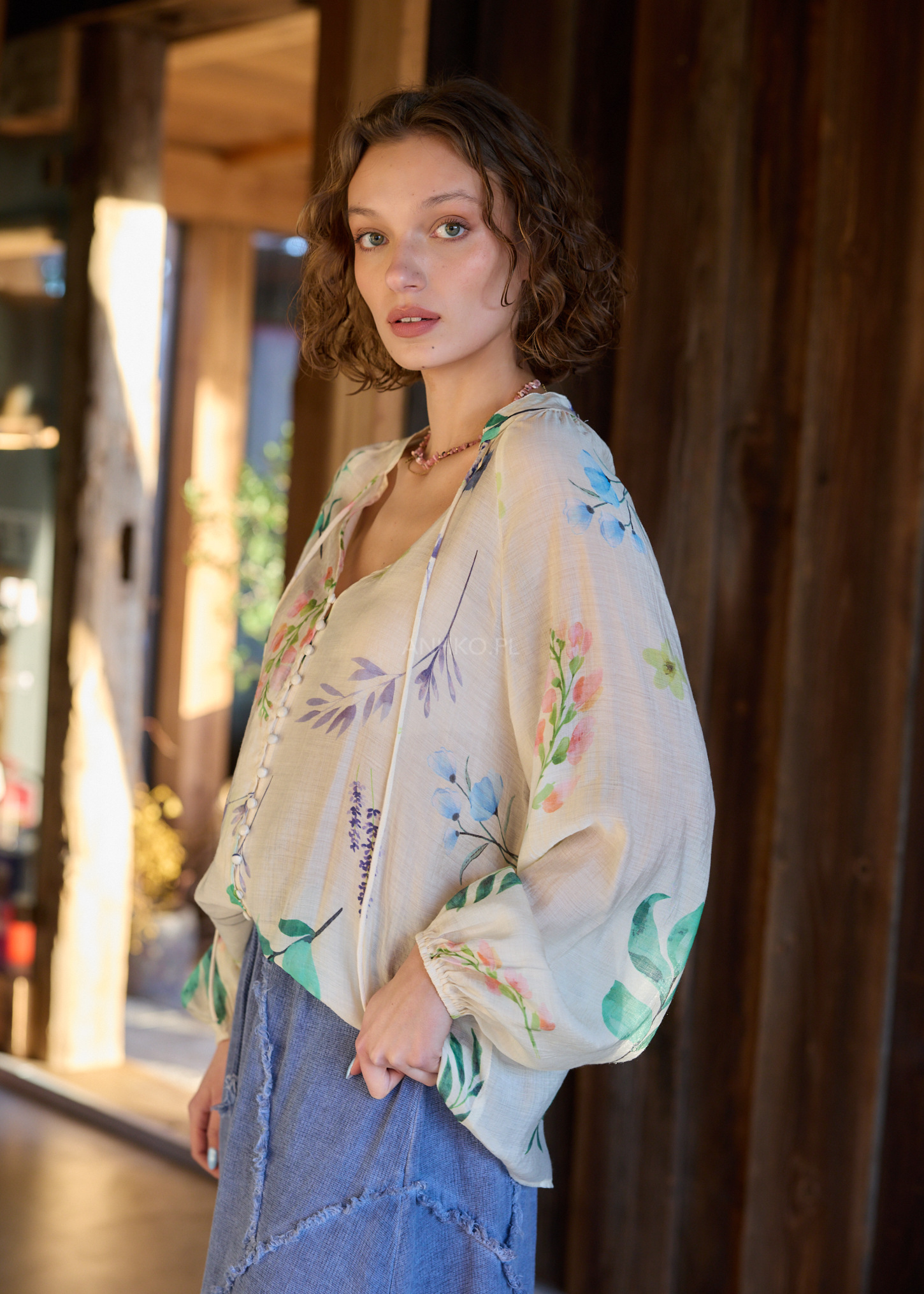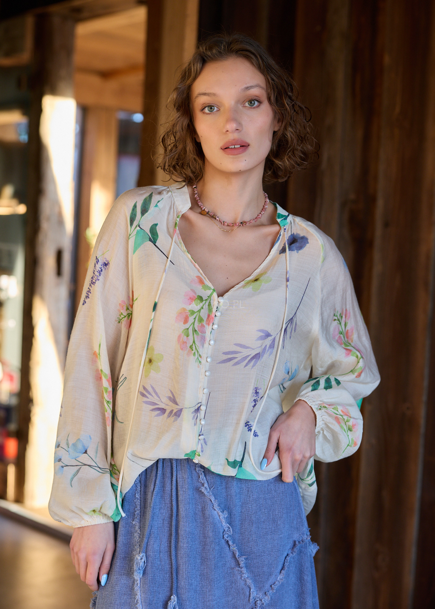 Kwiatowy print w jasnej tonacji podkreśla świeżość stylizacji i sprawia, że model świetnie wpisuje się w garderobę kapsułową. Zwiewny materiał oraz luźny fason czynią ją idealną bazą zarówno do casualowych zestawów z jeansami, jak i bardziej dopracowanych stylizacji z eleganckimi spodniami czy spódnicą.