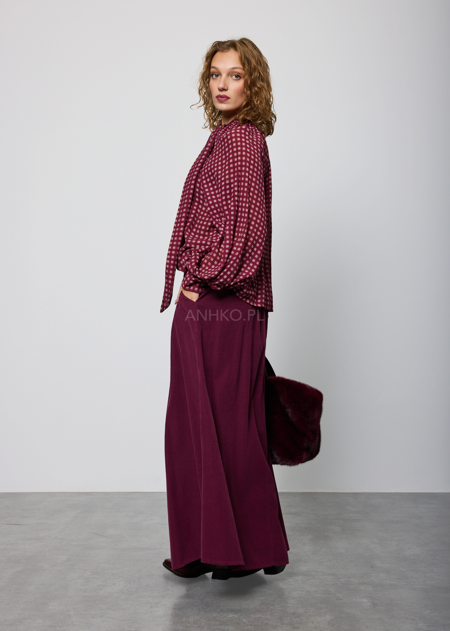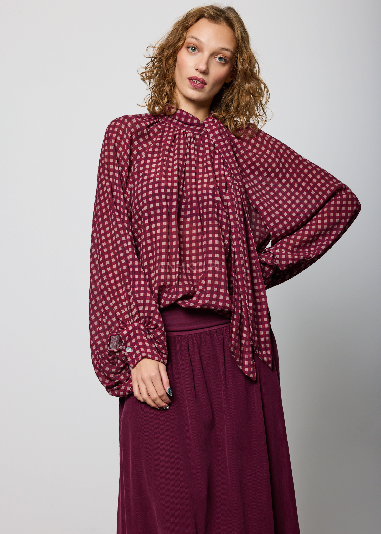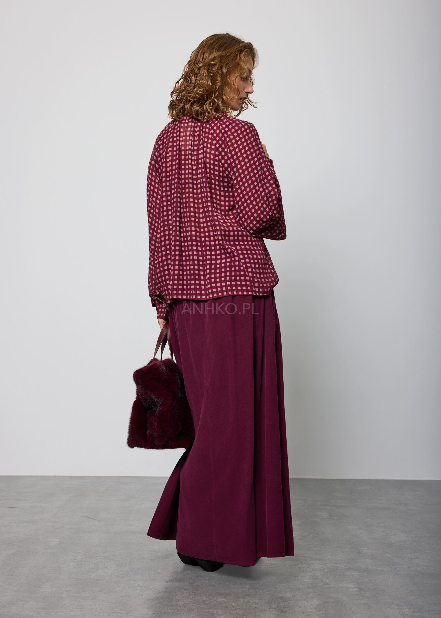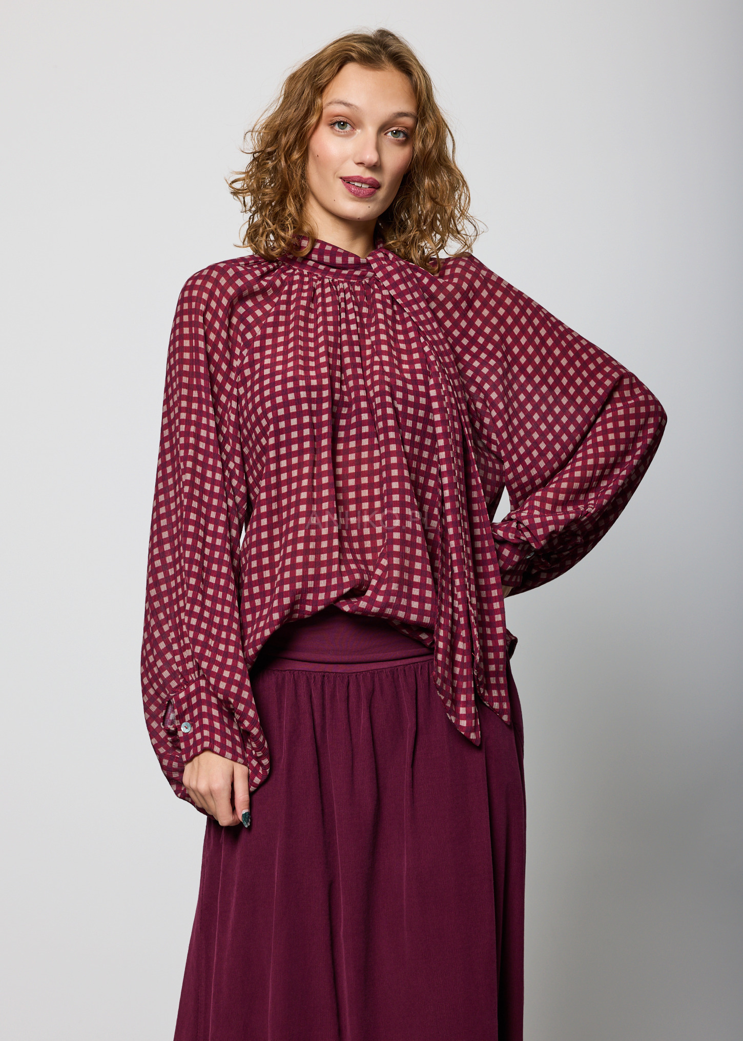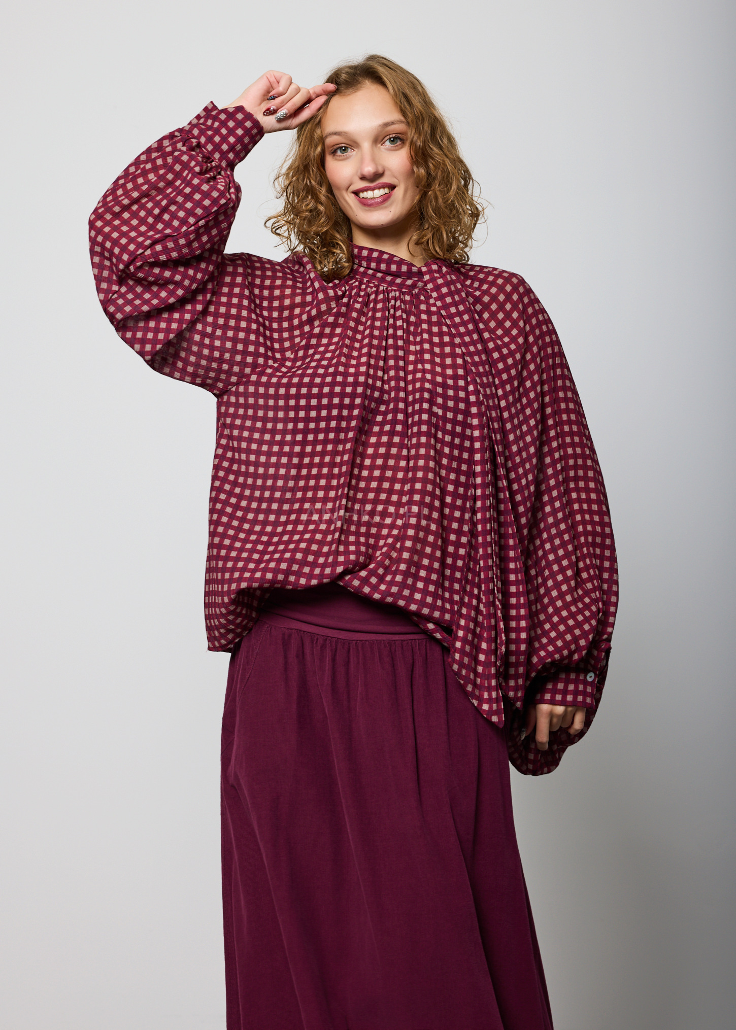 Bluzka Celine Loose w Kratę Śliwkowa