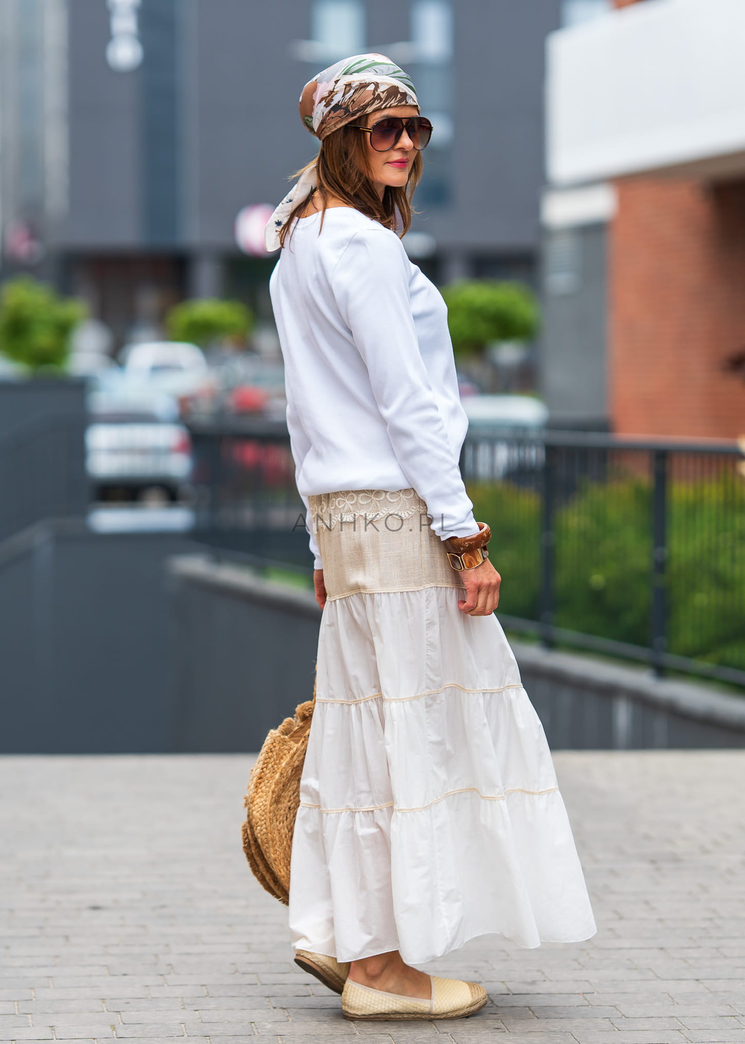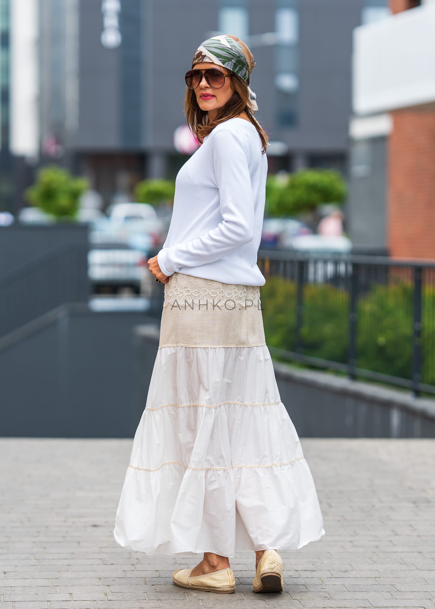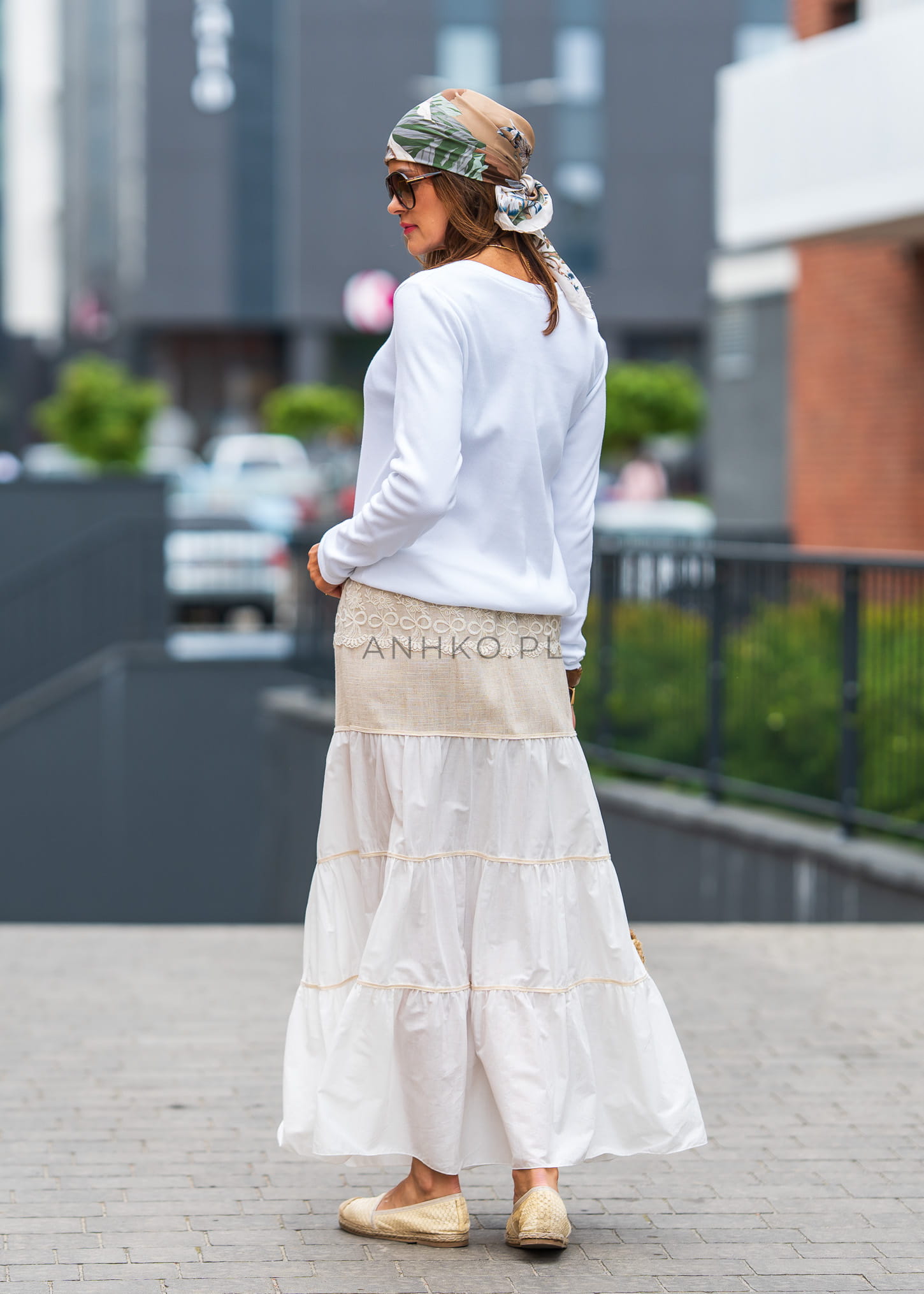 Spódnica Savana-Spódnica maxi to kwintesencja elegancji i wygody. Jej szeroka ozdobna gumka doskonale podkreśla talię, dodając charakteru całej stylizacji.