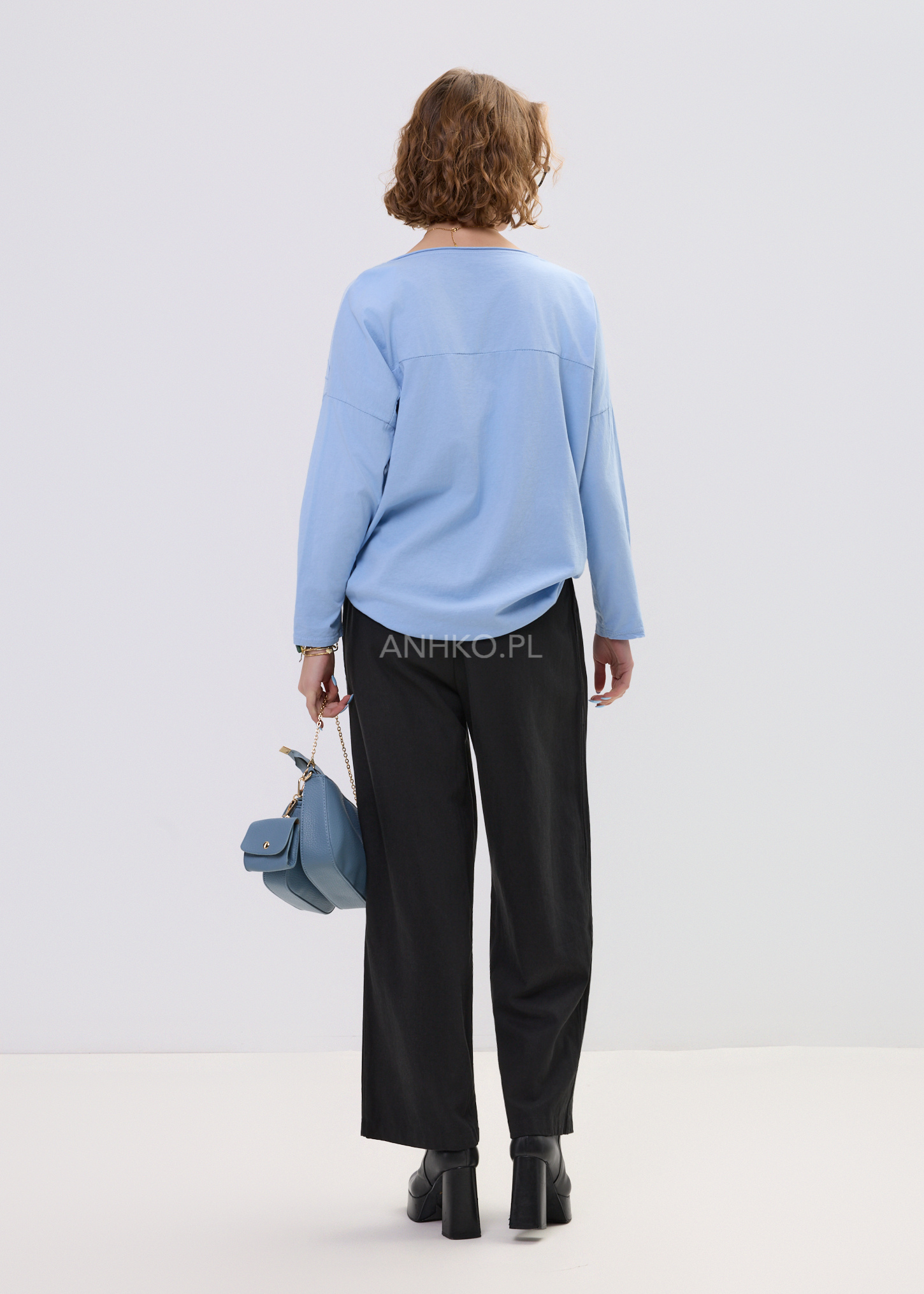 Bluzka świetnie wygląda z jeansami, materiałowymi spodniami lub spódnicą. Można ją również zestawić z marynarką lub lekkim kardiganem, tworząc stylowy warstwowy look.
