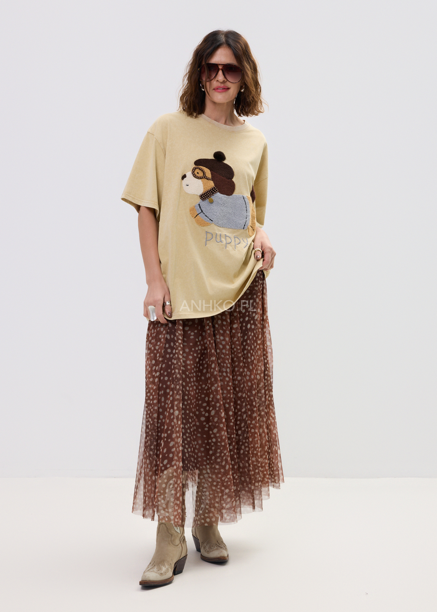 Spódnica Lunareth Bambi Brązowa - Lekka, zwiewna spódnica midi z tiulową warstwą i subtelnym printem w kropki. Idealna na co dzień i na wyjścia – wystarczy basicowy top i masz gotowy look.