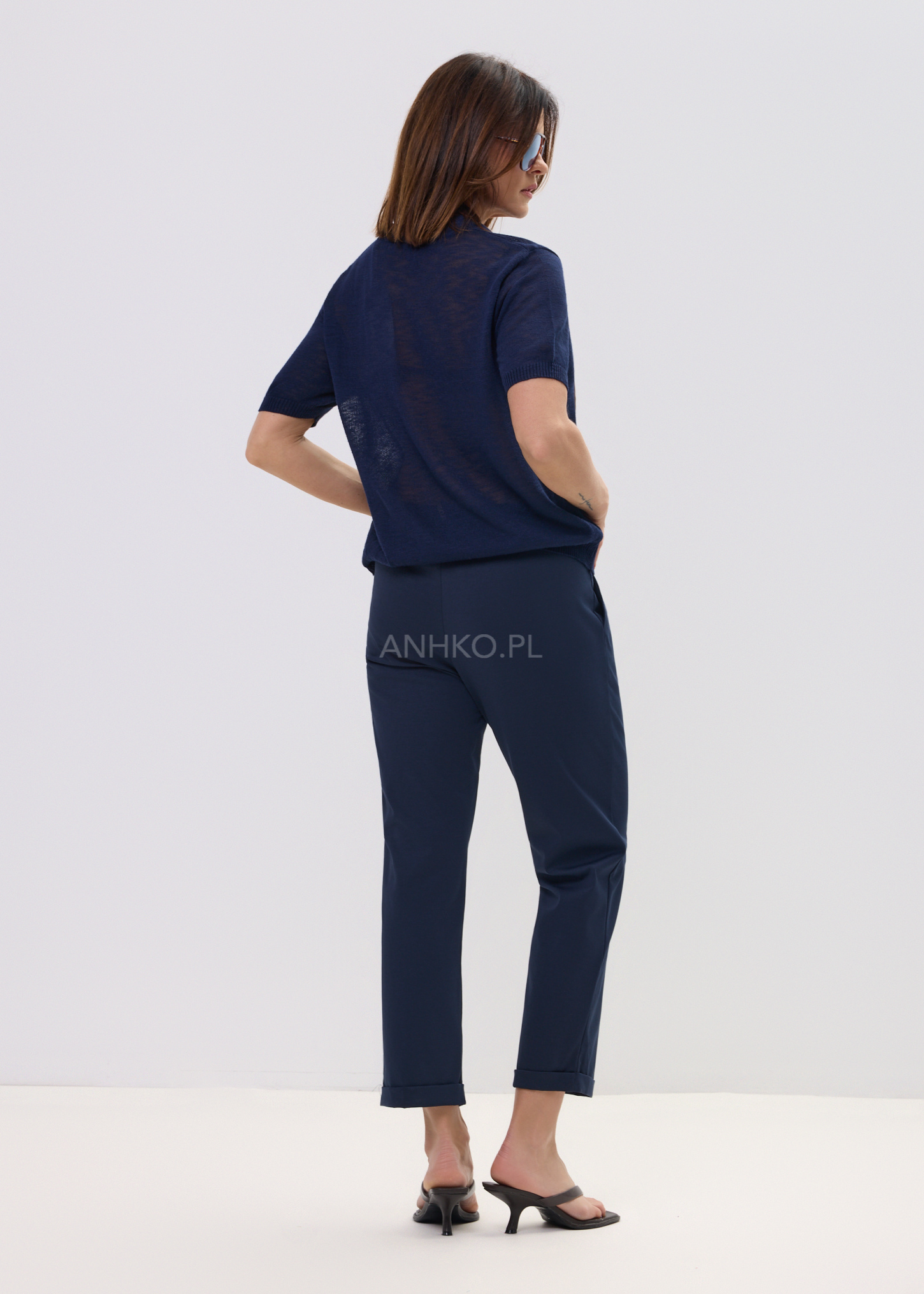 Spodnie Wawel Granatowe - Minimalistyczne spodnie w kolorze granatowym , które łączą wygodę z nowoczesnym stylem. Elastyczny pas i lekko zwężana nogawka sprawiają, że model świetnie układa się na sylwetce i pasuje zarówno do codziennych, jak i bardziej eleganckich stylizacji.