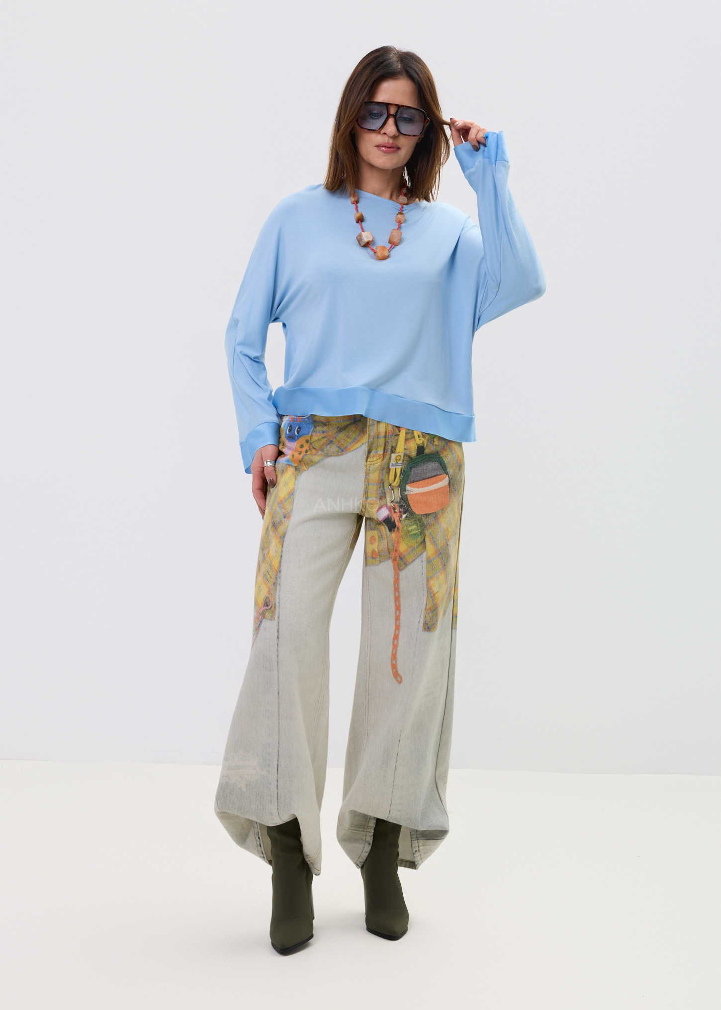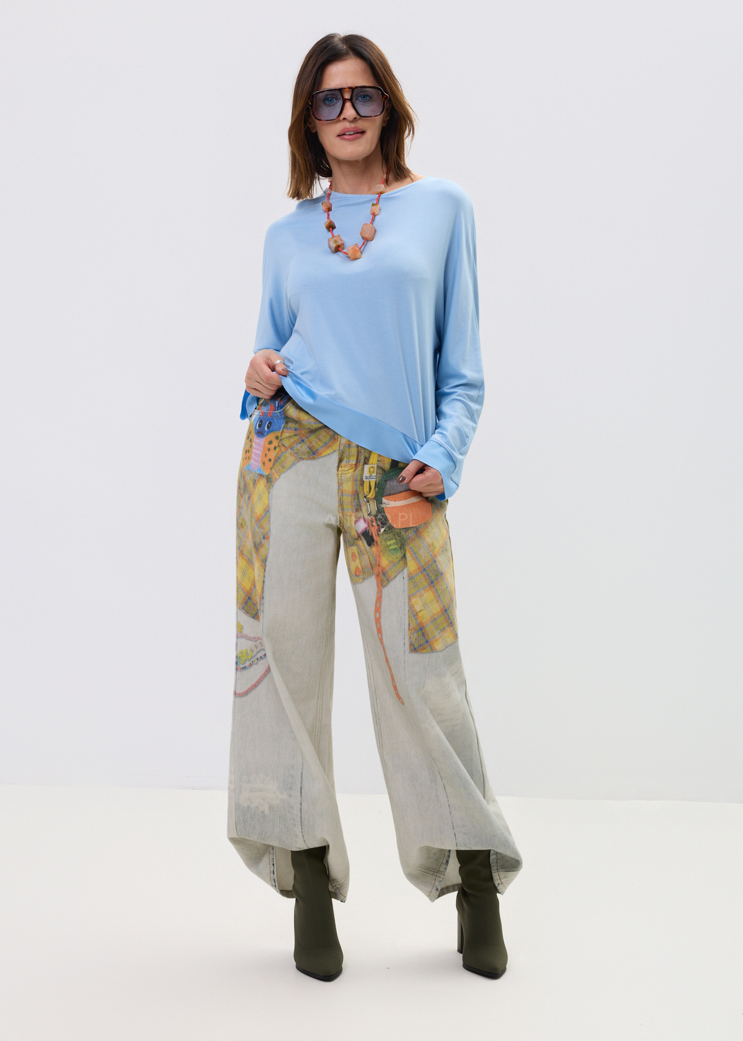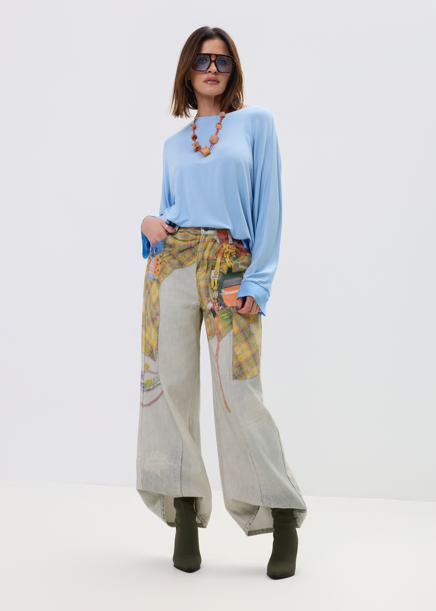 Spodnie Jeansowe Canvas Wide - Artystyczne jeansy, które robią cały look. Luźny krój, sprany denim i wyrazisty print w klimacie street art – idealne, jeśli lubisz wyróżniać się bez wysiłku.