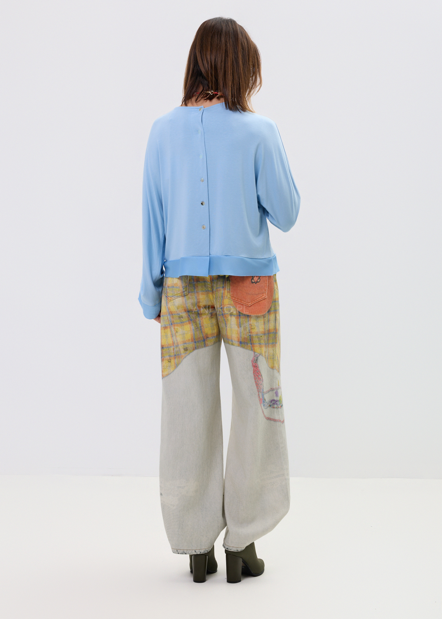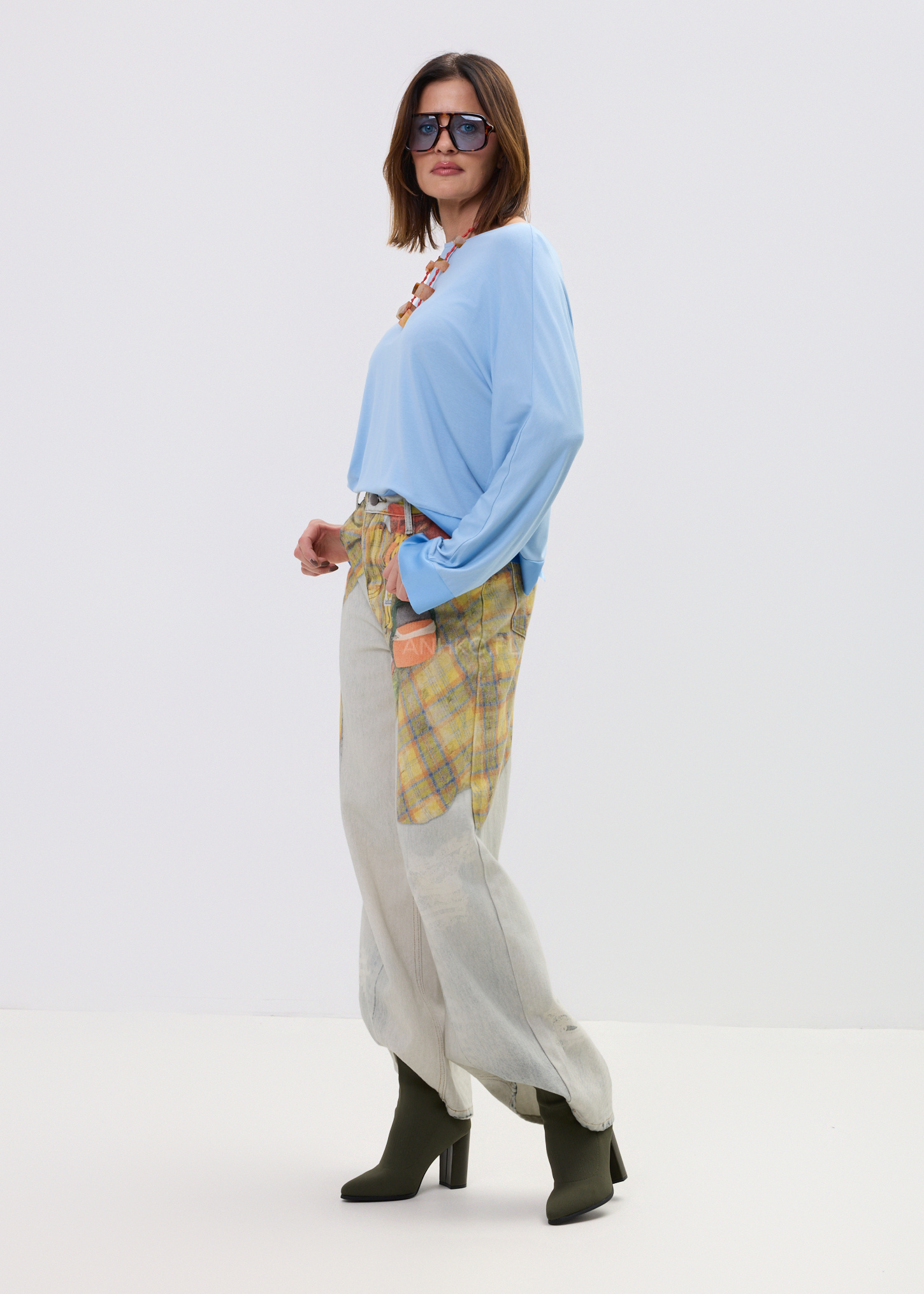 Model świetnie odnajduje się zarówno w stylizacjach codziennych, jak i bardziej wyrafinowanych zestawach. Luźny fason i dopracowane detale sprawiają, że bluzka prezentuje się stylowo bez wysiłku – wystarczy połączyć ją z jeansami lub eleganckimi spodniami, aby stworzyć harmonijną i ponadczasową stylizację.