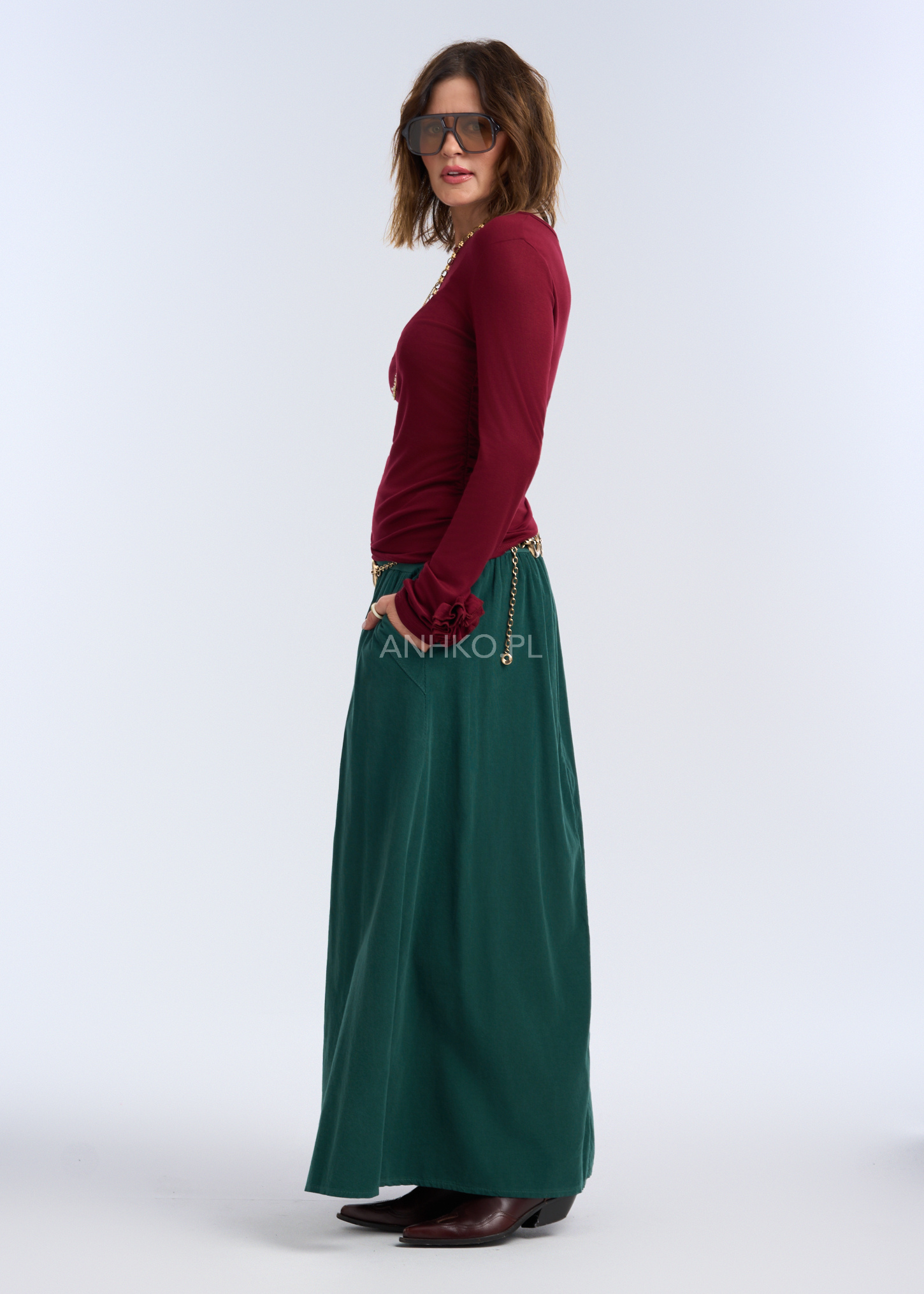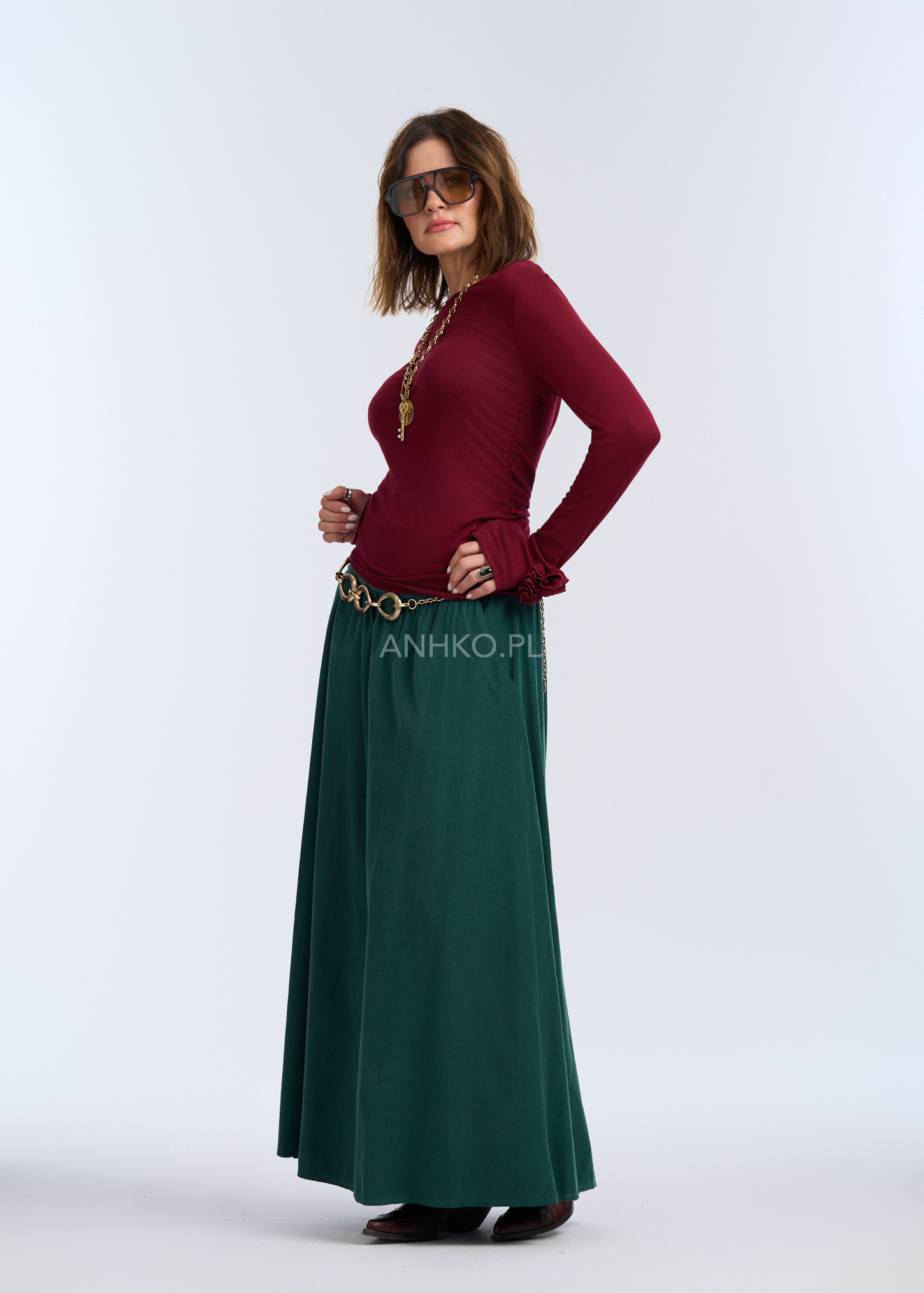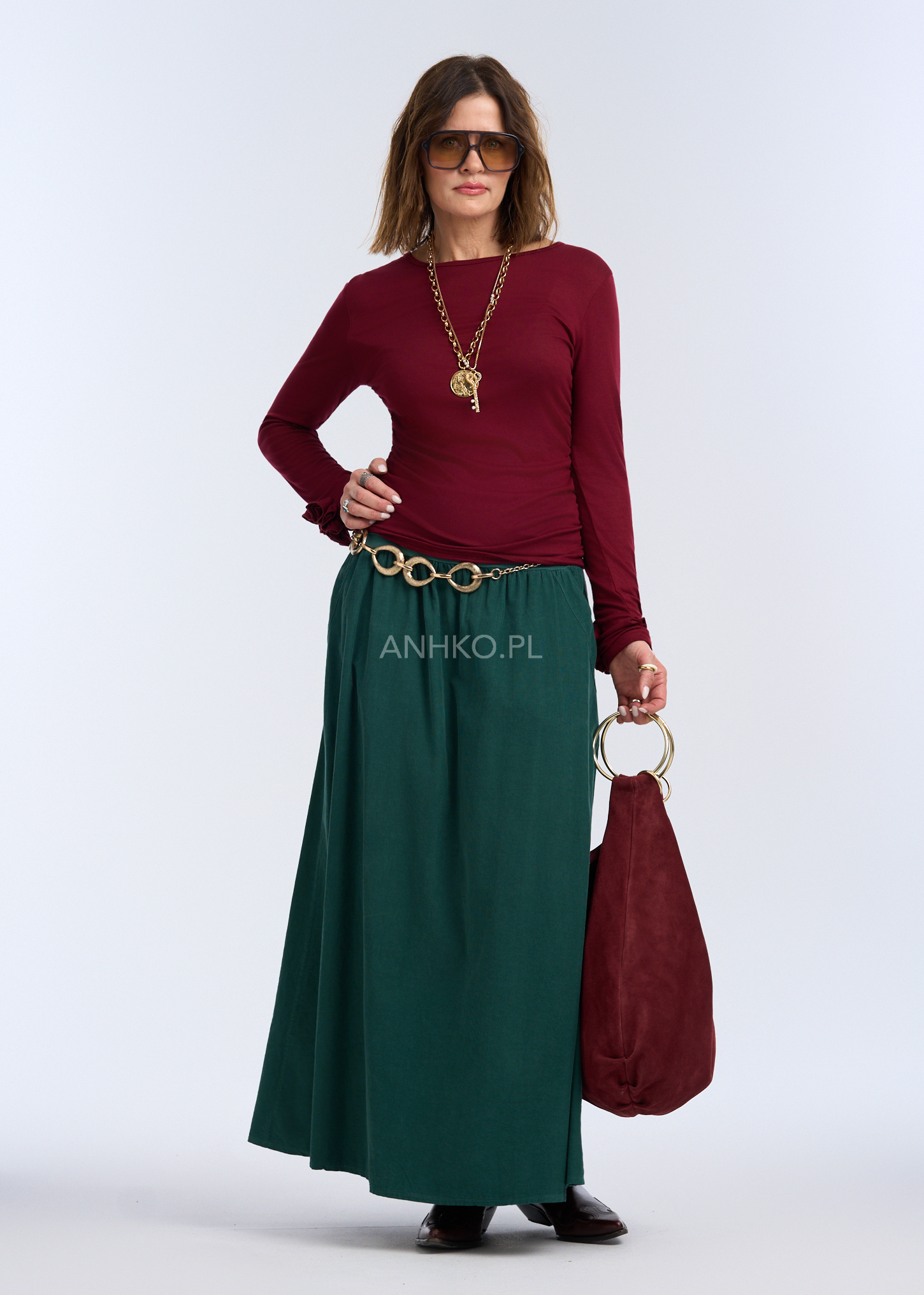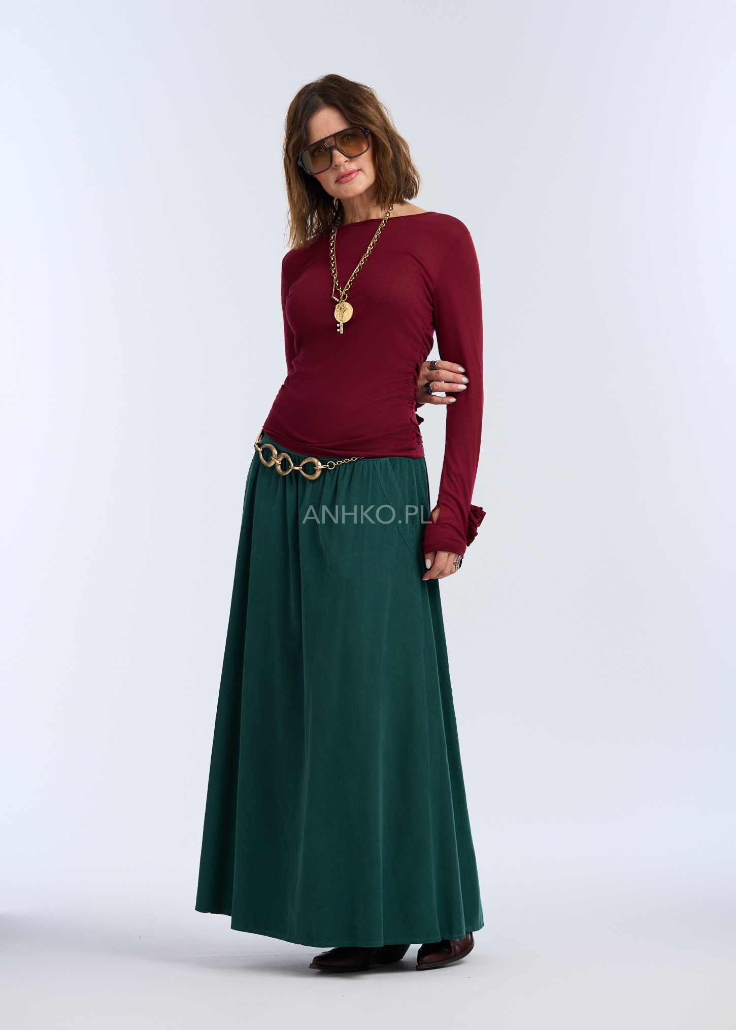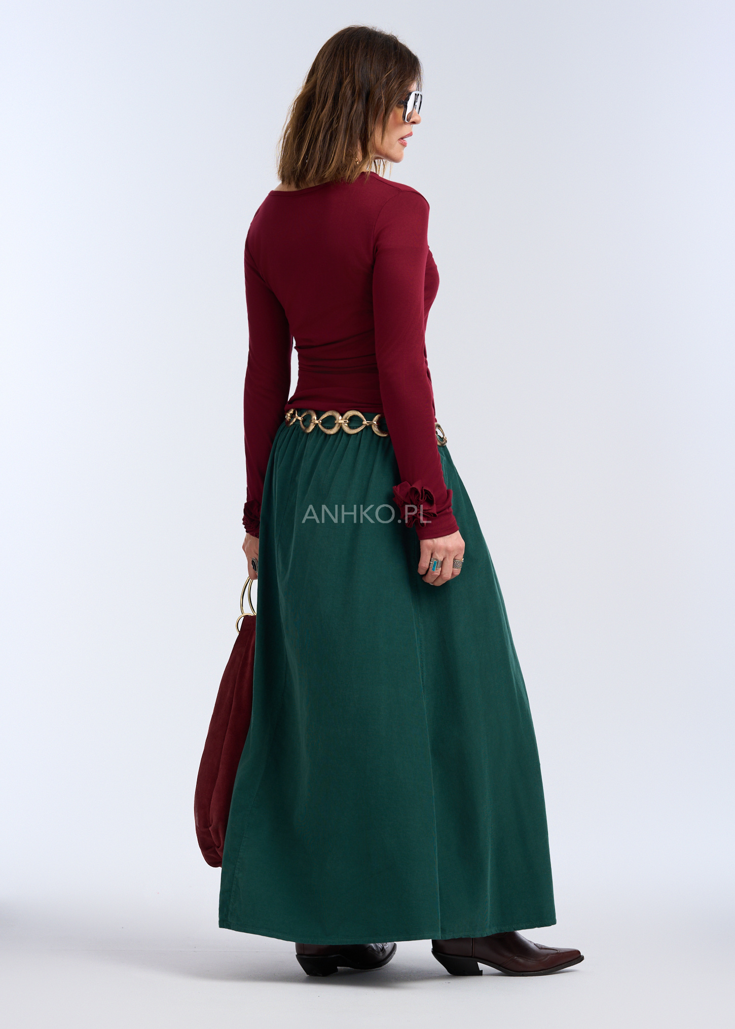 Spódnica Sztruksowa Corall Ciemnozielona - Ciemnozielona sukienka to idealny wybór dla kobiet, które cenią sobie komfort, prostotę i funkcjonalność, jednocześnie nie rezygnując z kobiecego wyglądu.