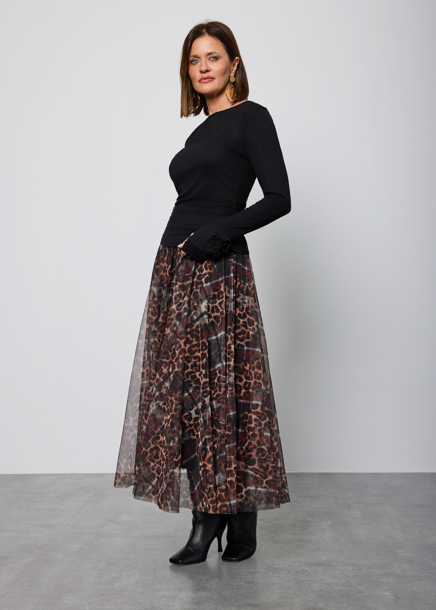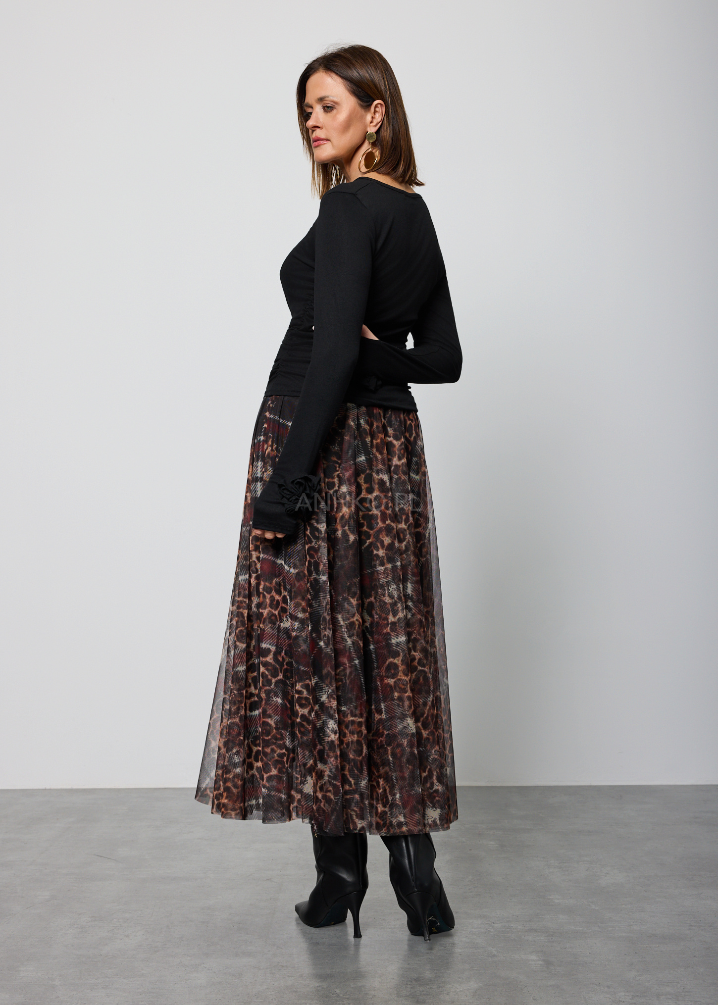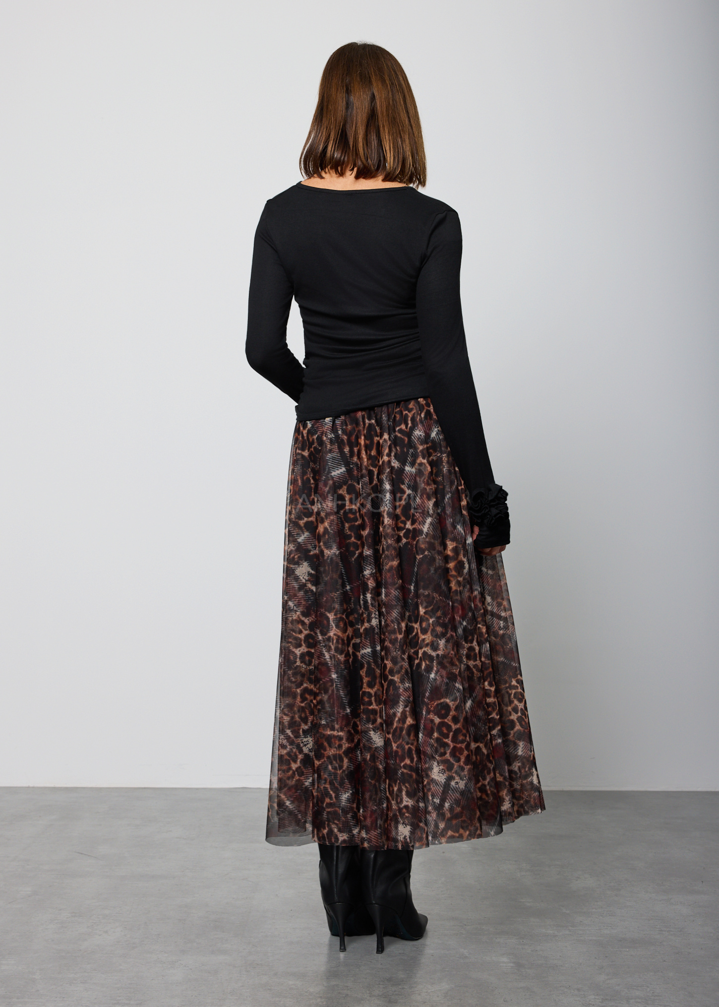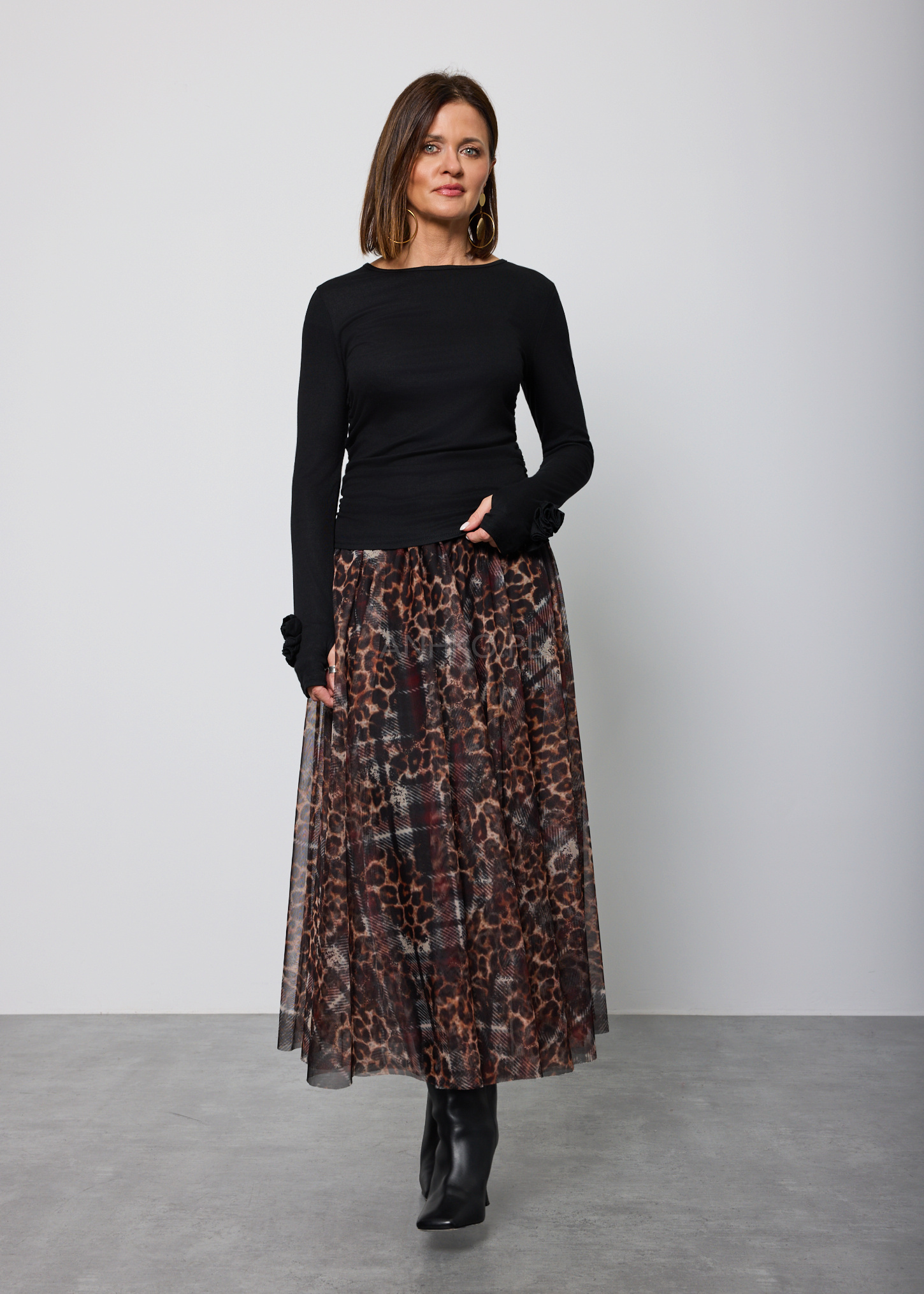 Spódnica Lunareth Lampards - Wyrazista spódnica midi o lekkiej, warstwowej formie. Transparentna warstwa zewnętrzna tworzy efekt ruchu, a wewnętrzna halka zapewnia komfort noszenia. Model, który nadaje stylizacji charakter i przyciąga uwagę bez wysiłku.