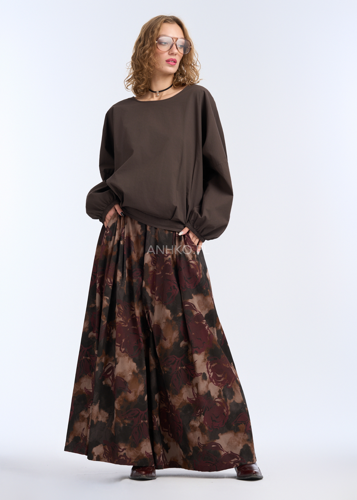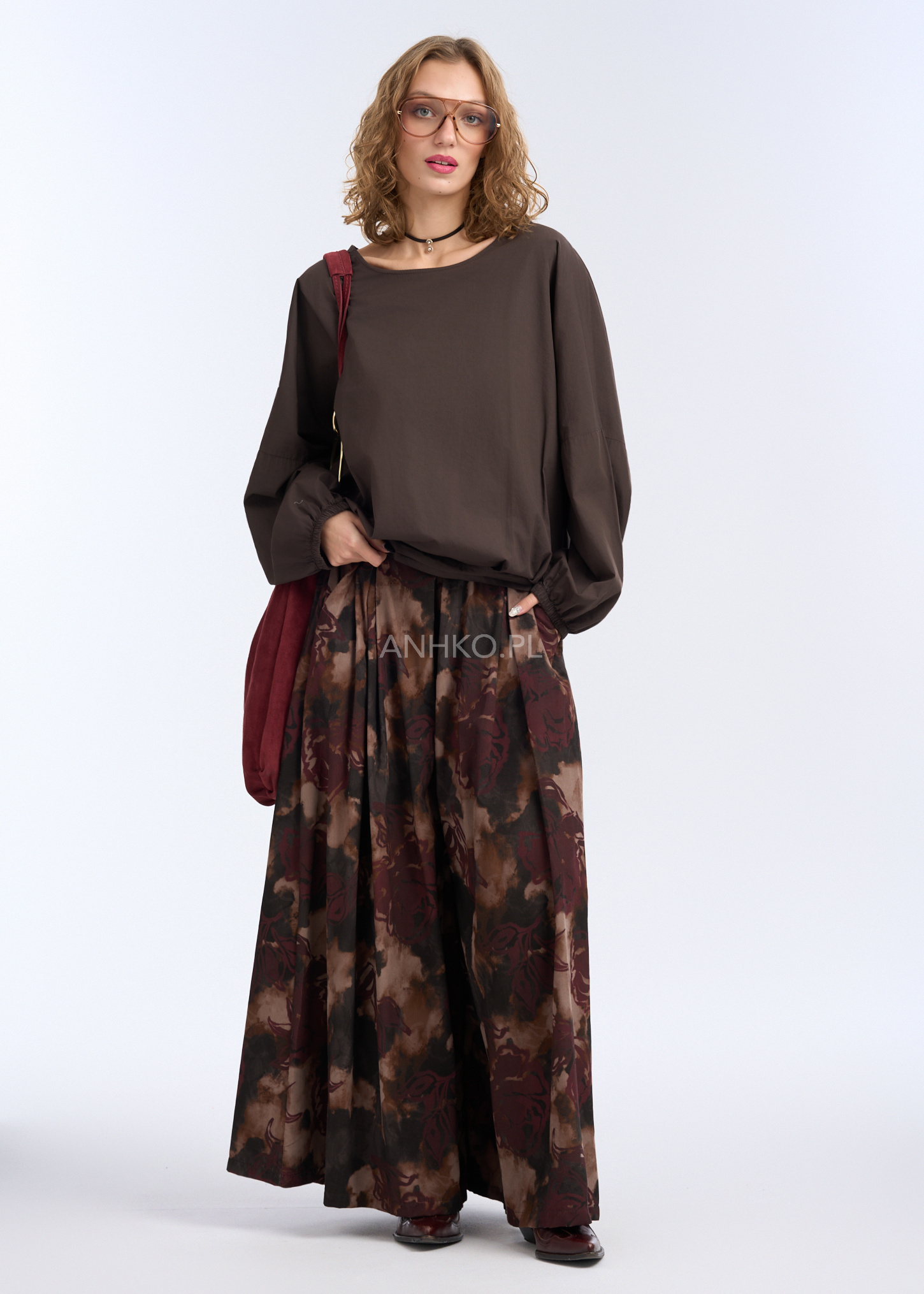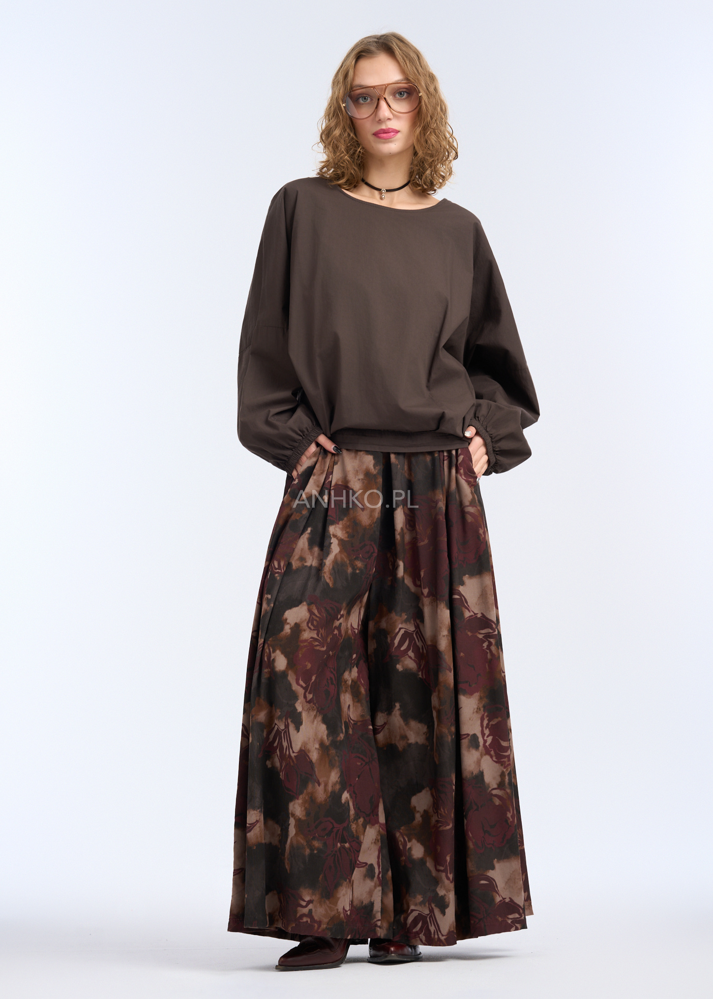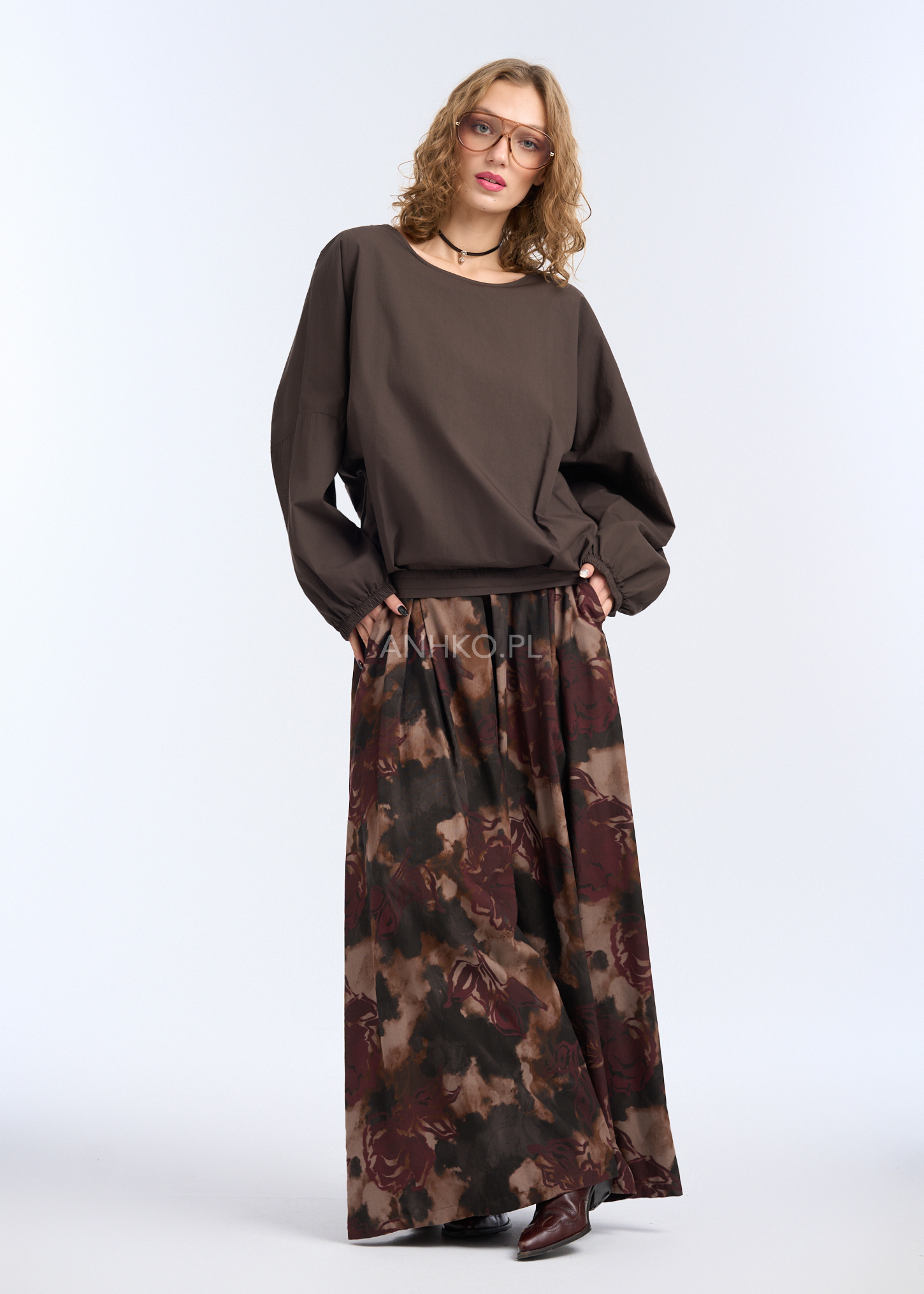 Bluzka o oryginalnej, asymetrycznej konstrukcji, zaprojektowana z myślą o wygodzie i współczesnym stylu. Luźna forma z obniżoną linią ramion oraz elastyczne wykończenie w talii nadają sylwetce lekkości i swobody ruchów. Model posiada długie rękawy zakończone delikatnym mankietem, który subtelnie układa się na nadgarstku. Z boku zastosowano dekoracyjne marszczenie z regulacją, pozwalające na indywidualne dopasowanie długości i formy. Bluzka nie posiada kieszeni ani podszewki, dzięki czemu zachowuje lekkość i naturalne układanie się na ciele. Idealna do noszenia na co dzień, do pracy, spotkań czy casualowych wyjść – doskonale komponuje się zarówno ze spodniami, jak i spódnicą.