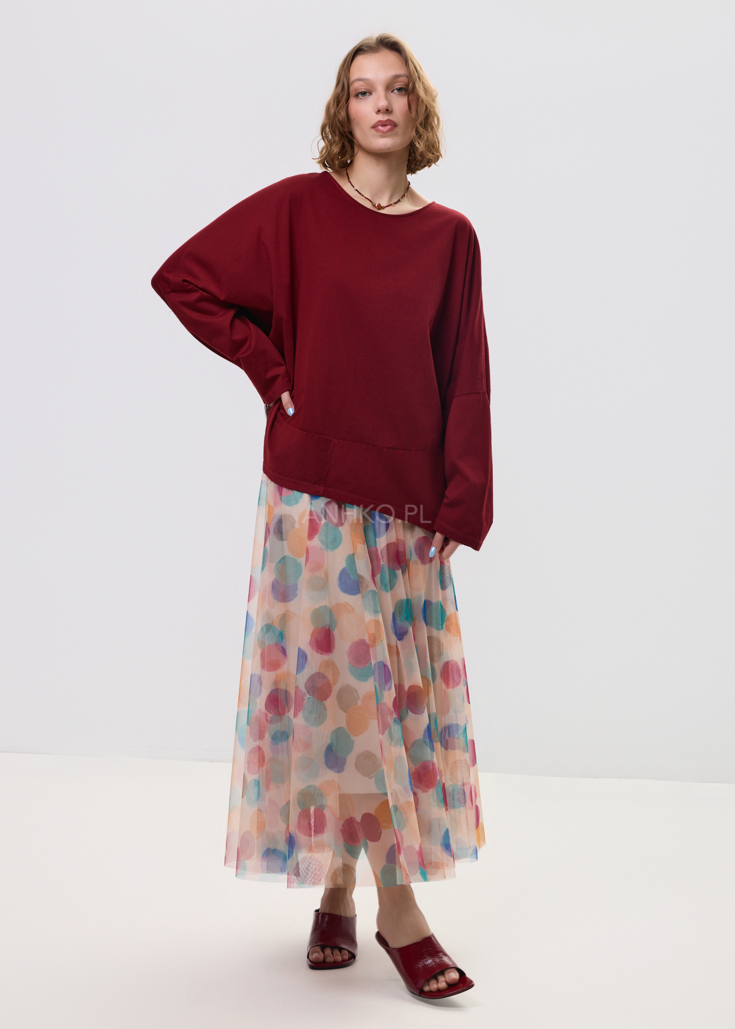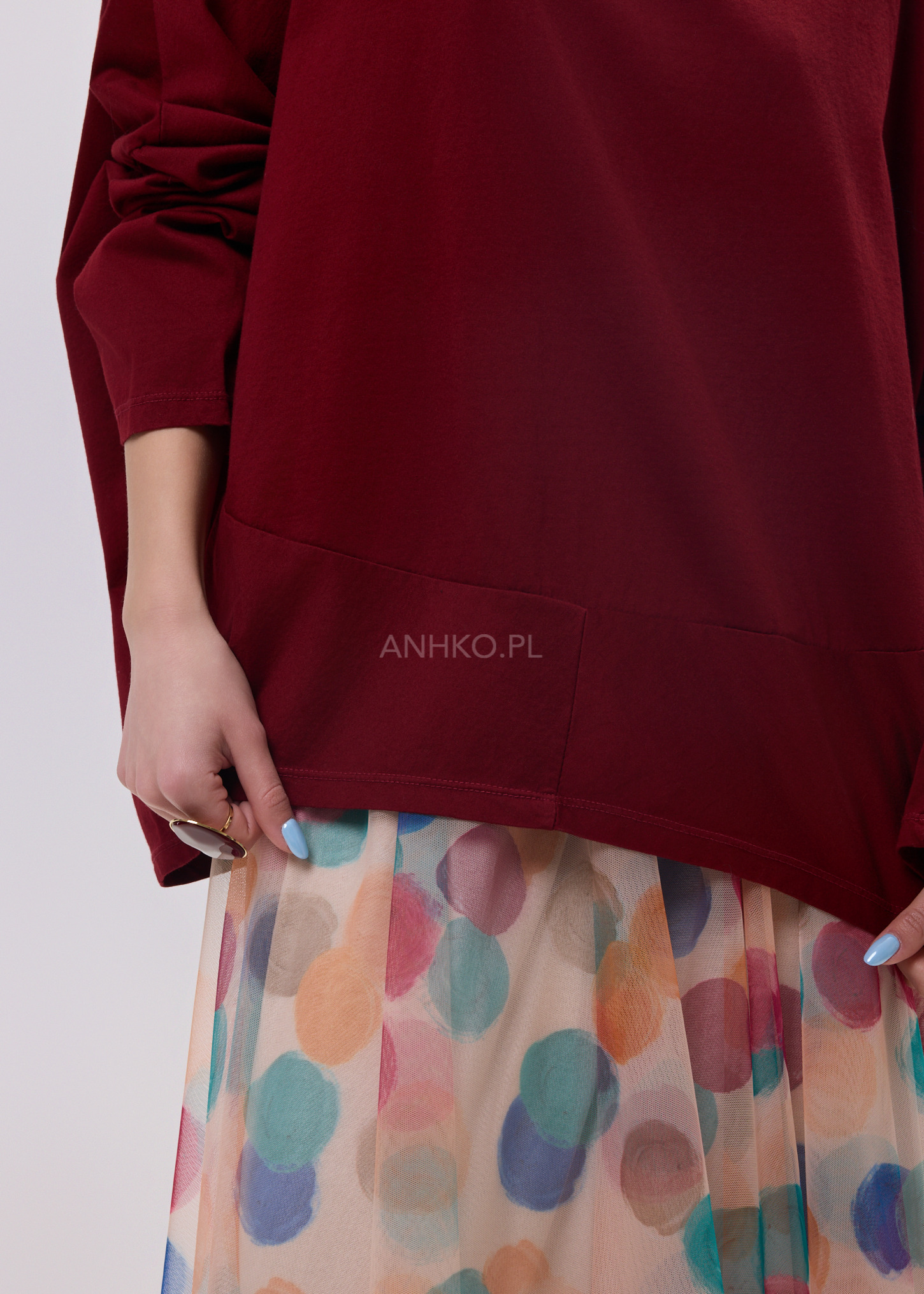- Luźny, oversize’owy fason
