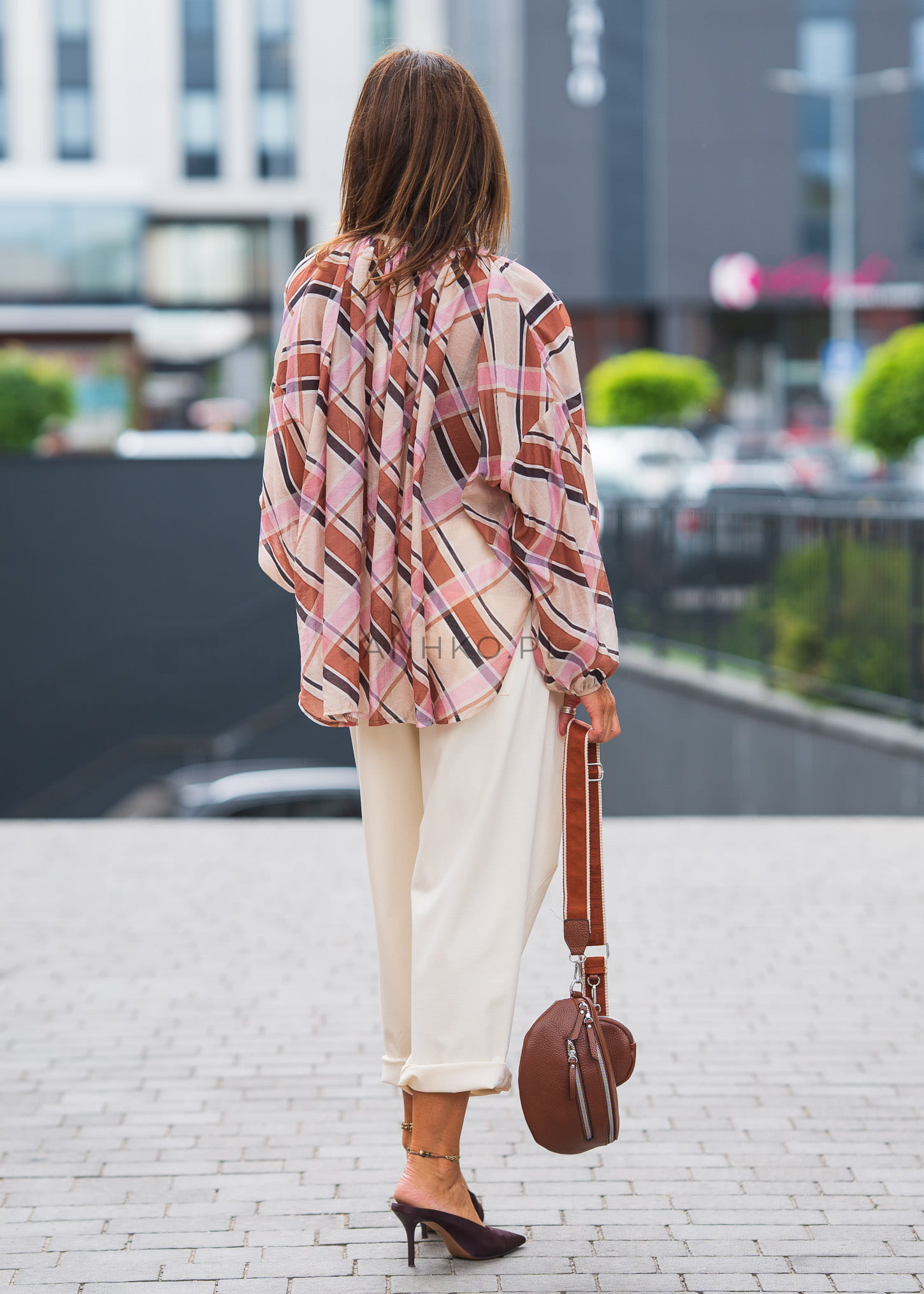 Bluzka Koszulowa Lotos Beżowo-Różowa