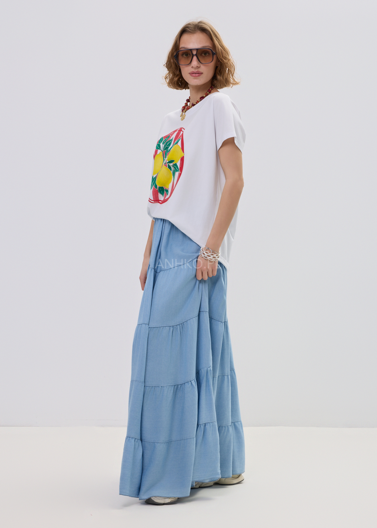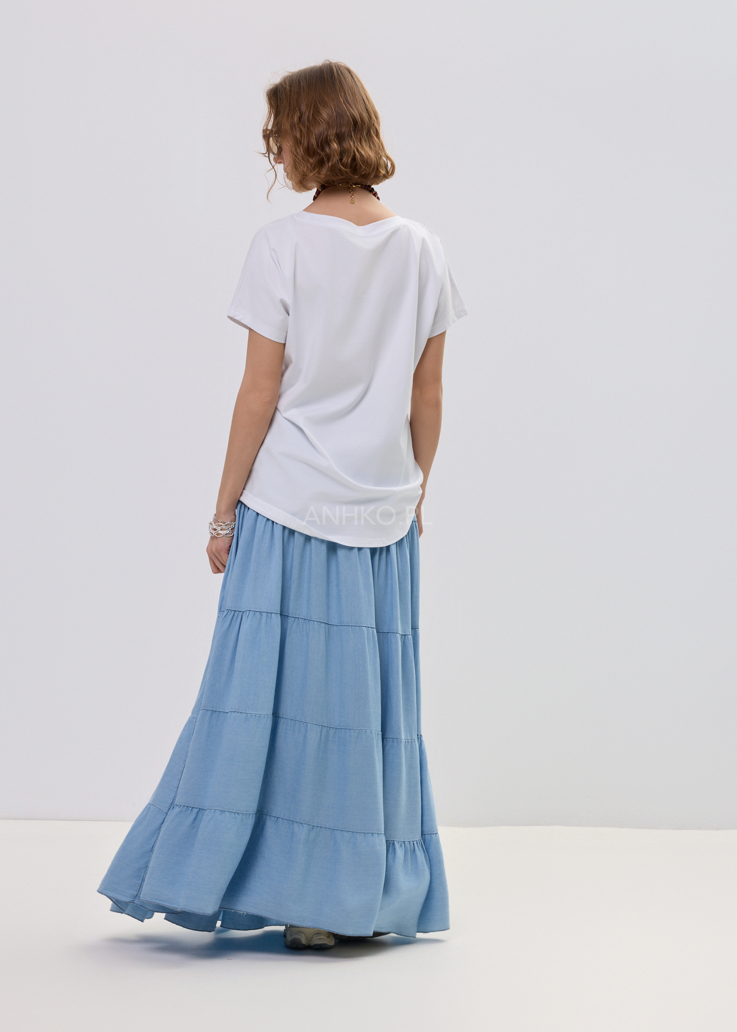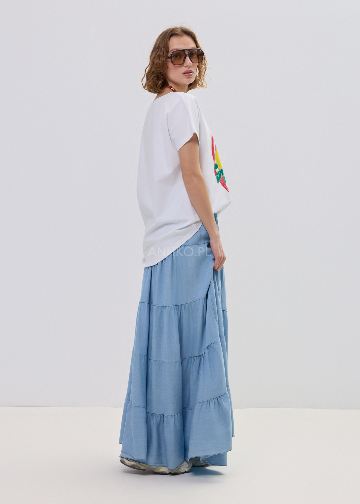 Spódnica Brellana Niebieska - Zwiewna, błękitna spódnica maxi z miękkiego Tencelu. Idealna na lato – lekka, oddychająca i kobieca. Sprawdzi się na co dzień i podczas wakacyjnych wyjazdów.