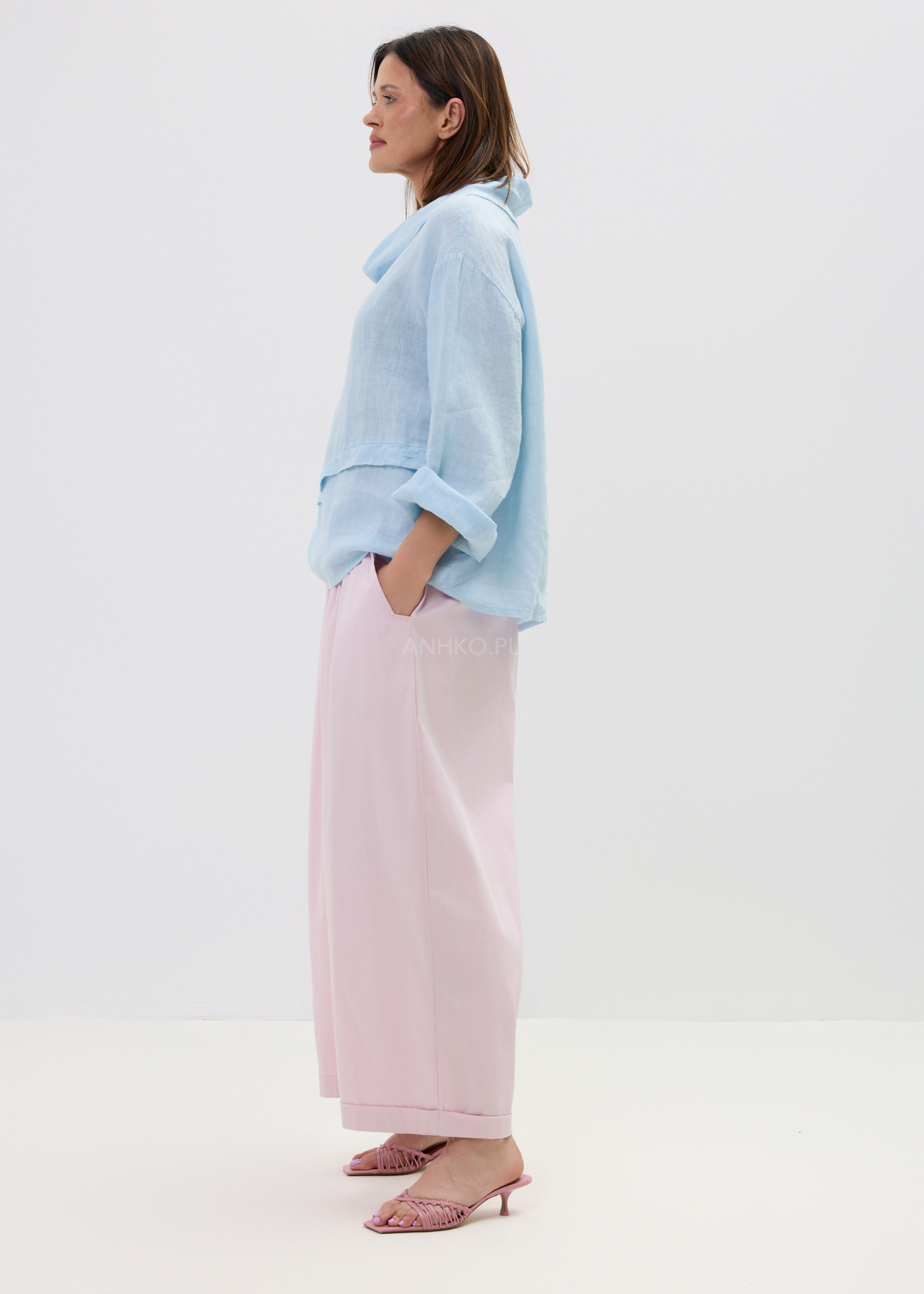 Jasny odcień baby blue wnosi świeżość do stylizacji i świetnie komponuje się zarówno z neutralnymi, jak i bardziej kontrastowymi elementami garderoby. To model, który sprawdzi się w codziennych zestawach, ale równie dobrze odnajdzie się w bardziej dopracowanych lookach. Naturalna struktura materiału i swobodny fason czynią ją ponadczasową bazą do wielu stylizacji.