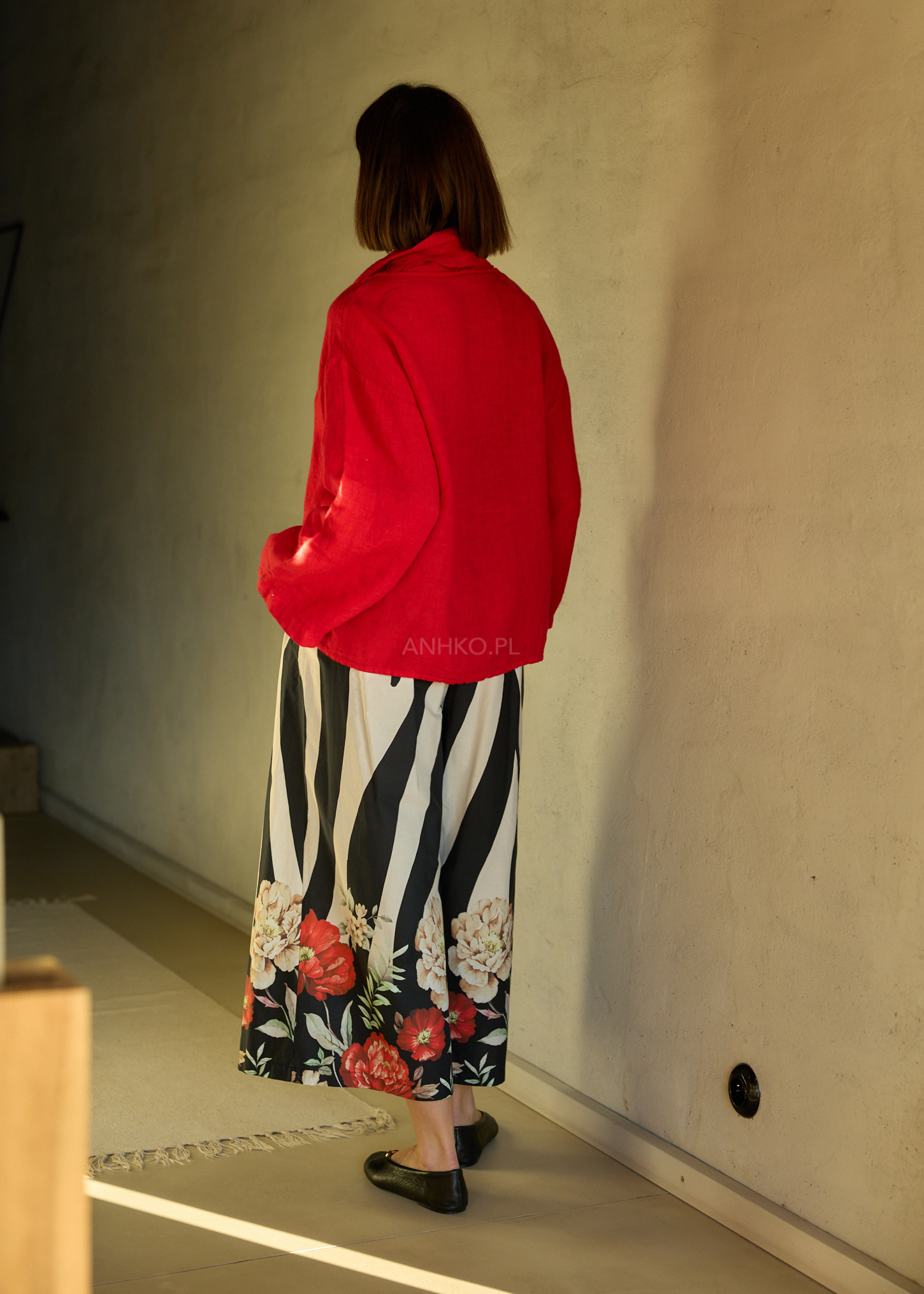 Odcień czerwony wnosi świeżość do stylizacji i świetnie komponuje się zarówno z neutralnymi, jak i bardziej kontrastowymi elementami garderoby. To model, który sprawdzi się w codziennych zestawach, ale równie dobrze odnajdzie się w bardziej dopracowanych lookach. Naturalna struktura materiału i swobodny fason czynią ją ponadczasową bazą do wielu stylizacji.