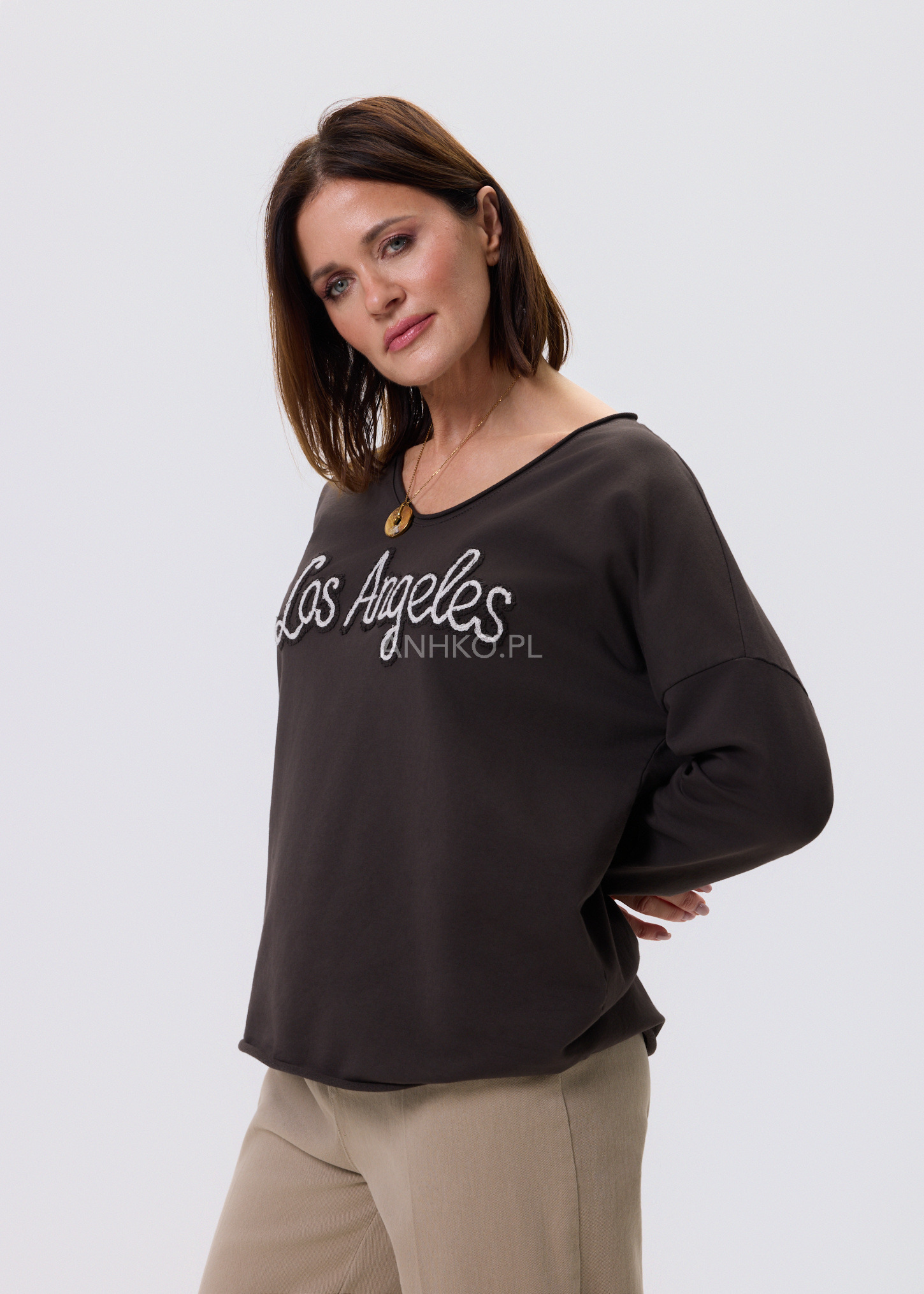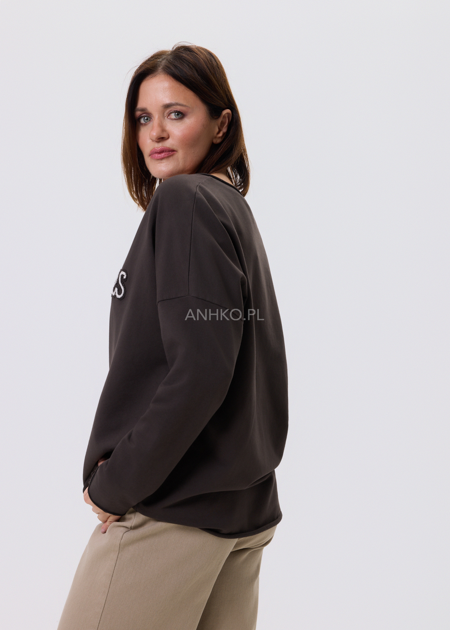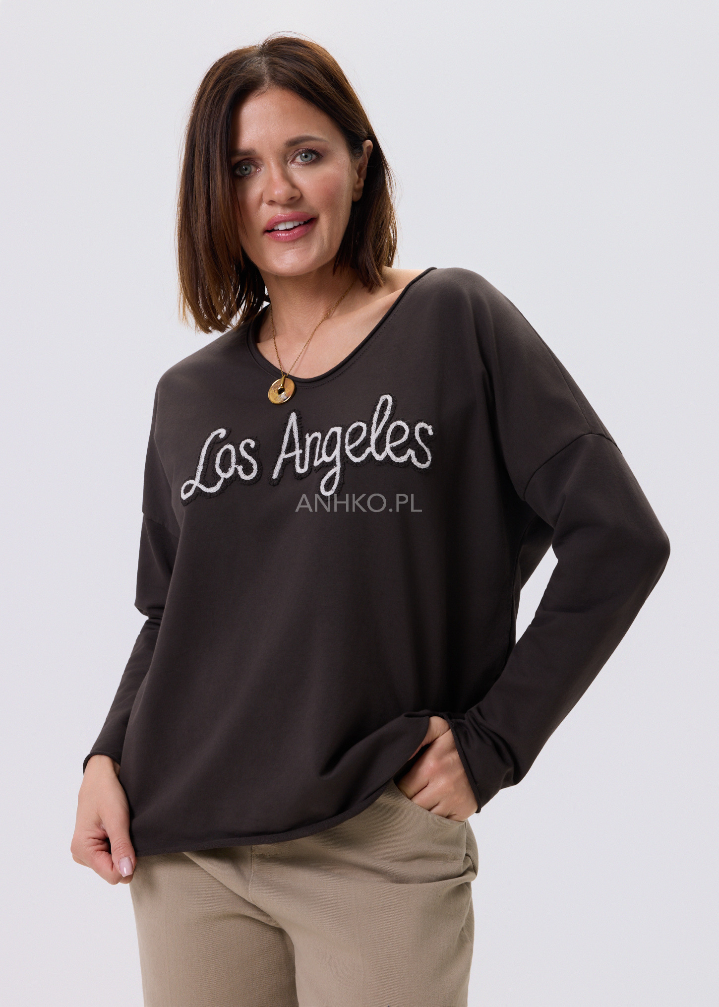 Bluzka o nowoczesnym, luźnym fasonie, zaprojektowana z myślą o codziennym komforcie i uniwersalnym stylu. Delikatnie opadająca linia ramion oraz długie rękawy nadają jej swobodny, miejski charakter. Na przodzie znajduje się dekoracyjny haft, który stanowi subtelny akcent i przyciąga uwagę bez efektu przesady. Doskonale sprawdzi się w stylizacjach casualowych – z jeansami, spodniami materiałowymi lub spódnicą. Idealna na co dzień, do pracy w trybie smart casual, na spotkania, zakupy czy wyjazdy.