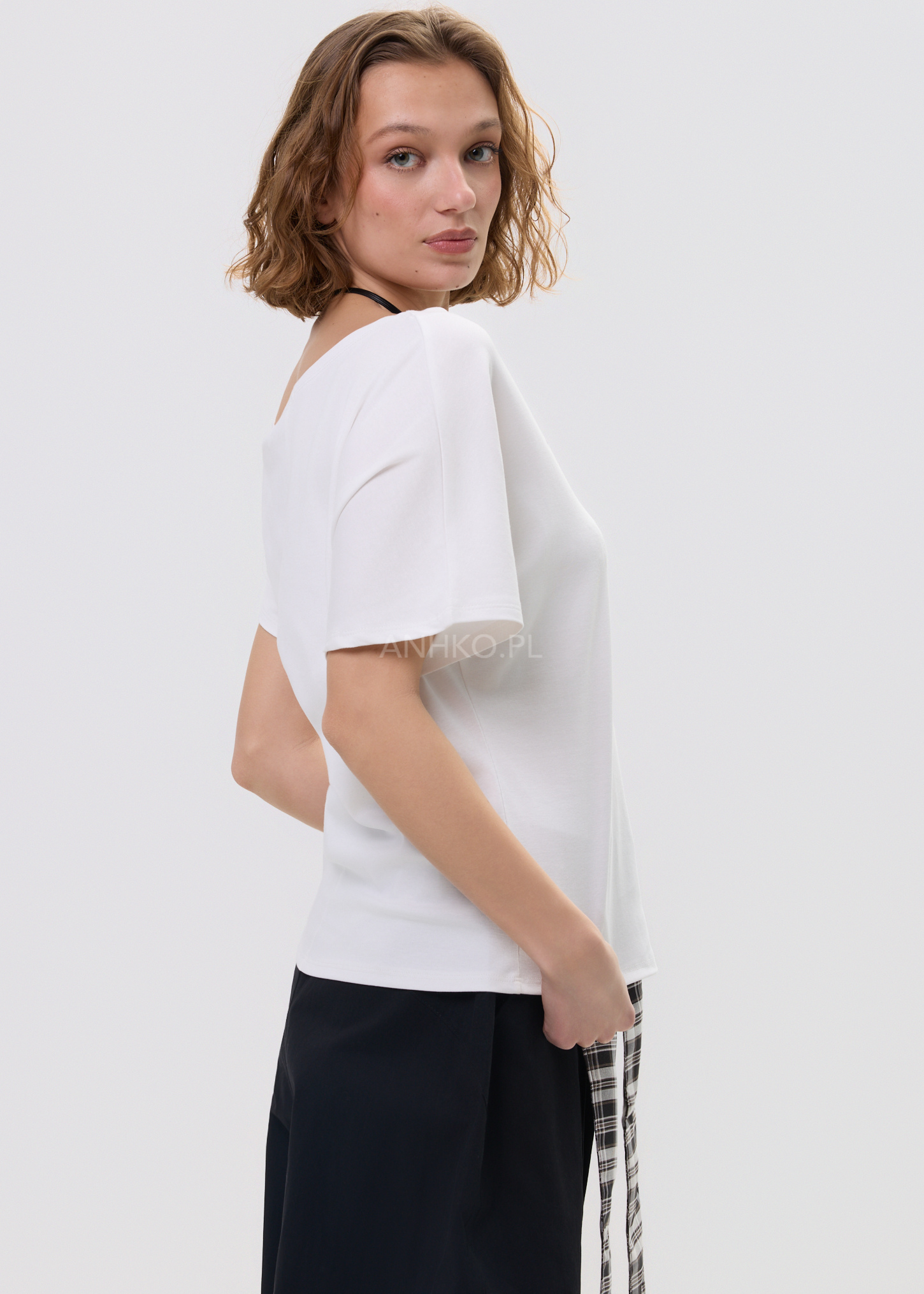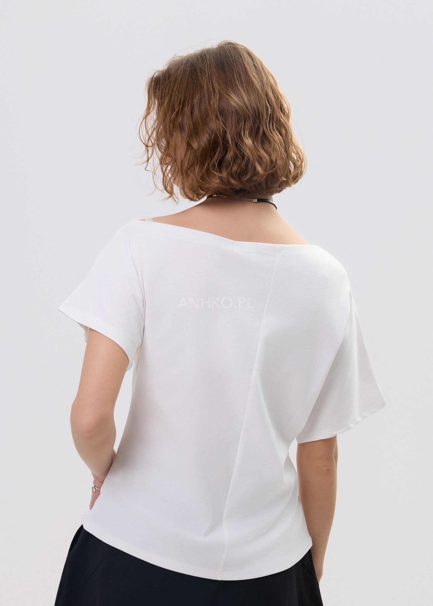 - Dekolt: Szeroki, lekko łódkowy – subtelnie eksponuje linię szyi i ramion.