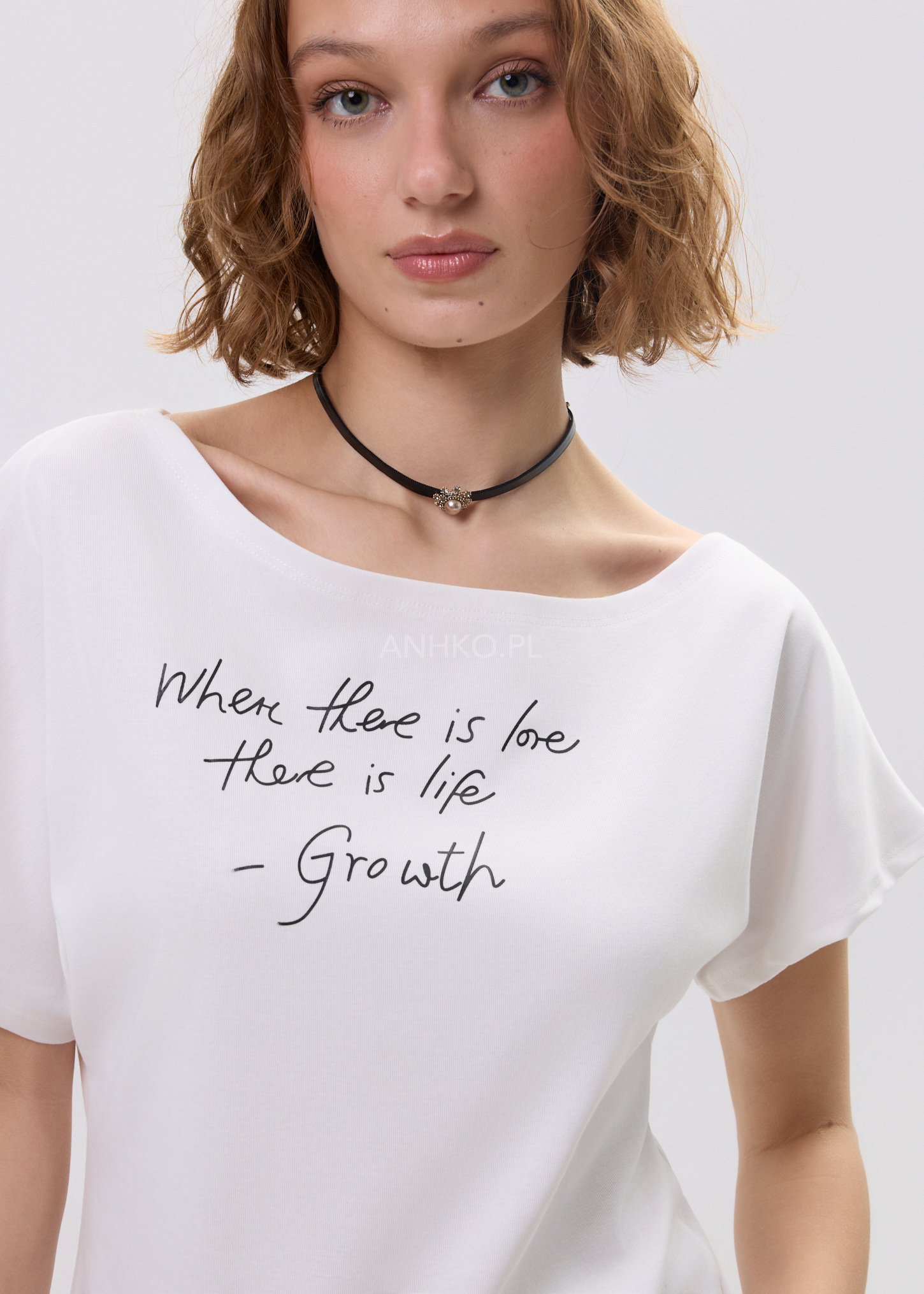 Szeroki, lekko łódkowy dekolt dodaje całości lekkości, a miękka dzianina sprawia, że model jest przyjemny w noszeniu przez cały dzień. To luźny fason oversize, który świetnie komponuje się zarówno z jeansami, jak i szerokimi spodniami czy spódnicą. Dzięki swojej prostocie bluzka staje się uniwersalną bazą stylizacji, a inspirujący nadruk dodaje jej nowoczesnego, minimalistycznego charakteru.