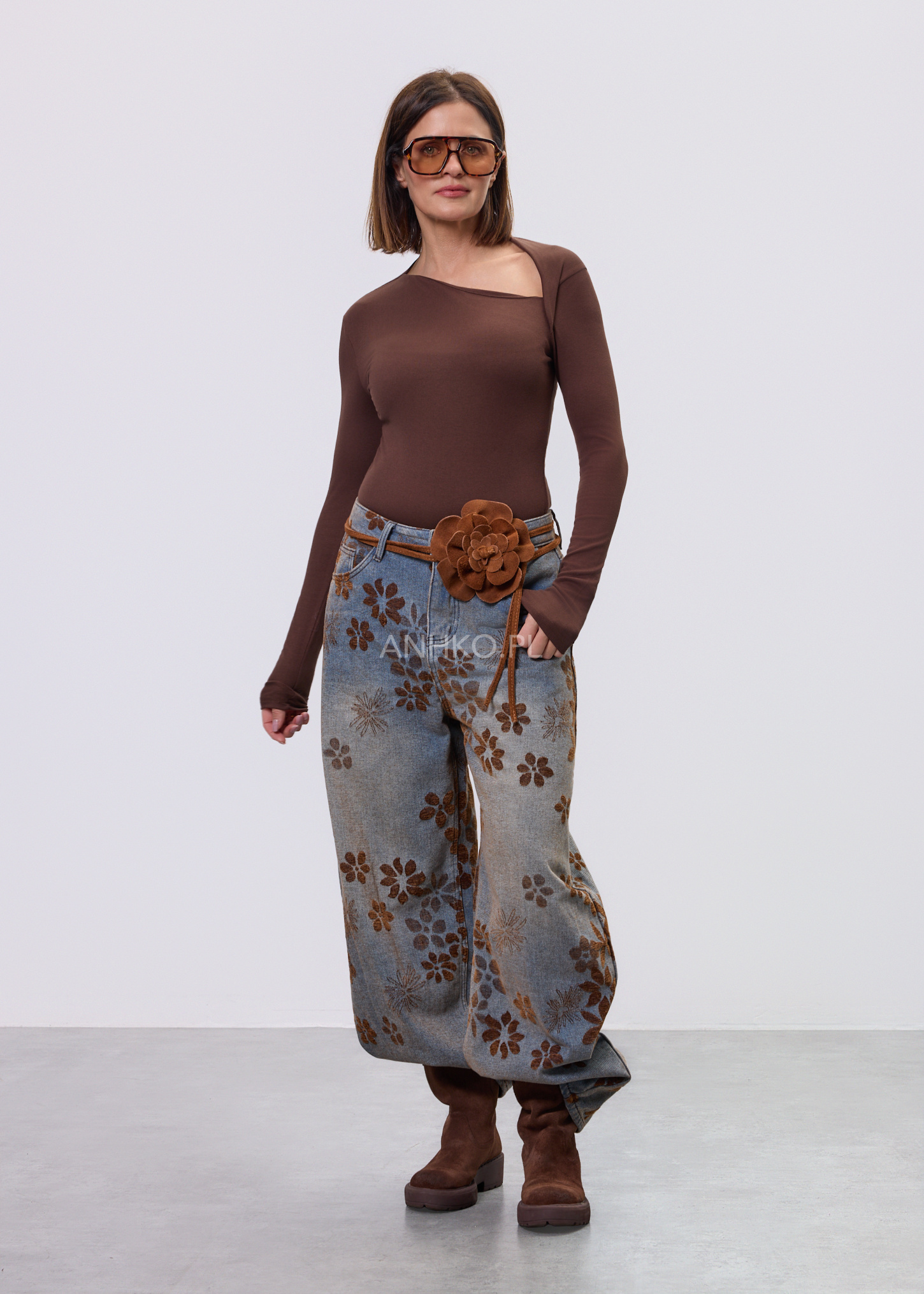 Pasek z Kwiatem Zamszowy Small Camel - Elegancki pasek z naturalnego zamszu w modnym kolorze karmelowym, ozdobiony efektownym kwiatem. Subtelny, a zarazem wyrazisty dodatek, który podkreśli kobiecy charakter stylizacji.