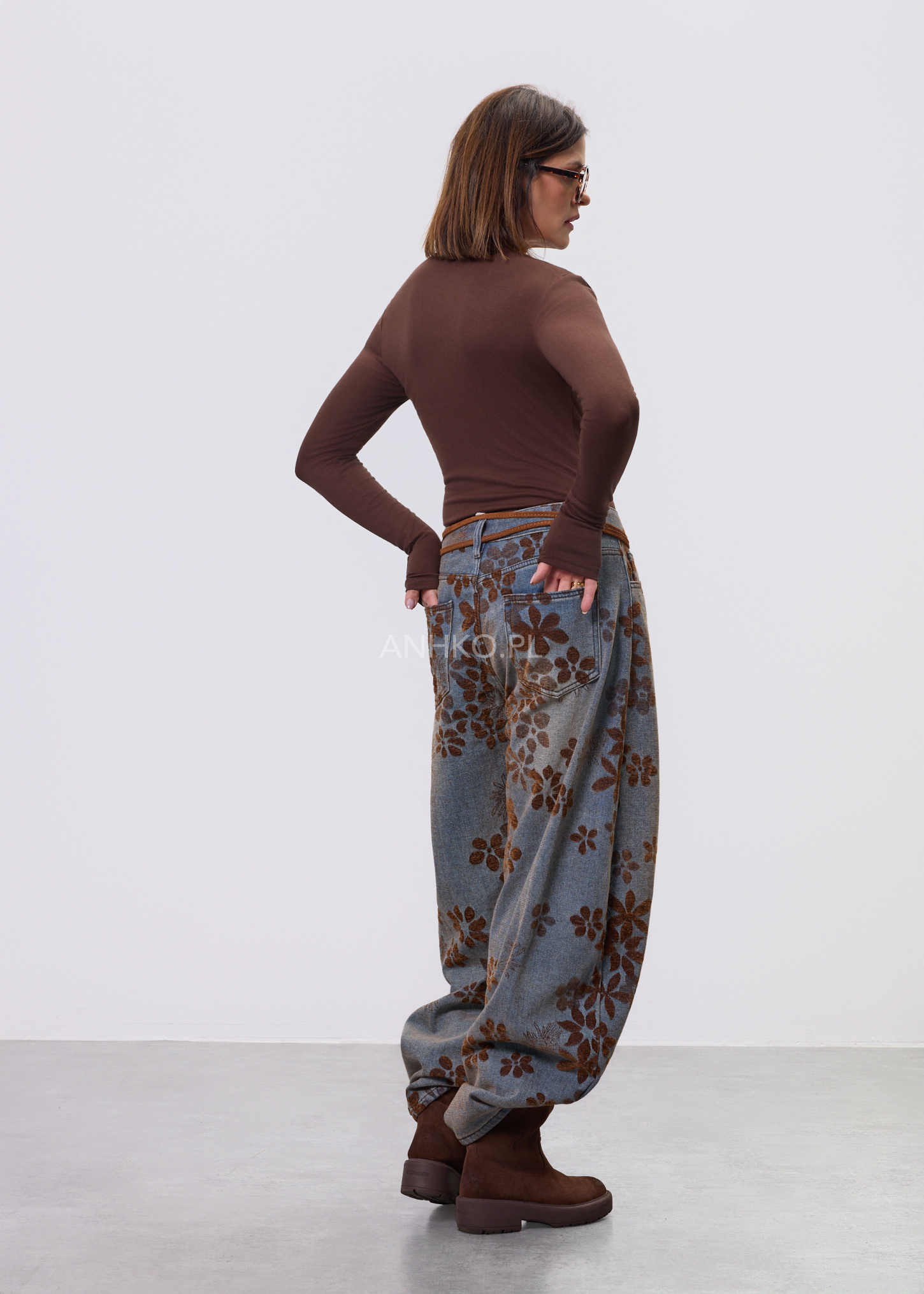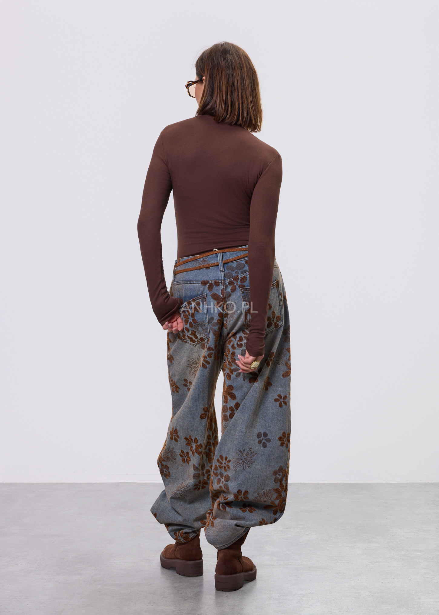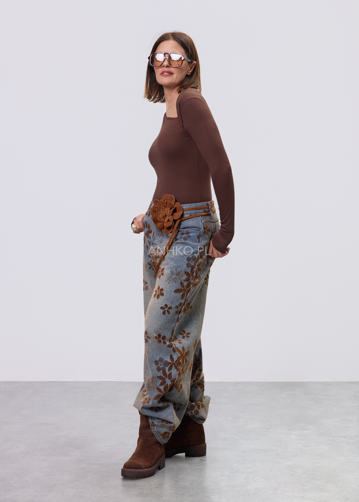 Pasek z Kwiatem Zamszowy Small Camel