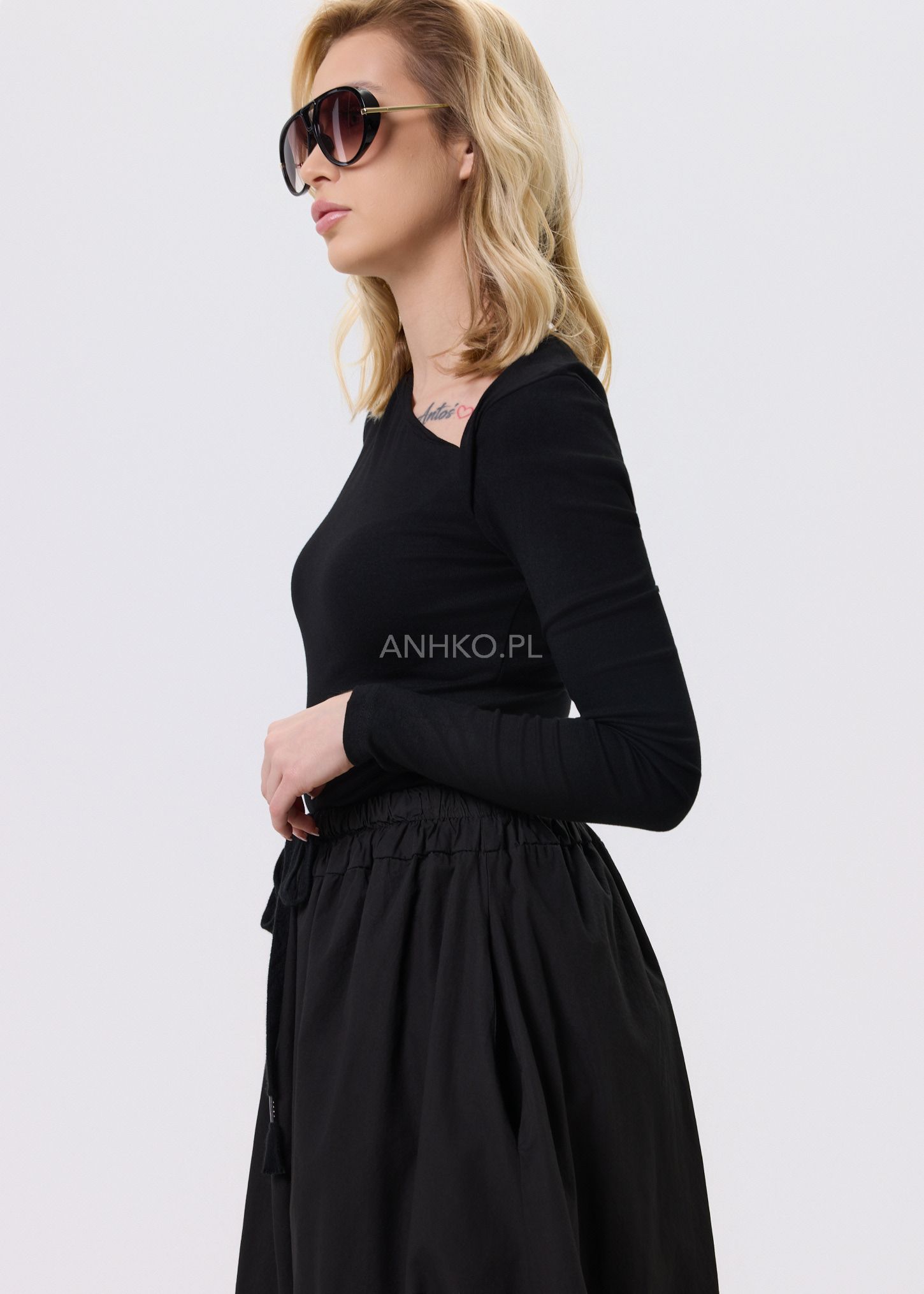 Ta bluzka to połączenie nowoczesnej formy i ponadczasowej prostoty. Asymetryczny dekolt nadaje jej charakteru i wyróżnia ją na tle klasycznych modeli, jednocześnie pozostając bardzo uniwersalnym. Dopasowany krój pięknie układa się na sylwetce, podkreślając talię bez uczucia skrępowania. Miękki, elastyczny materiał zapewnia wygodę noszenia przez cały dzień – zarówno w pracy, jak i podczas spotkań czy wyjść po godzinach. Świetnie komponuje się z jeansami, spódnicą ołówkową lub eleganckimi spodniami z wysokim stanem.