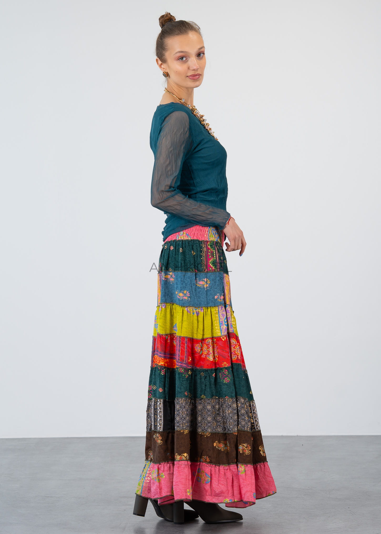 Materiał 2: 95% wiskoza, 5% elastan. Zalecane delikatne pranie, aby zachować strukturę tkaniny.