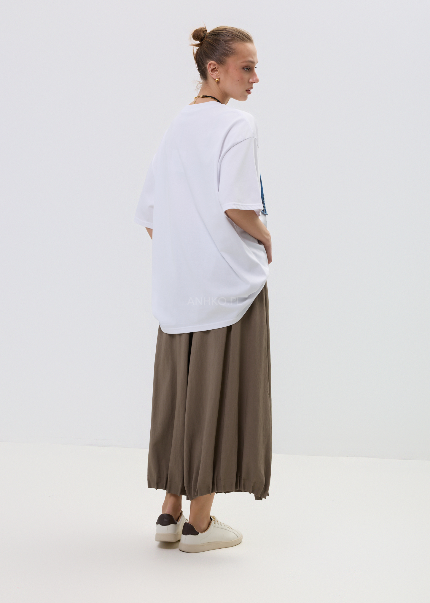 Spodnie Vino Flow Brązowe - Luźne kuloty w odcieniu brązu , które łączą wygodę spodni z lekkością spódnicy. Szeroka nogawka, elastyczny pas i delikatne koronkowe wiązanie nadają im swobodny, kobiecy charakter idealny na codzienne stylizacje.