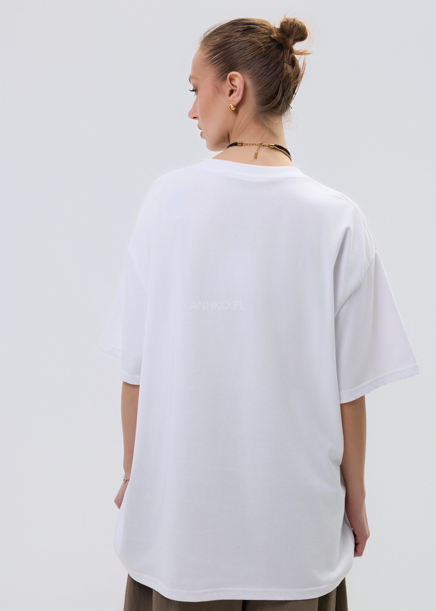 Ta bluzka typu T-shirt w kolorze białym przyciąga uwagę i nadaje stylizacji wyrazisty charakter. Luźny, oversize’owy fason swobodnie układa się na sylwetce, zapewniając komfort i lekkość noszenia, a klasyczny krój sprawia, że model pozostaje uniwersalną bazą do wielu zestawów.