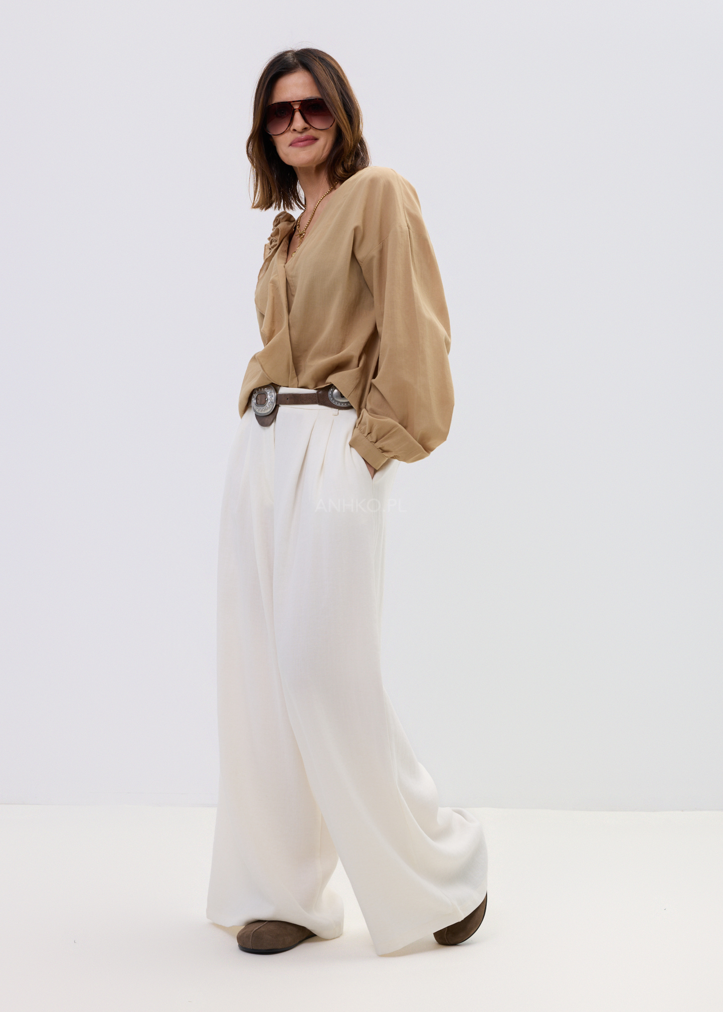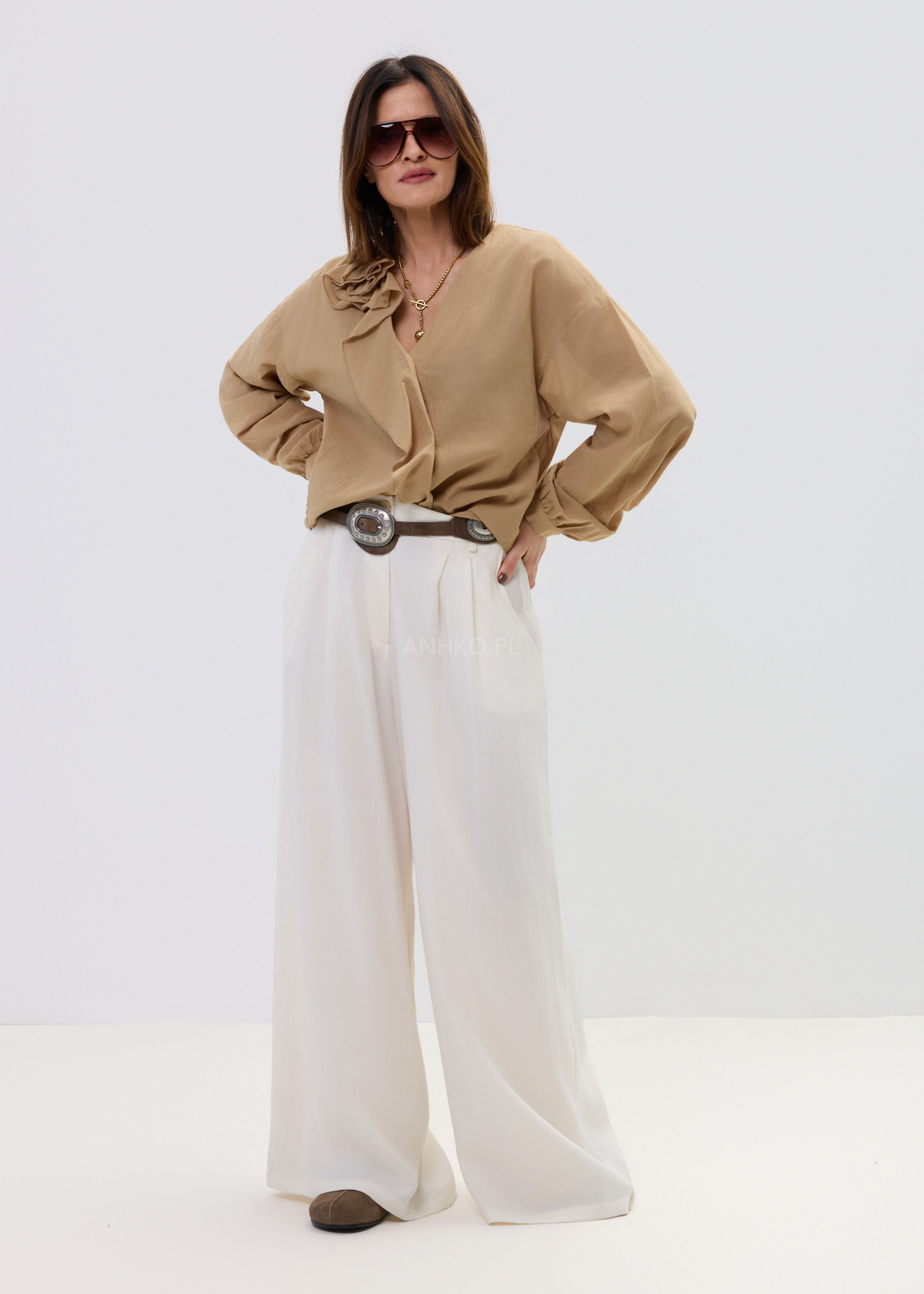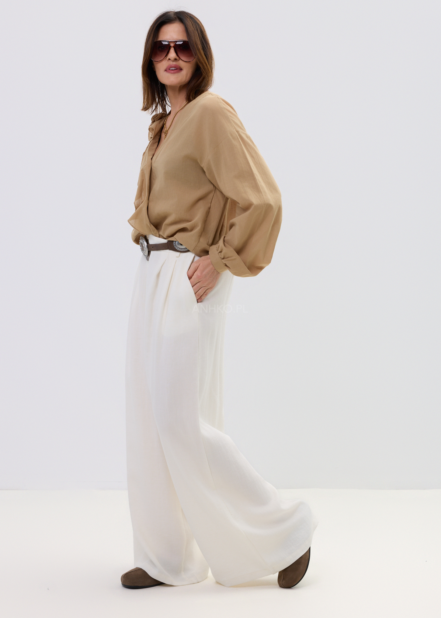 Spodnie z Dodatkiem Lnu Sofola Śmietankowe