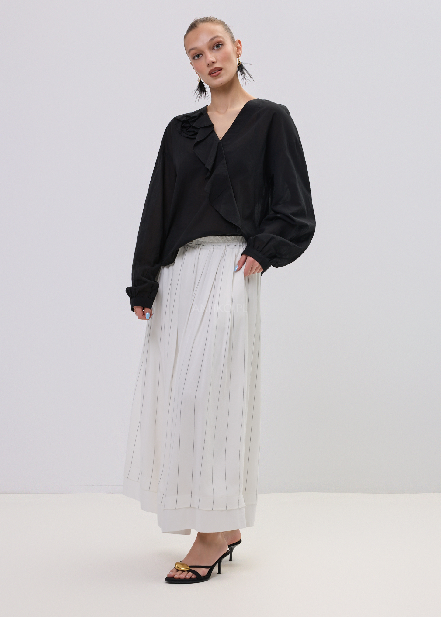 Spódnica Lume Stripe Biała - Lekka, swobodna i totalnie effortless. Spódnica w pionowe prążki z elastycznym pasem, która pięknie pracuje w ruchu i ogarnia każdą stylówkę – od basiców po bardziej dopracowane sety.