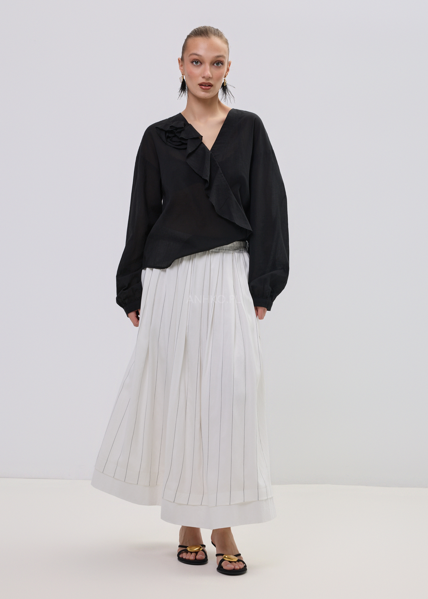 Spódnica z Dodatkiem Lnu Lume Stripe Biała