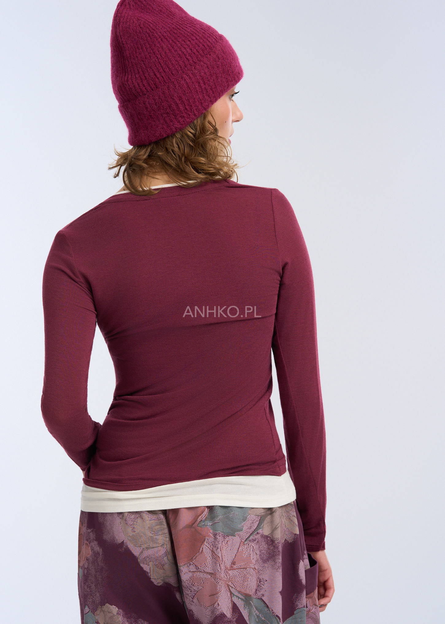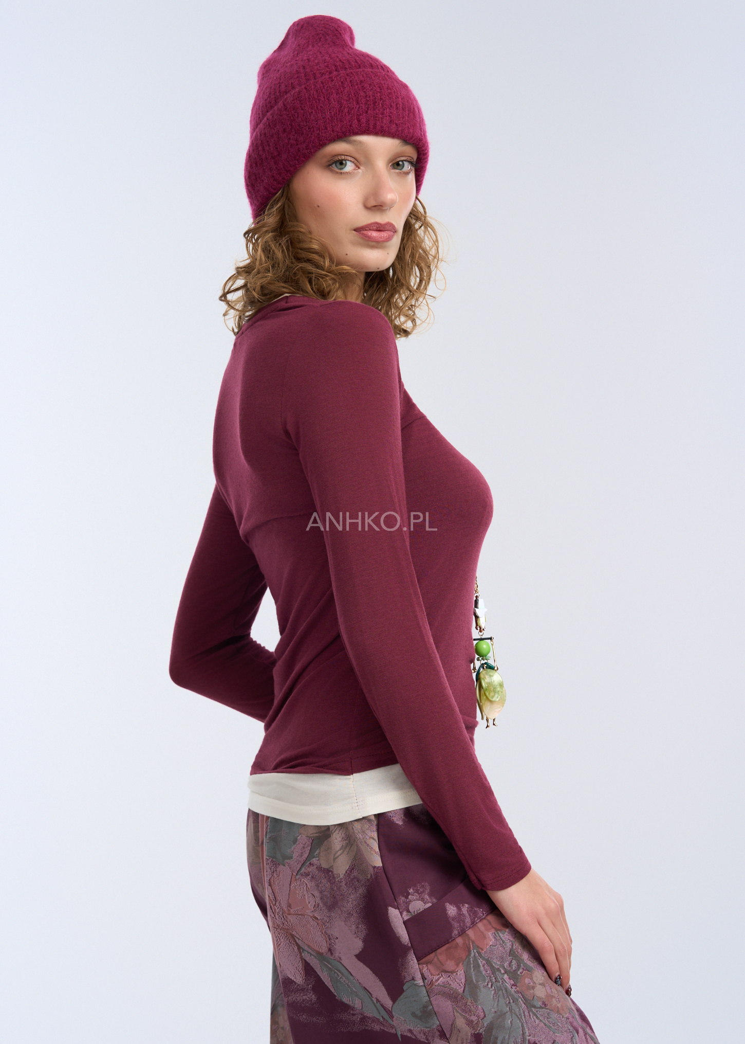 Ta wyjątkowa bluzka, łączy lekkość i subtelną elegancję. Cienki, półtransparentny materiał pięknie układa się na sylwetce, a kontrastowa, kremowa lamówka oraz podwójny dół dodają jej oryginalnego wykończenia. Dzięki zawartości kaszmiru bluzka jest niezwykle miękka i przyjemna dla skóry, a elastan zapewnia swobodę ruchów i idealne dopasowanie. Model nie posiada kieszeni ani podszewki, co sprawia, że jest lekki, przewiewny i idealny do codziennego noszenia. Sprawdzi się zarówno w stylizacjach casualowych z jeansami, jak i w eleganckich zestawach do pracy, czy na wieczorne wyjścia.