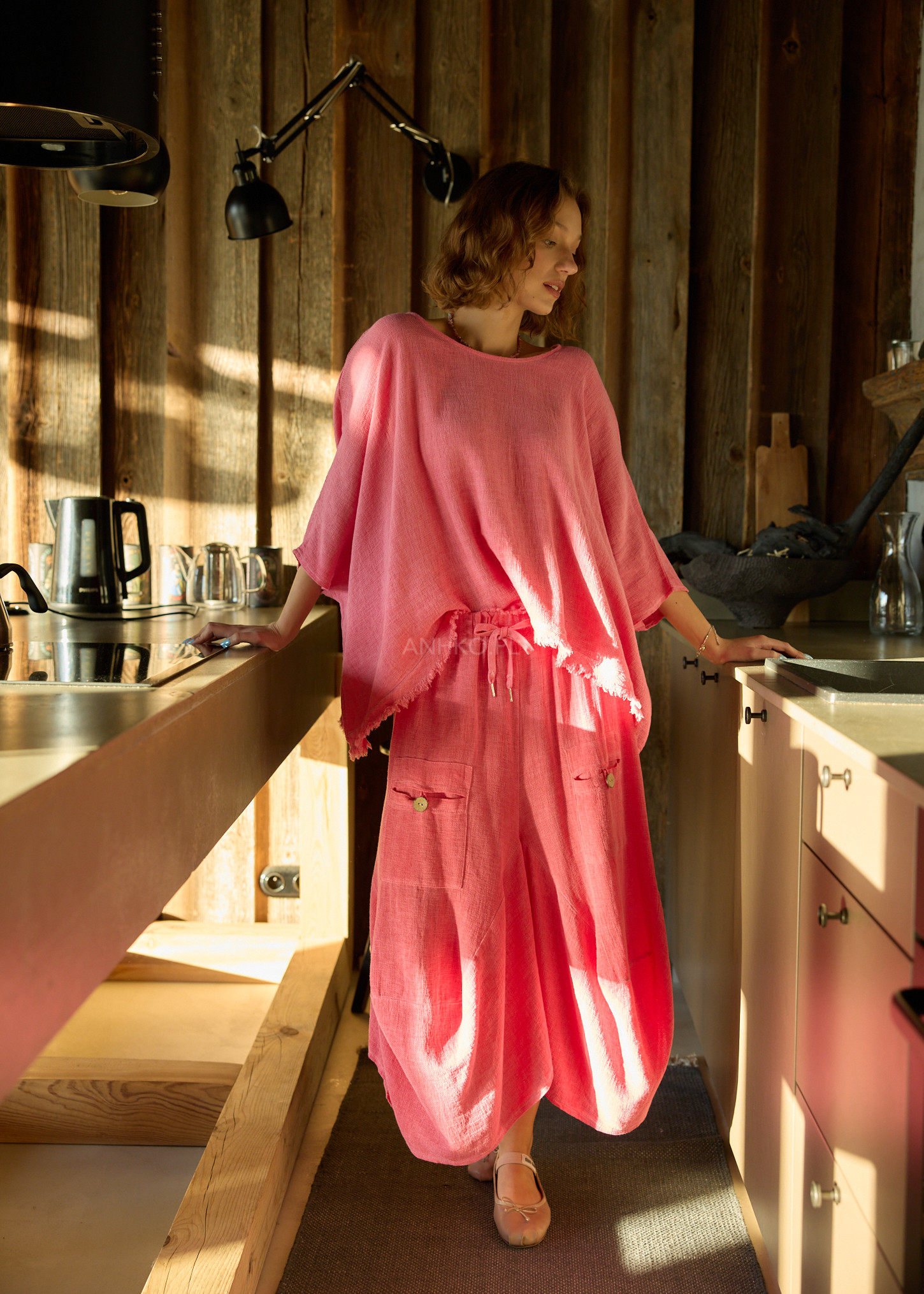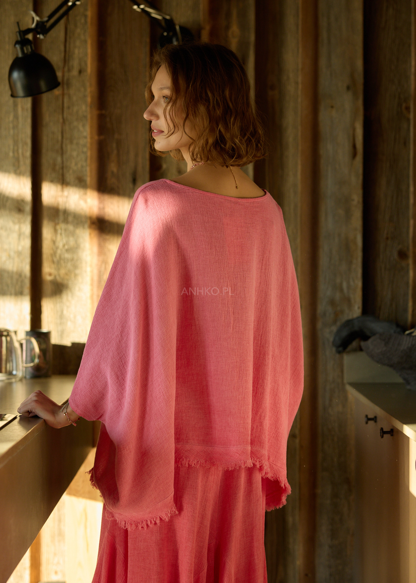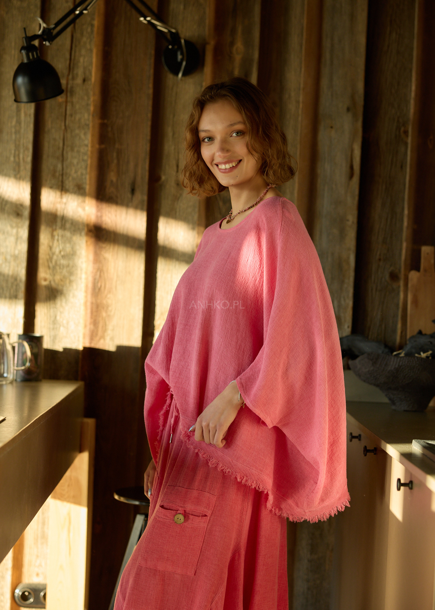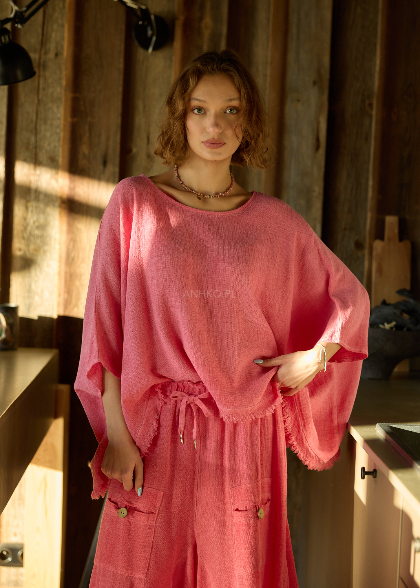 Bluzka z Dodatkiem Lnu Raw Edge Malinowa