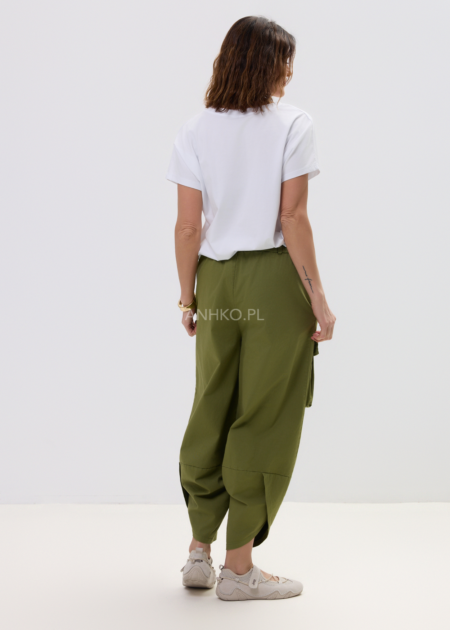 Spodnie Cargo Driftona Oliwkowe - Luźne spodnie cargo w modnym oliwkowym kolorze. Komfortowy krój, elastyczna guma w pasie i charakterystyczna kieszeń na nogawce nadają im miejskiego charakteru. Idealne do codziennych stylizacji – od sneakersów po cięższe buty.