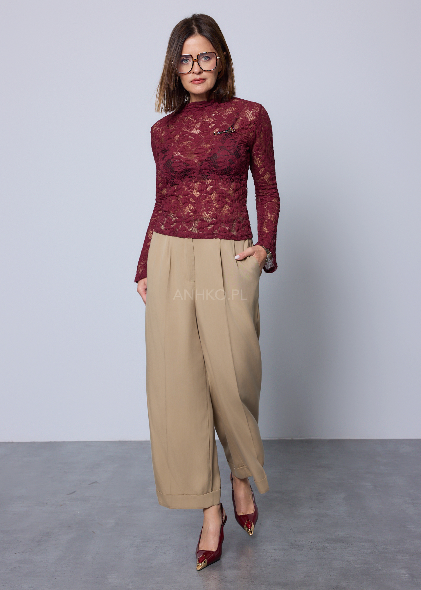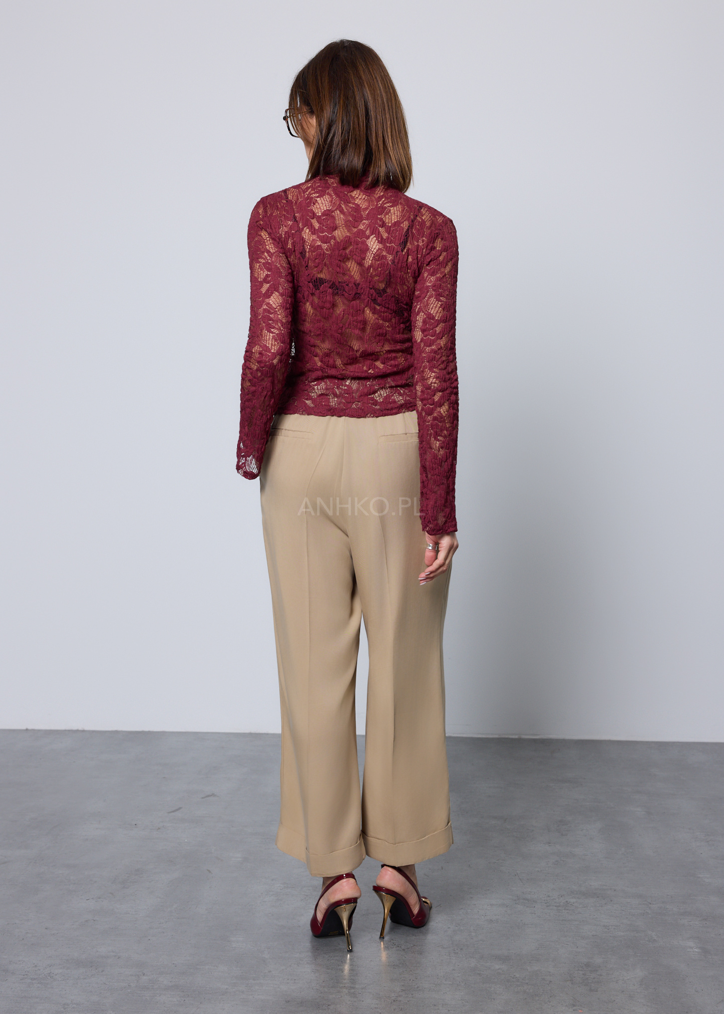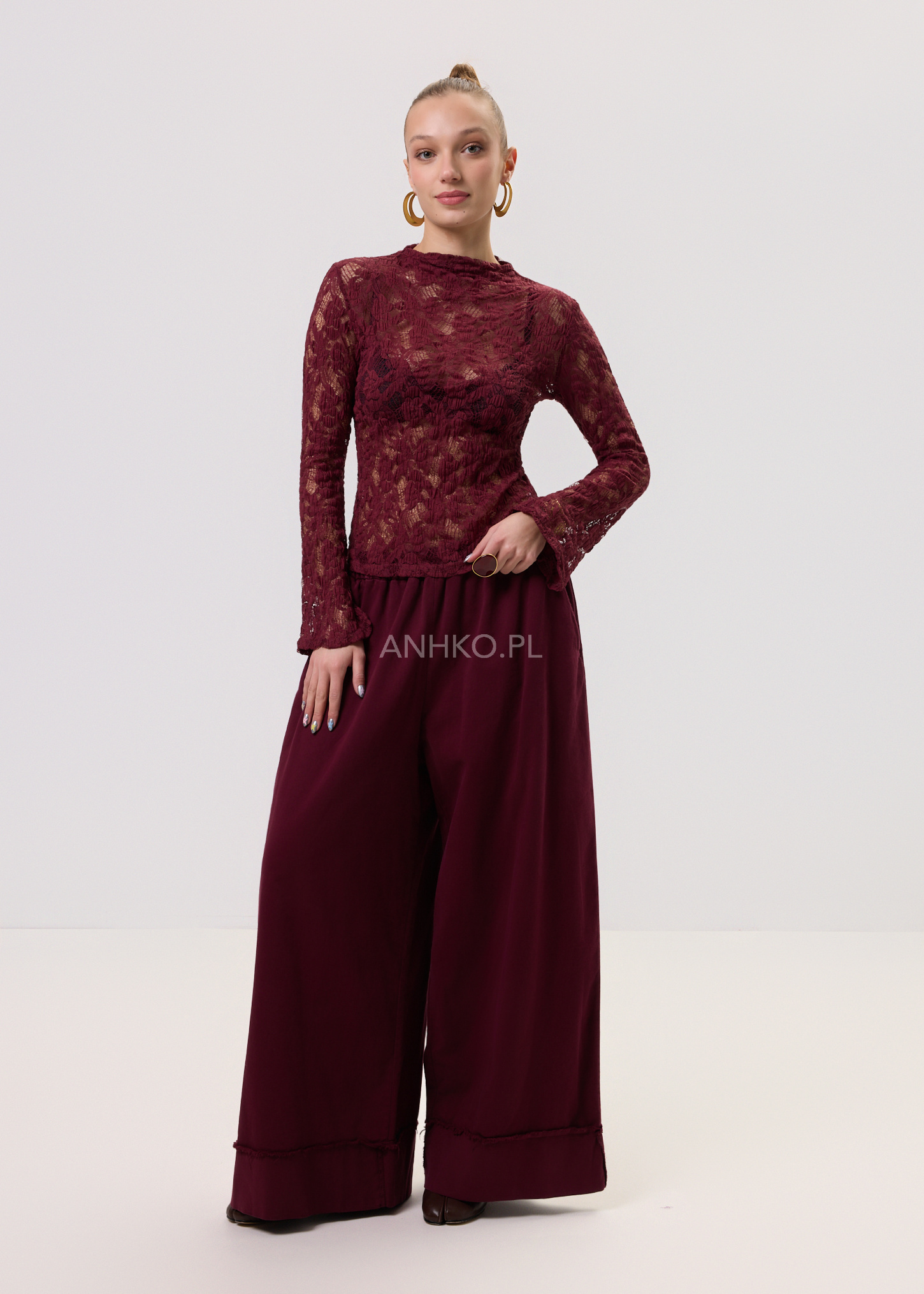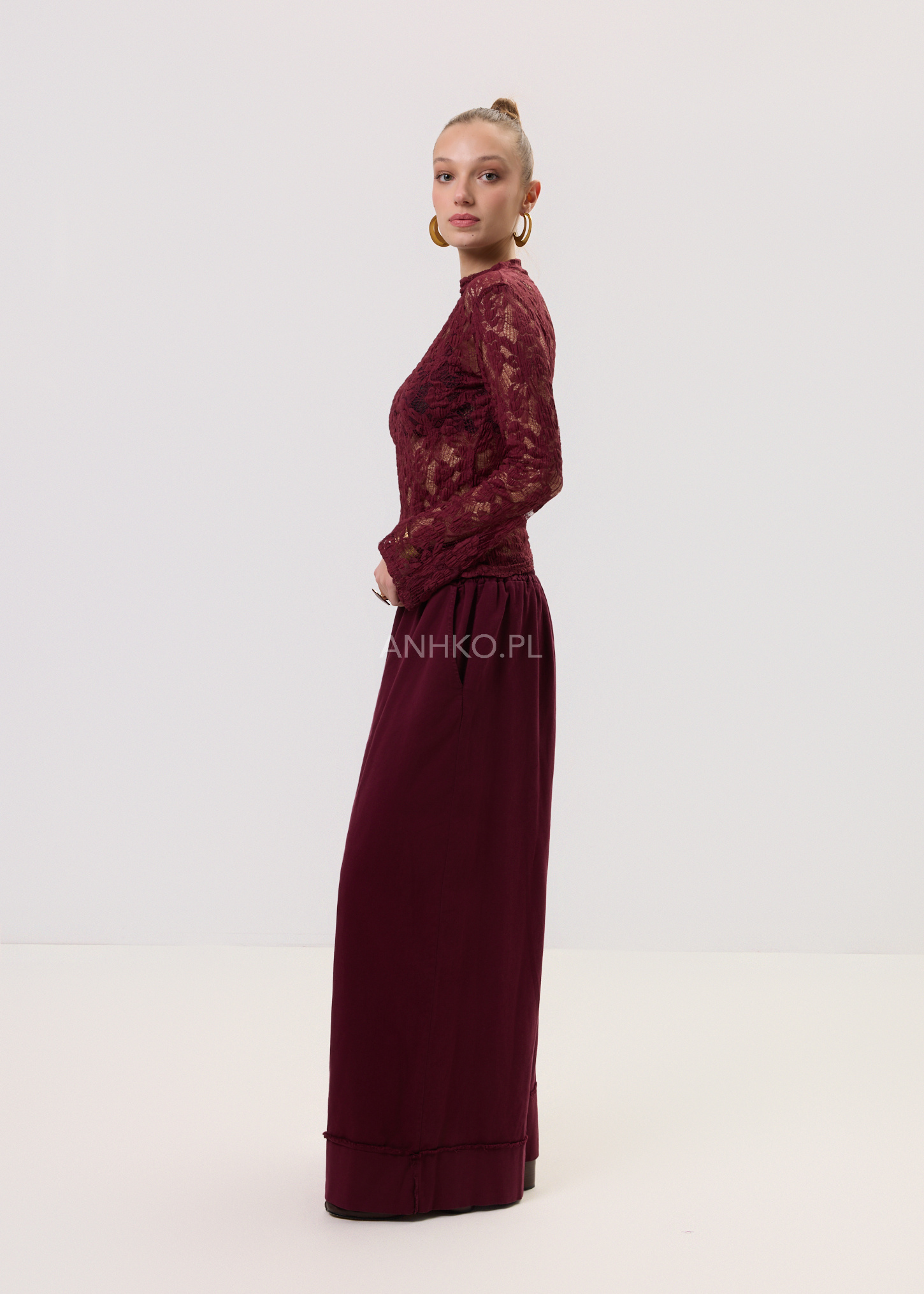 Spodnie Palaz Bordowe - Szerokie spodnie palazzo w kolorze bordowym z wysokim stanem i elastyczną talią. Maksymalna wygoda, miejski luz i minimalistyczny vibe – idealne na co dzień, do sneakersów, klapek lub marynarki.