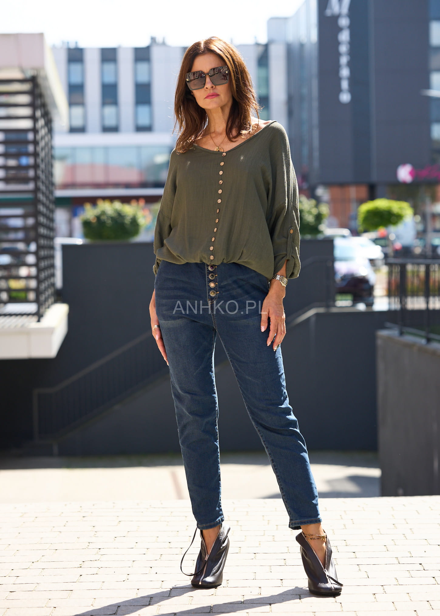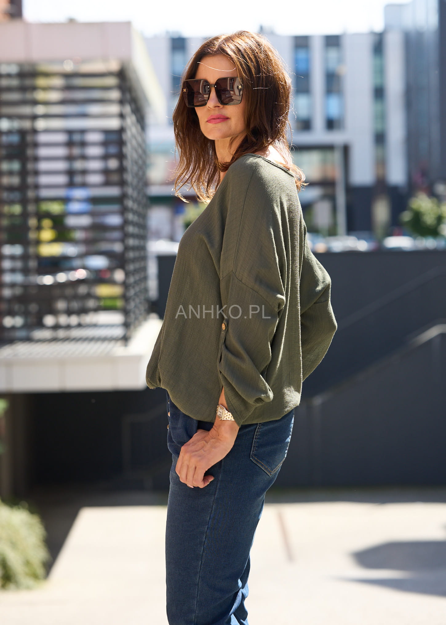 To doskonały wybór dla kobiet ceniących luz i subtelny styl. Wykonana w 100% z wiskozy, dzięki czemu jest lekka, miękka i oddychająca. Model ma szeroki dekolt typu łódka, luźne rękawy z możliwością podpięcia oraz ozdobny rząd drobnych guzików z tyłu, który dodaje uroku. Wiązanie na dole pozwala dostosować długość i fason do sylwetki. Ta bluzka idealnie komponuje się z jeansami, lnianymi spodniami, a także spódnicami – na co dzień, do pracy w stylu casual, na wakacje czy letnie wieczorne wyjścia. Prosta, ale z charakterem.