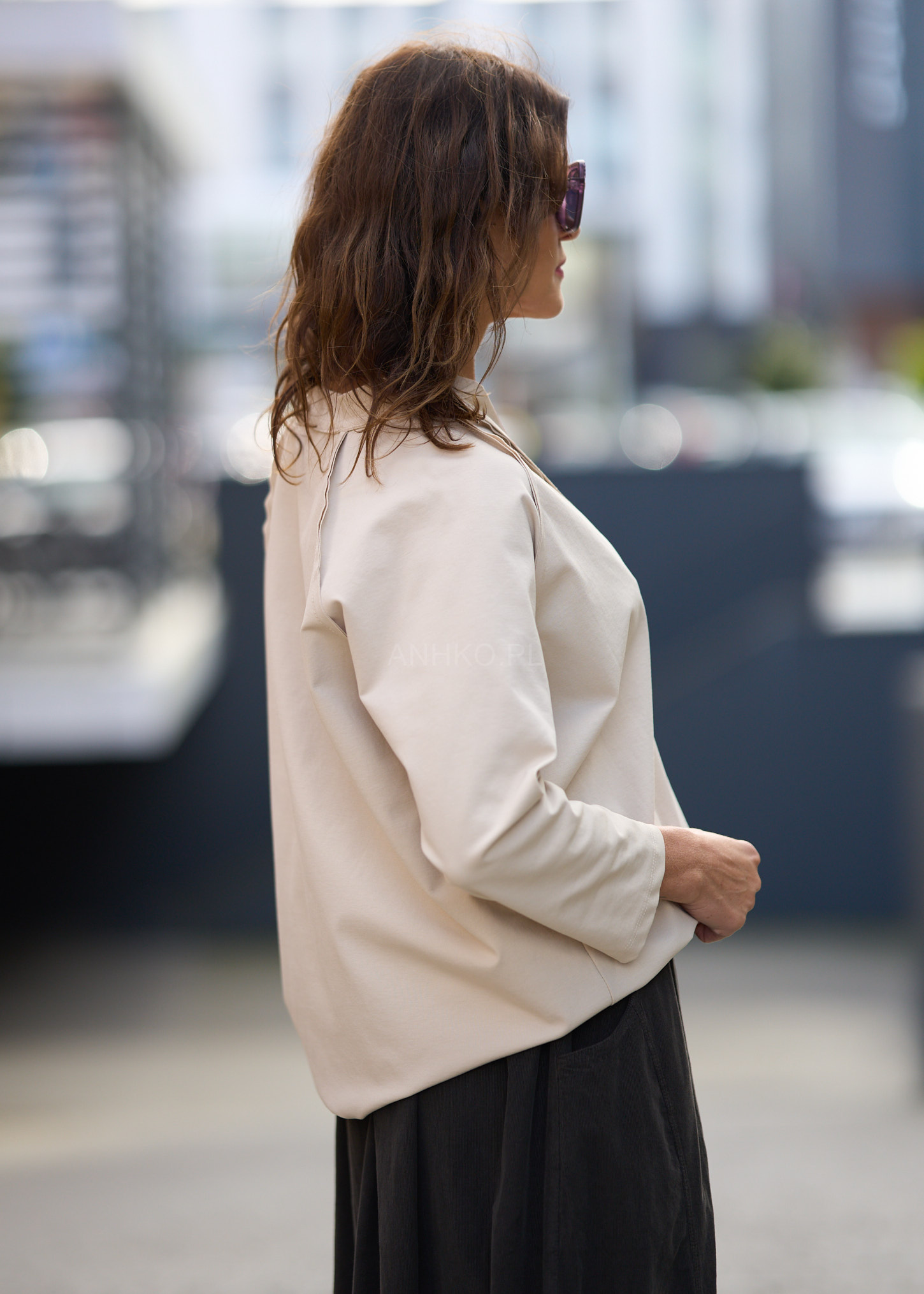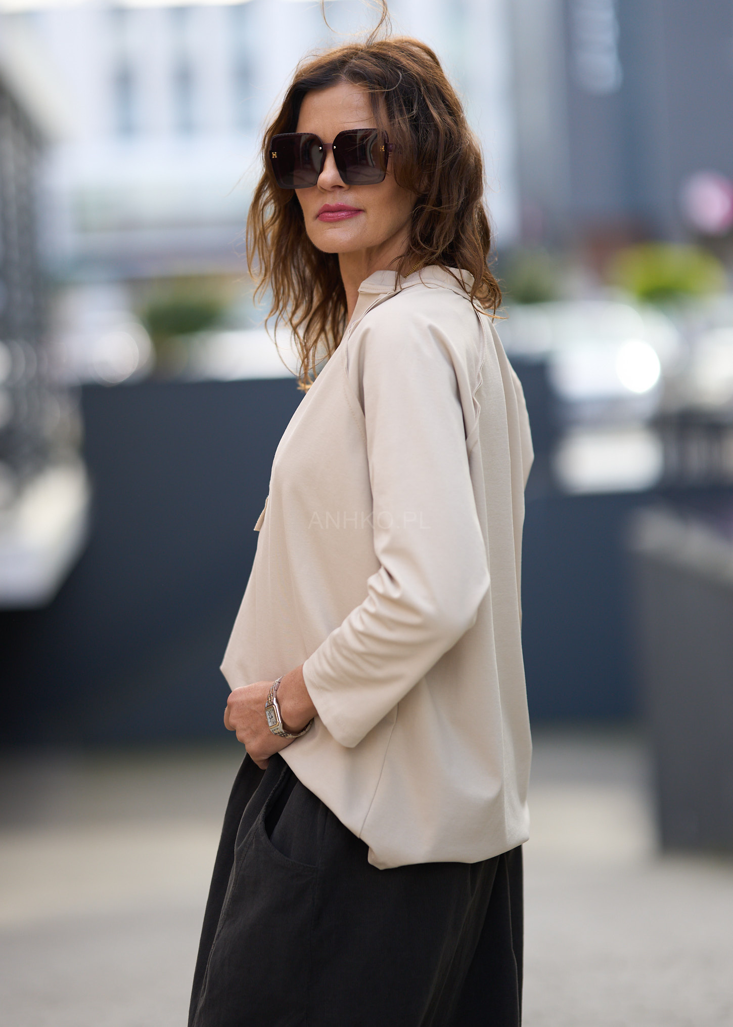 Ta wyjątkowa bluzka łączy w sobie swobodę i elegancję, oferując krój, który świetnie układa się na sylwetce. Dekolt V z listwą zapinaną na 3 guziki dodaje jej subtelnego, kobiecego charakteru. Model doskonale sprawdzi się w stylizacjach codziennych, do pracy oraz smart-casual — pasuje do szerokich spodni, klasycznych jeansów czy spódnic o różnych fasonach. Minimalistyczna, ponadczasowa i uniwersalna — stanie się Twoim niezawodnym elementem garderoby.
