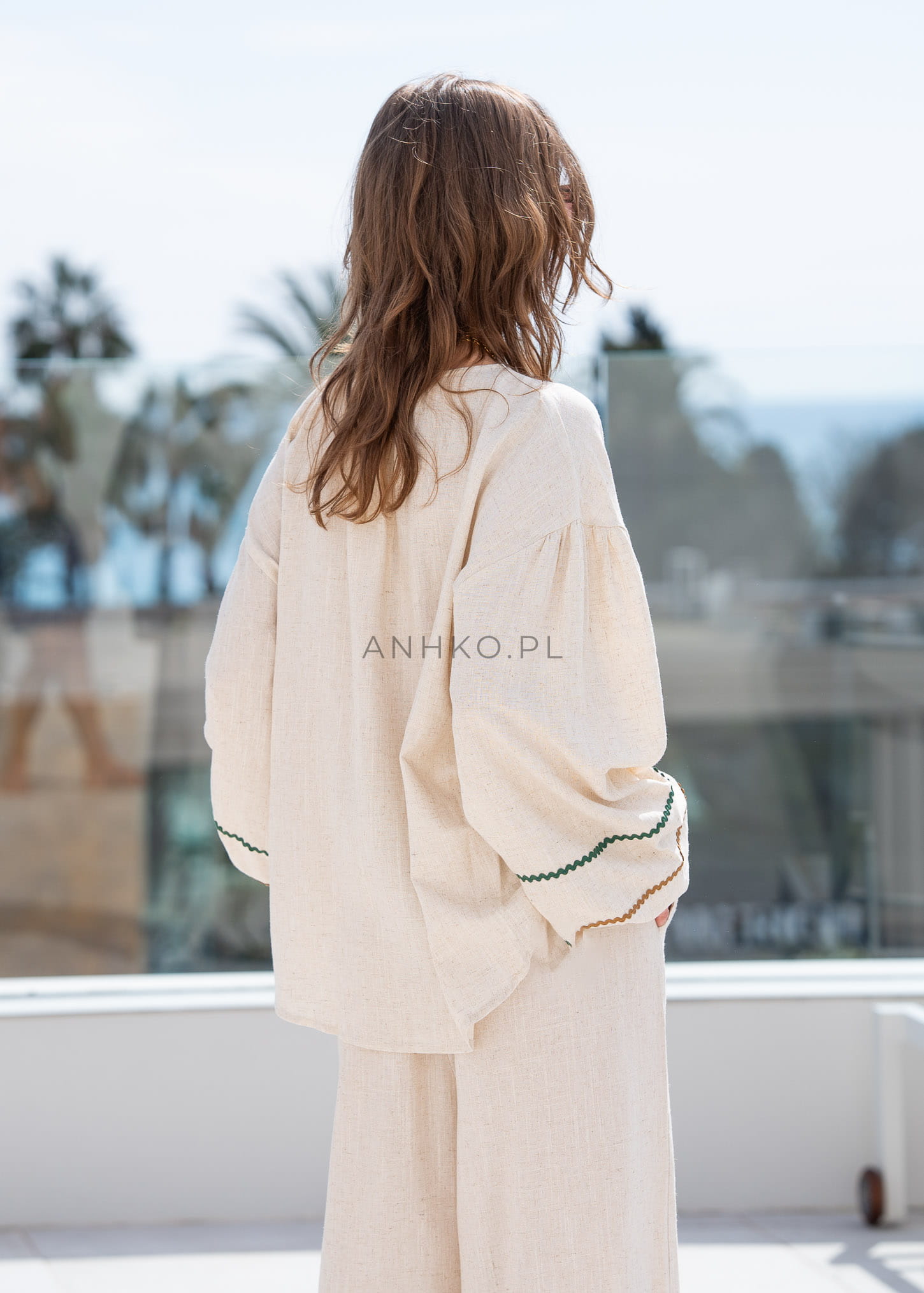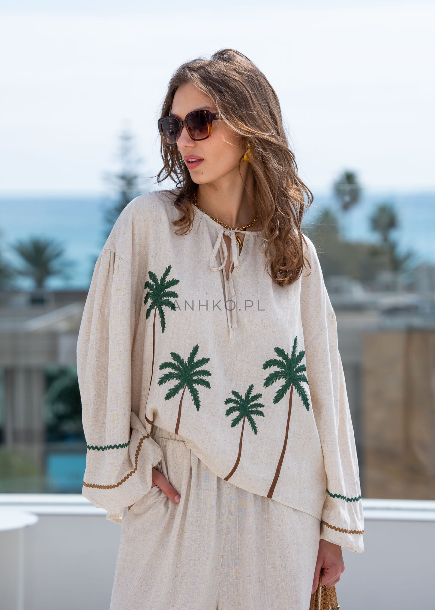 Bluzka z Dodatkiem Lnu Palmo Kremowa