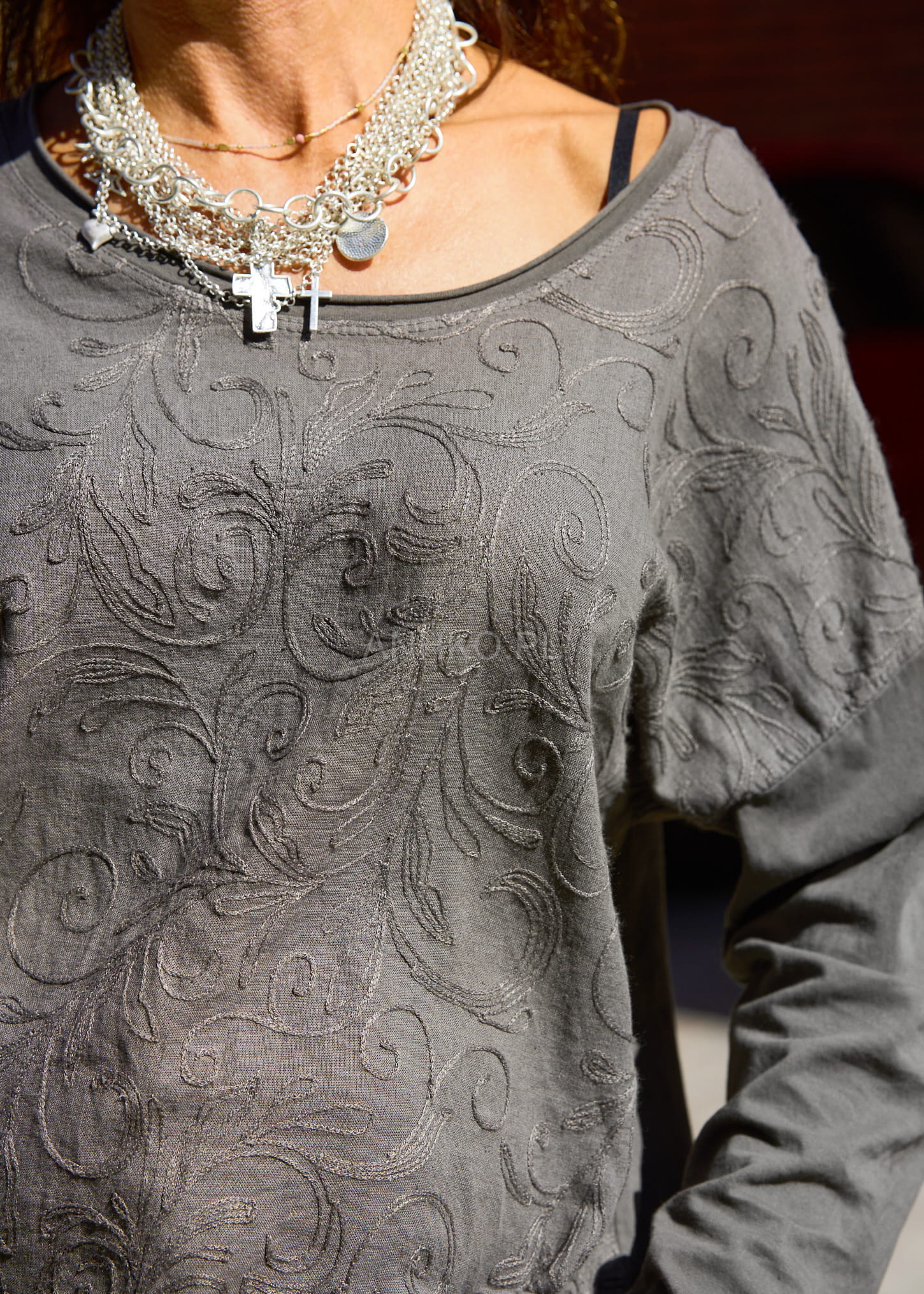 To wyjątkowa bluzka, która łączy wygodę z subtelną elegancją. Wykonana z mieszanki bawełny, lnu i wiskozy, zapewnia komfort noszenia, przewiewność i delikatność dla skóry. Przód ozdobiony jest misternym haftem o florystycznym wzorze, który dodaje klasycznego charakteru. Tunika świetnie sprawdzi się do pracy, na spacer, zakupy czy luźne spotkania – można ją zestawić z jeansami, spodniami lnianymi lub spódnicą midi. Dzięki prostemu krojowi i długim rękawom jest również idealna na chłodniejsze dni.