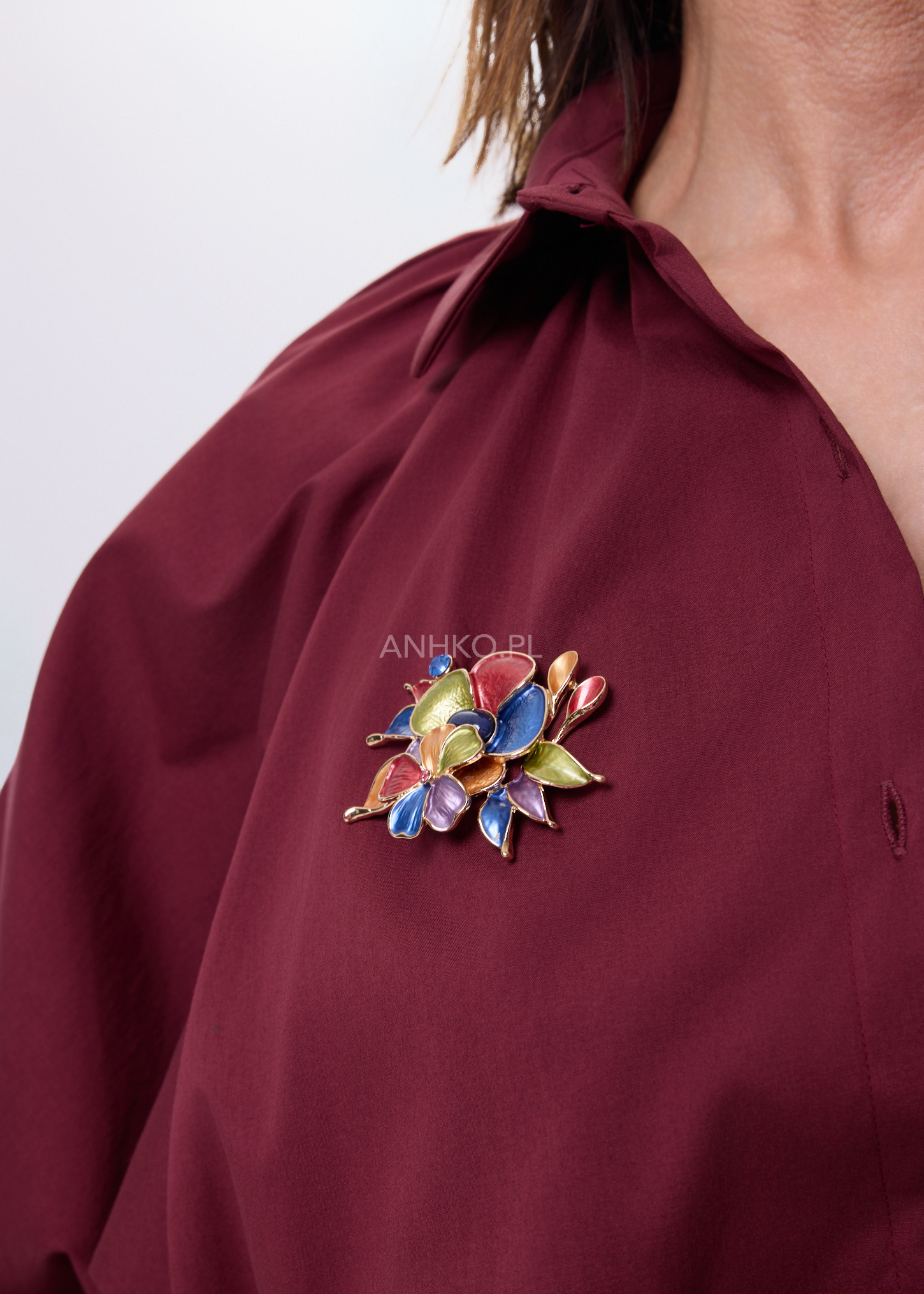 Koszula Noira Calm Bordowa - Lekka bluzka o swobodnym kroju z efektownymi rękawami i elastycznym dołem. Zapewnia komfort noszenia i subtelną formę, która sprawdzi się zarówno w stylizacjach codziennych, jak i bardziej eleganckich.