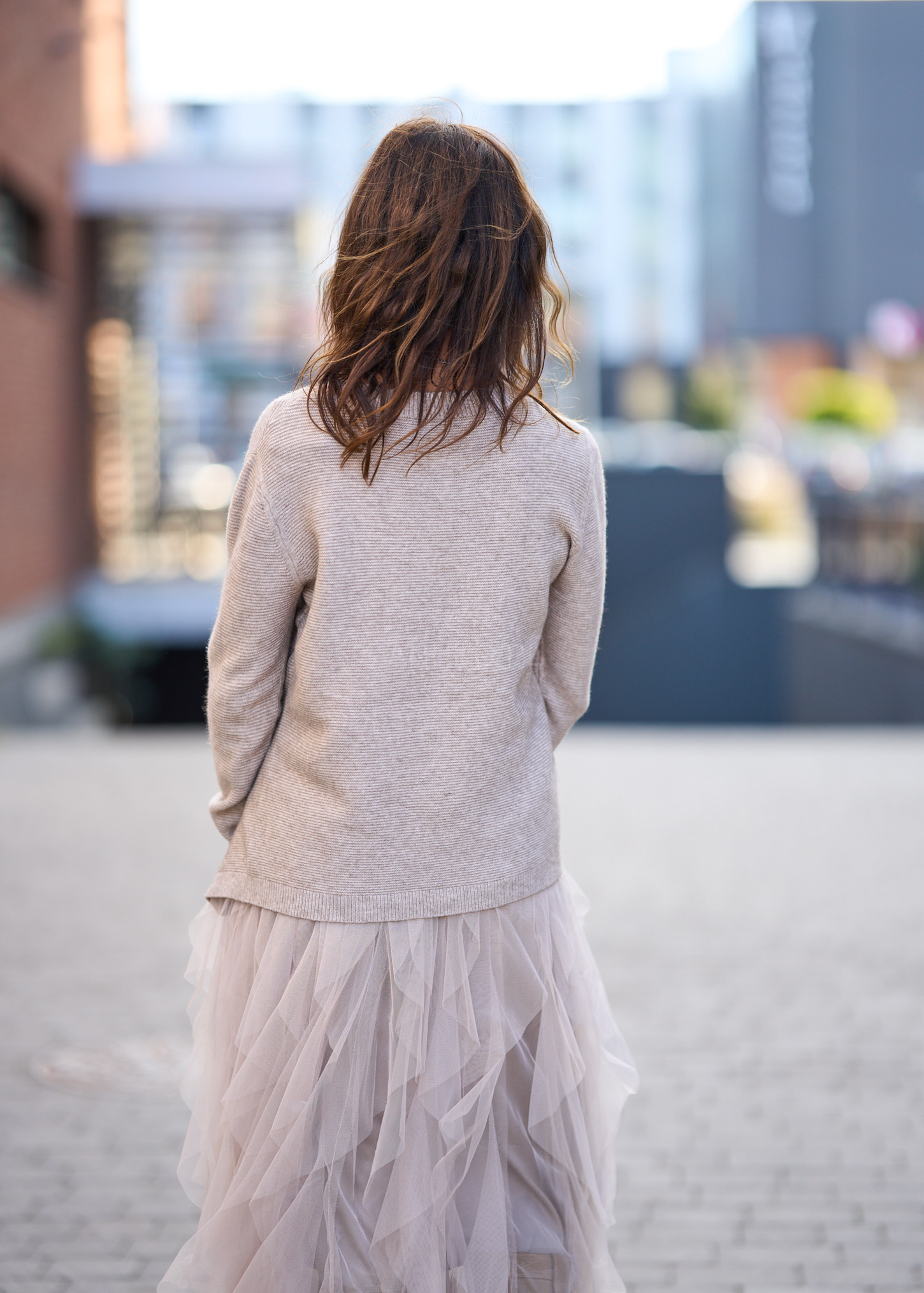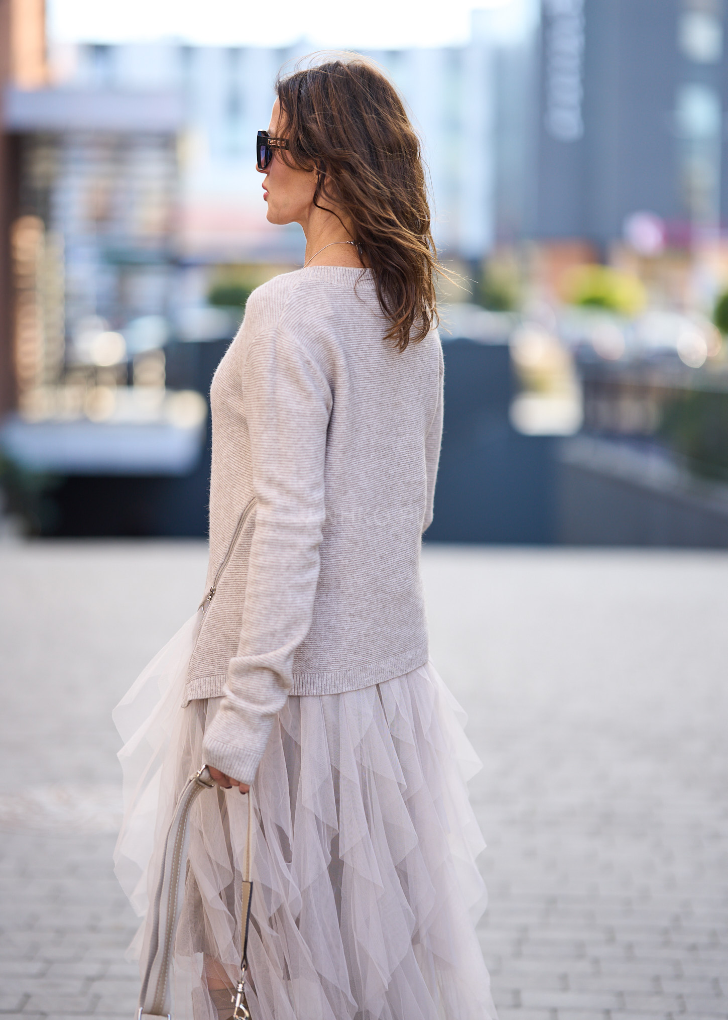 - Modny, warstwowy zestaw: sweter + tiulowa sukienka